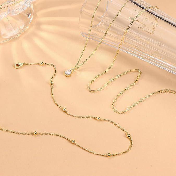 Collar de Cadena para Clavícula Popular Europeo y Americano de Estilo Simple Transfronterizo de Tres Capas con Colgante de Cristal en Forma de Gota de Perla de Imitación Apilado Venta al Mayoreo