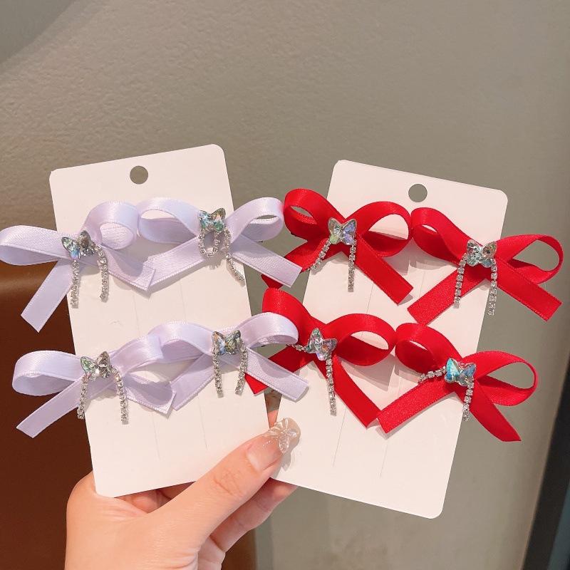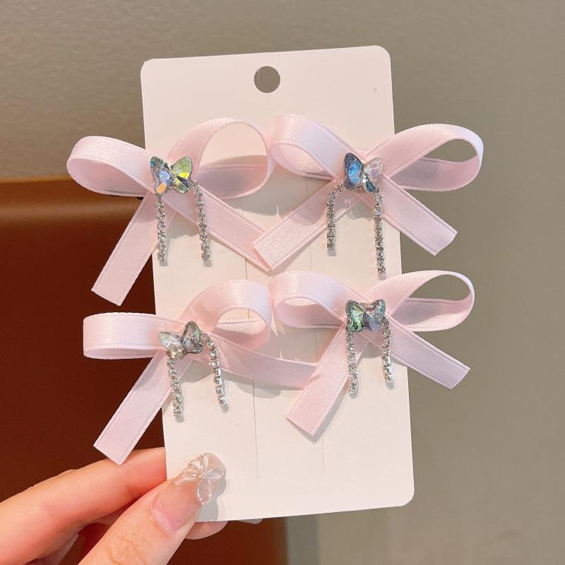 Pinza para el cabello de lazo dulce con pedrería para niños, diseño para niña, clip para flequillo, accesorios para el cabello de alto valor para bebé, clip para niña