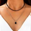 Joyería Transfronteriza Europea y Americana, Collar de Moda con Colgante de Cruz, Versátil Cadena para Clavícula con Cuentas de Piedras Preciosas Incrustadas