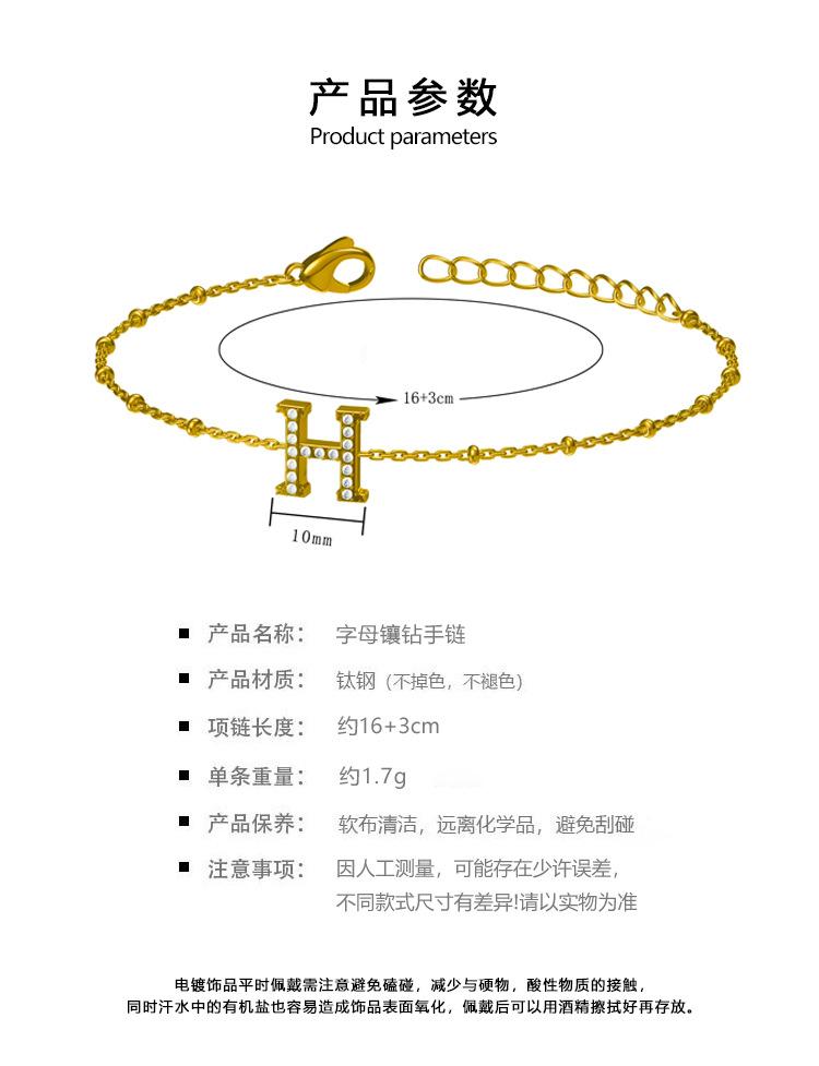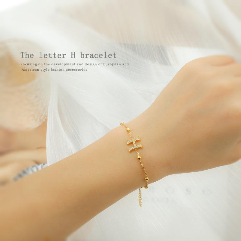 Venta Caliente Pulsera de Letras de Diamantes de Lujo Ligero para Mujer Acero de Titanio Zircón Moda Simple Elegante Pulsera Nicho Joyería al Por Mayor