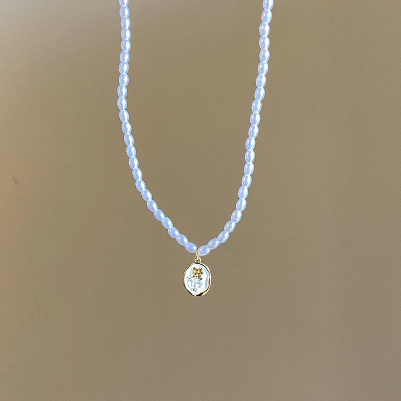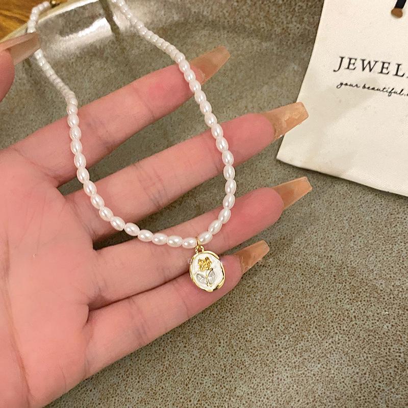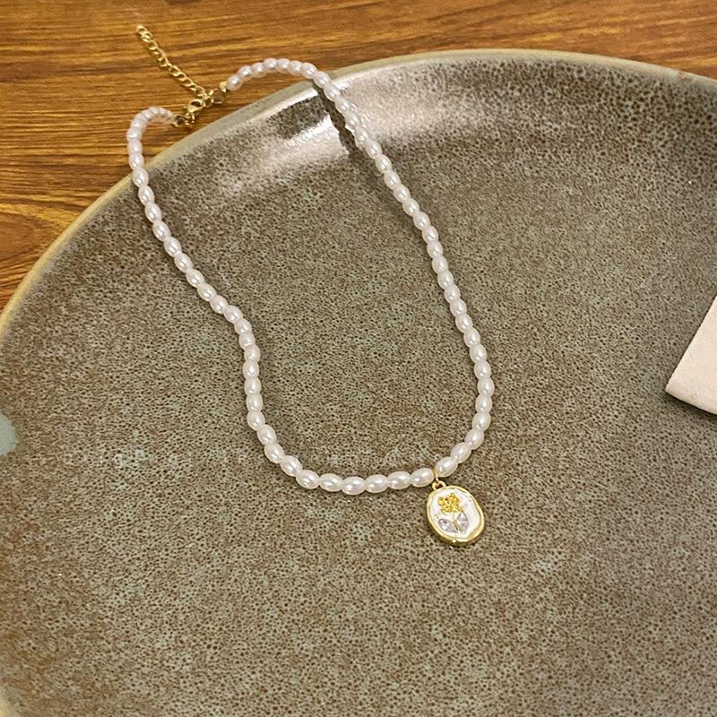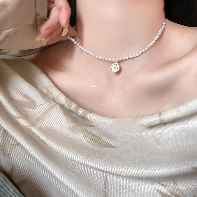 Collar de perlas y rosas, estilo francés vintage, ligero, de lujo, elegante, con cadena de clavícula, exquisitos accesorios de alta gama para mujer.