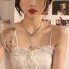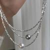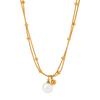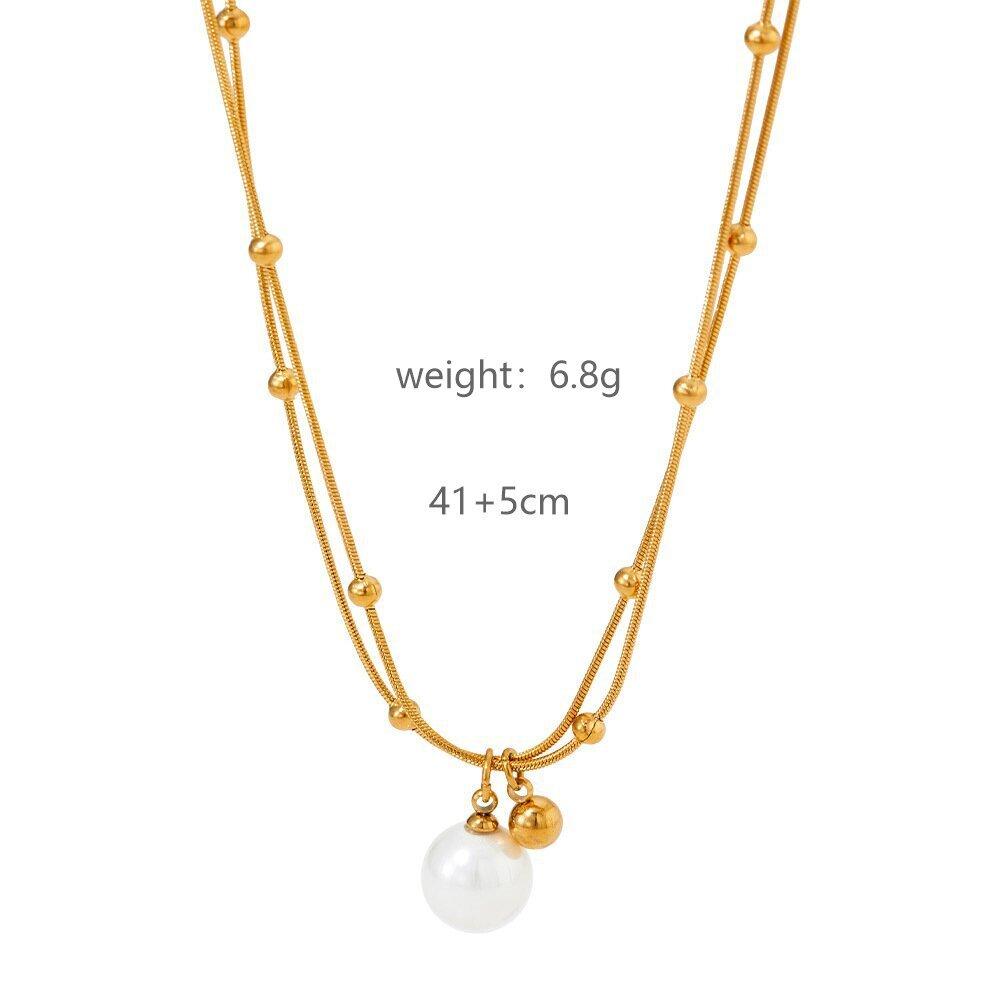 Set de Collar de Acero de Titanio Doble Capa Completo Perla Nicho Lujo Ligero Cadena Clavícula