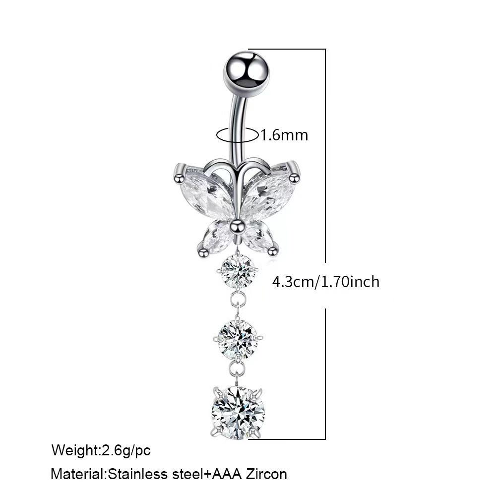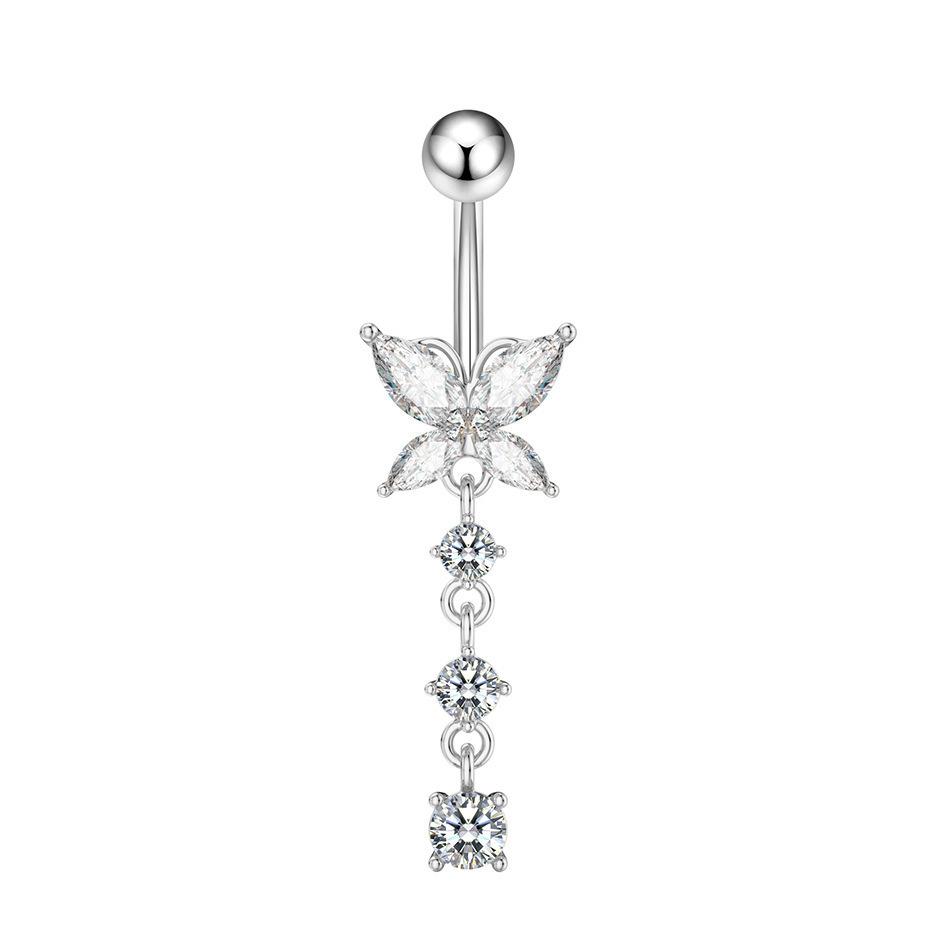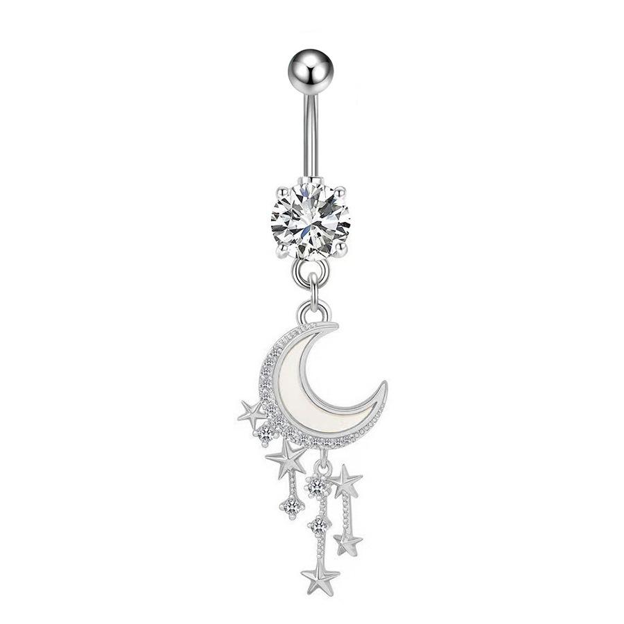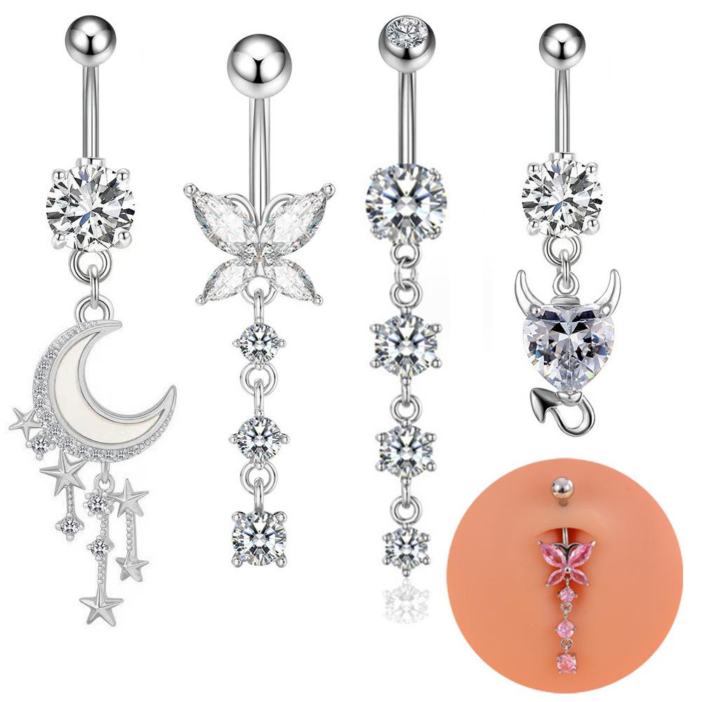 Anillo de ombligo con circonita en forma de corazón, diseño transfronterizo de Europa y Estados Unidos, adornos para el ombligo con forma de luna y diablo, joyería perforada al por mayor