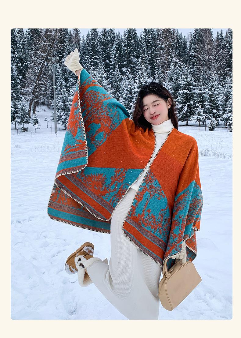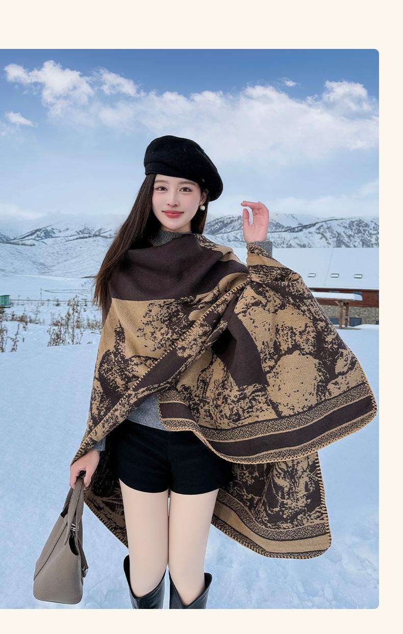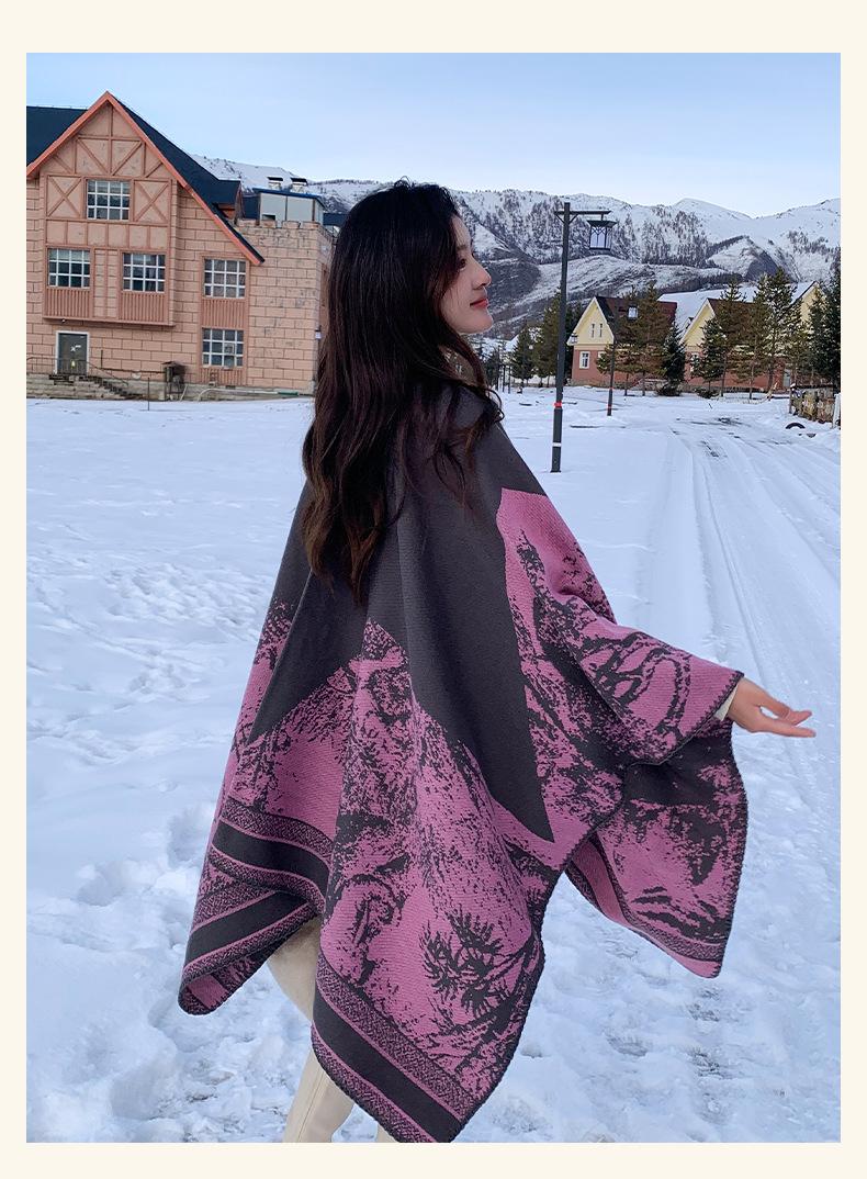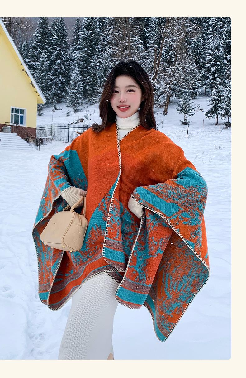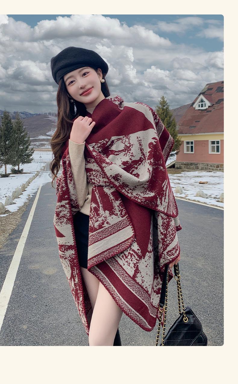 Chal Étnico Otoño e Invierno Viaje Cálido Xinjiang Tíbet Yunnan Capa Grande Capa de Alta Gama Bufanda Gruesa para Mujer