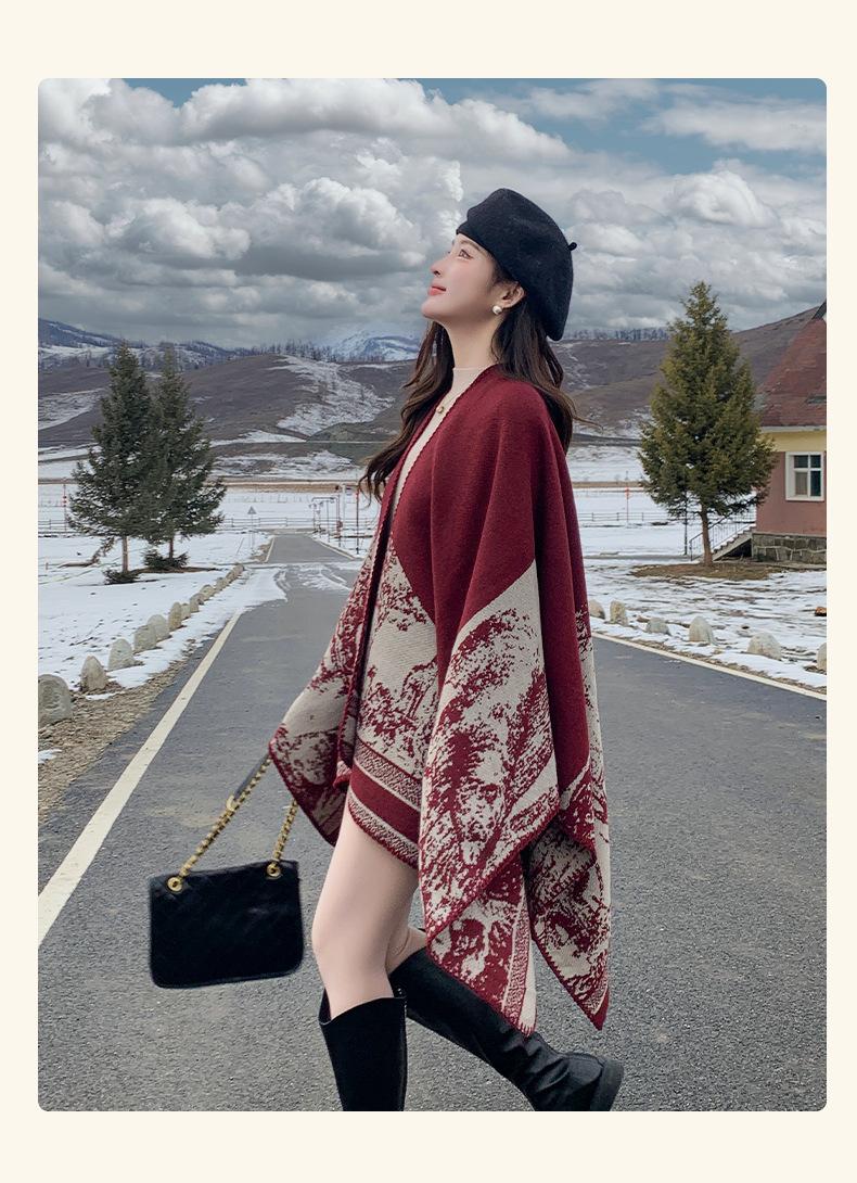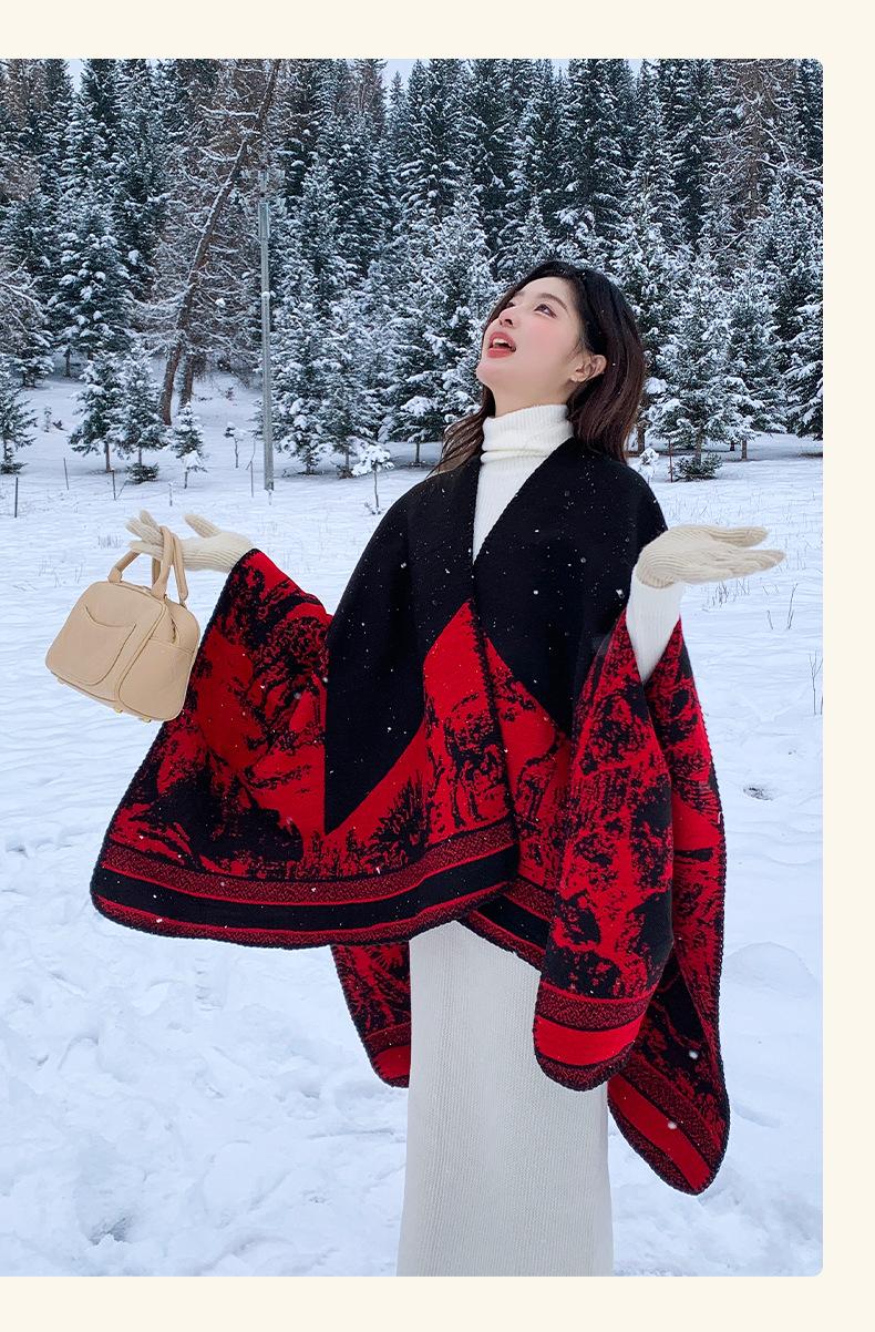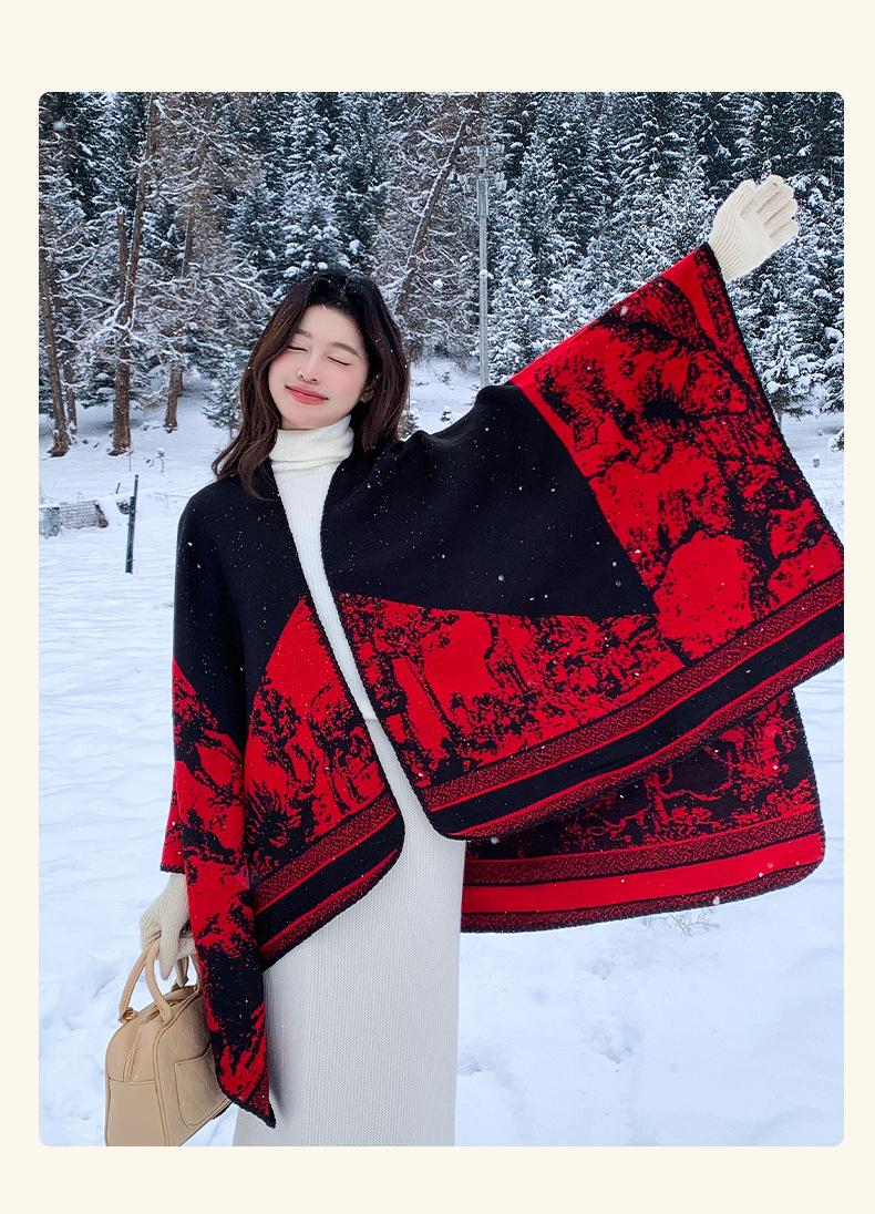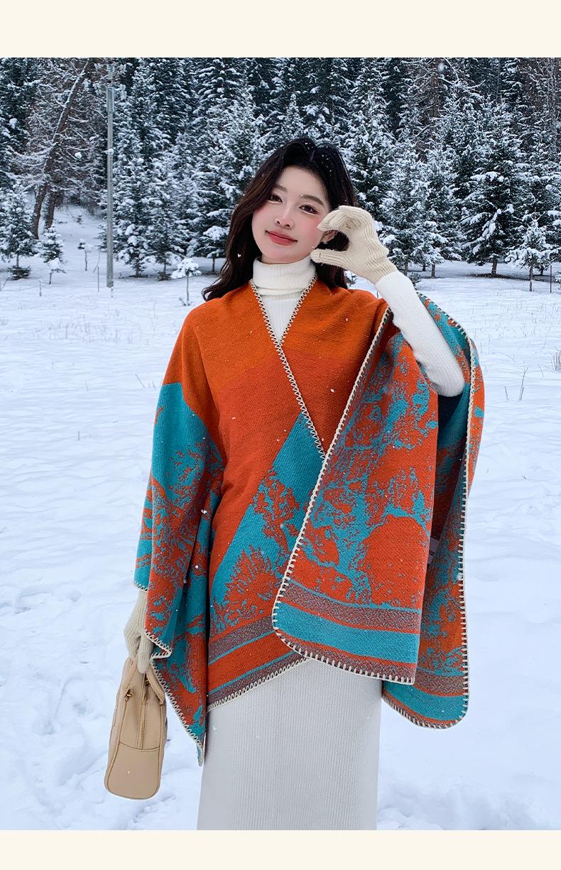 Chal Étnico Otoño e Invierno Viaje Cálido Xinjiang Tíbet Yunnan Capa Grande Capa de Alta Gama Bufanda Gruesa para Mujer