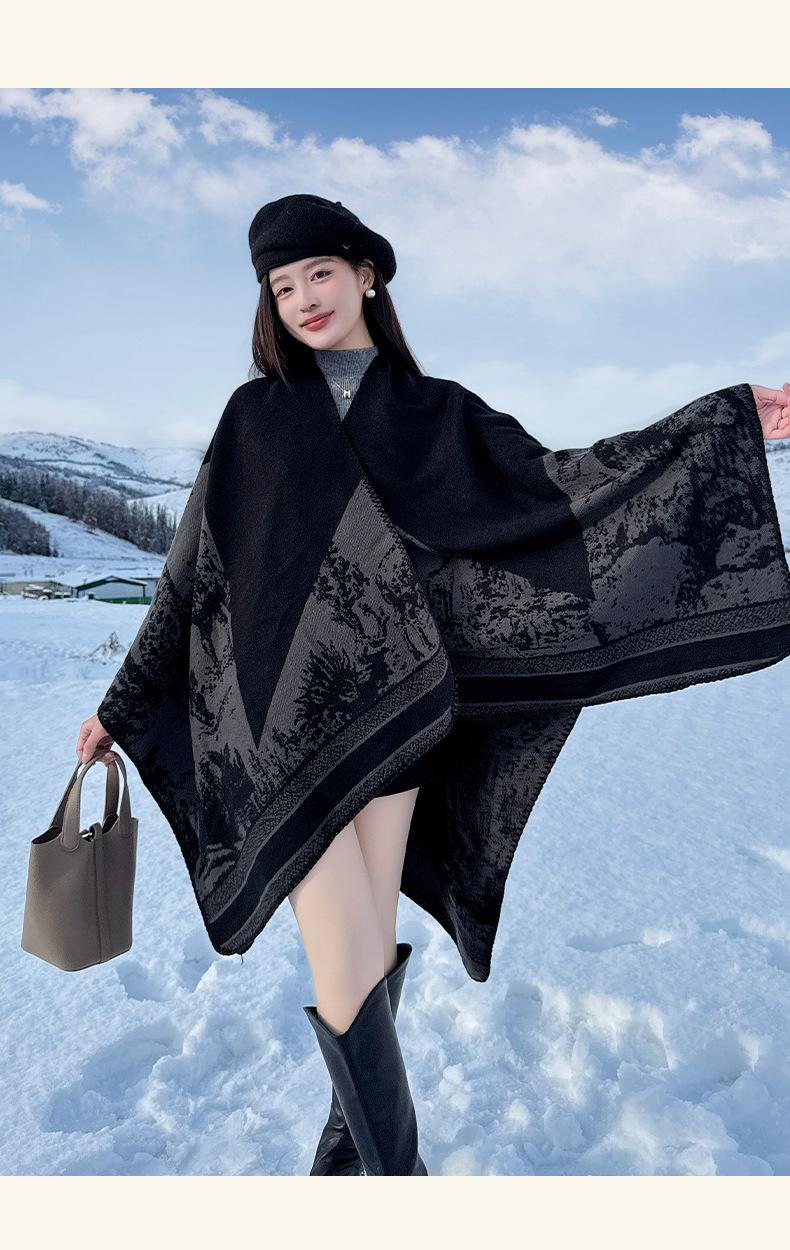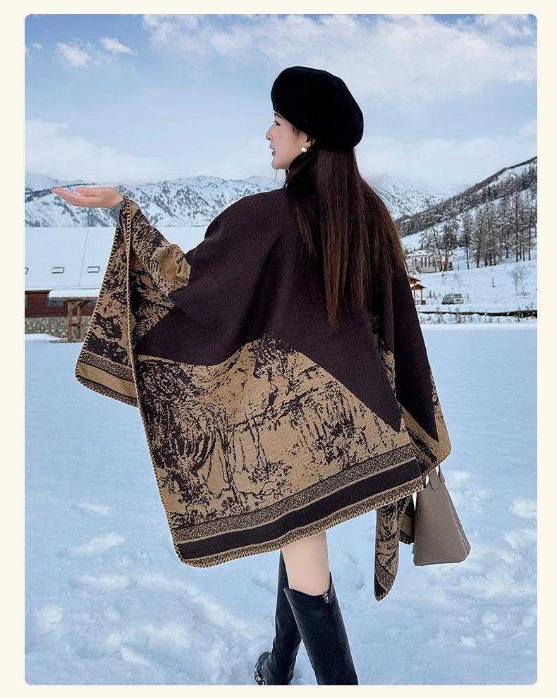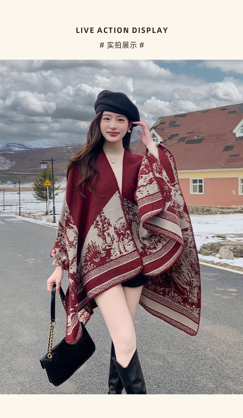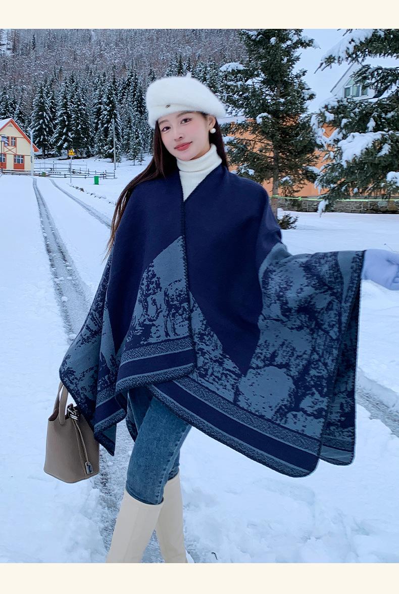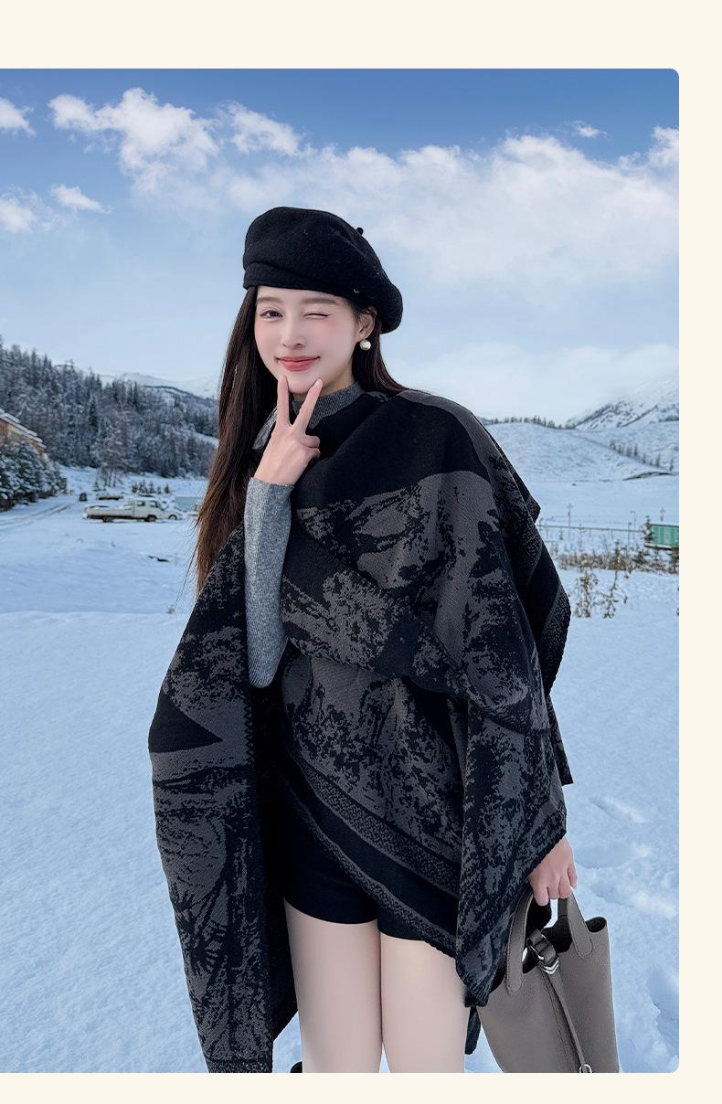 Chal Étnico Otoño e Invierno Viaje Cálido Xinjiang Tíbet Yunnan Capa Grande Capa de Alta Gama Bufanda Gruesa para Mujer