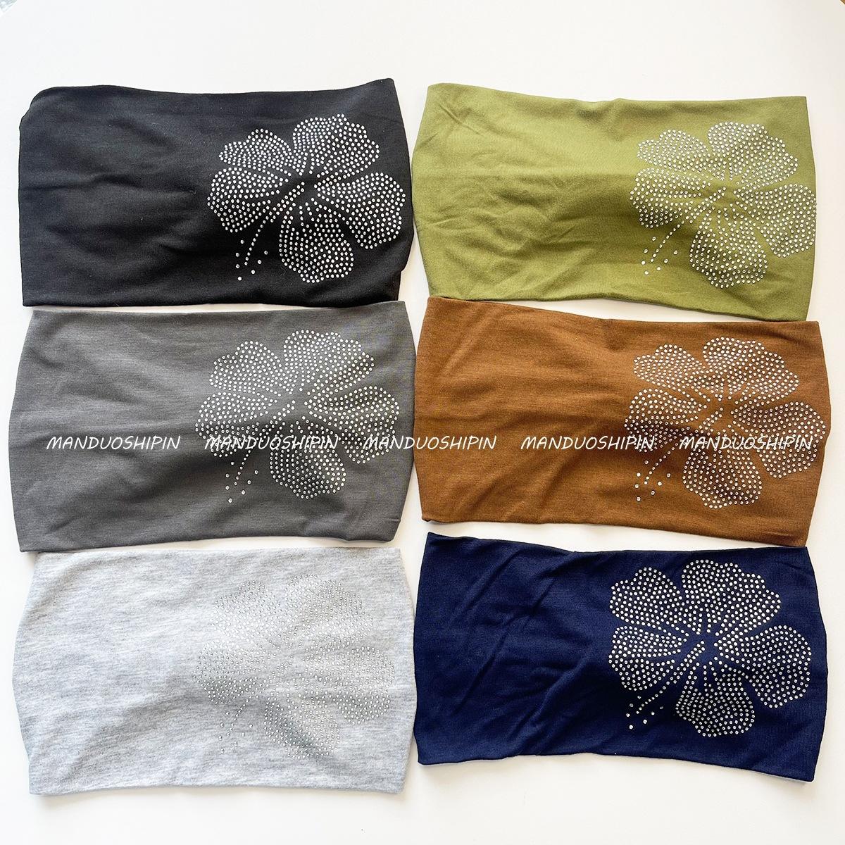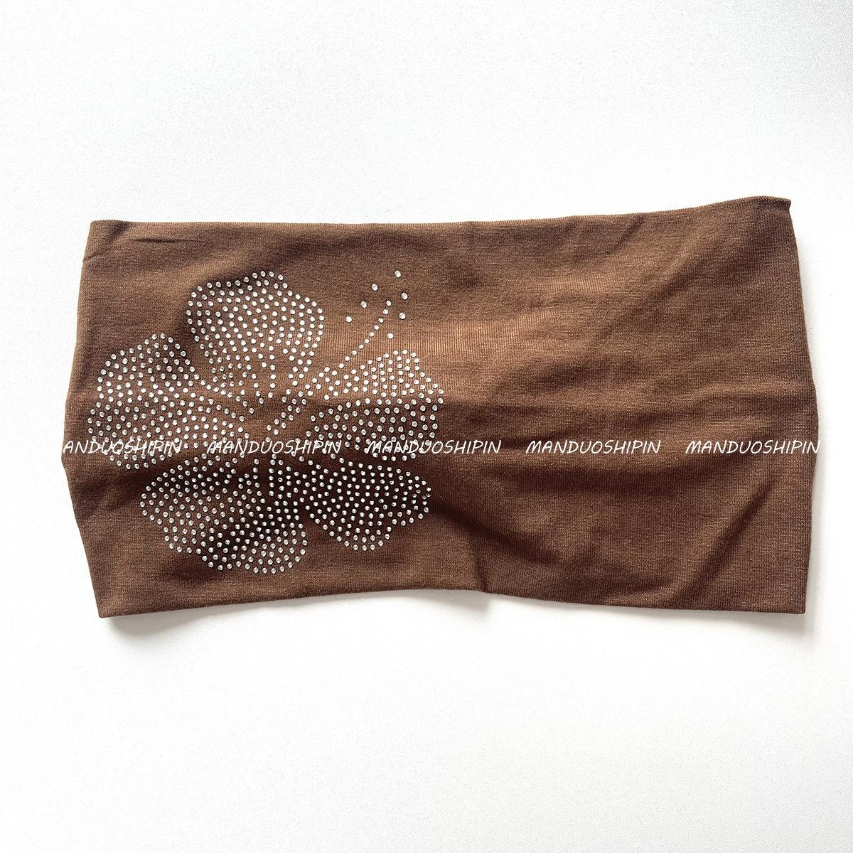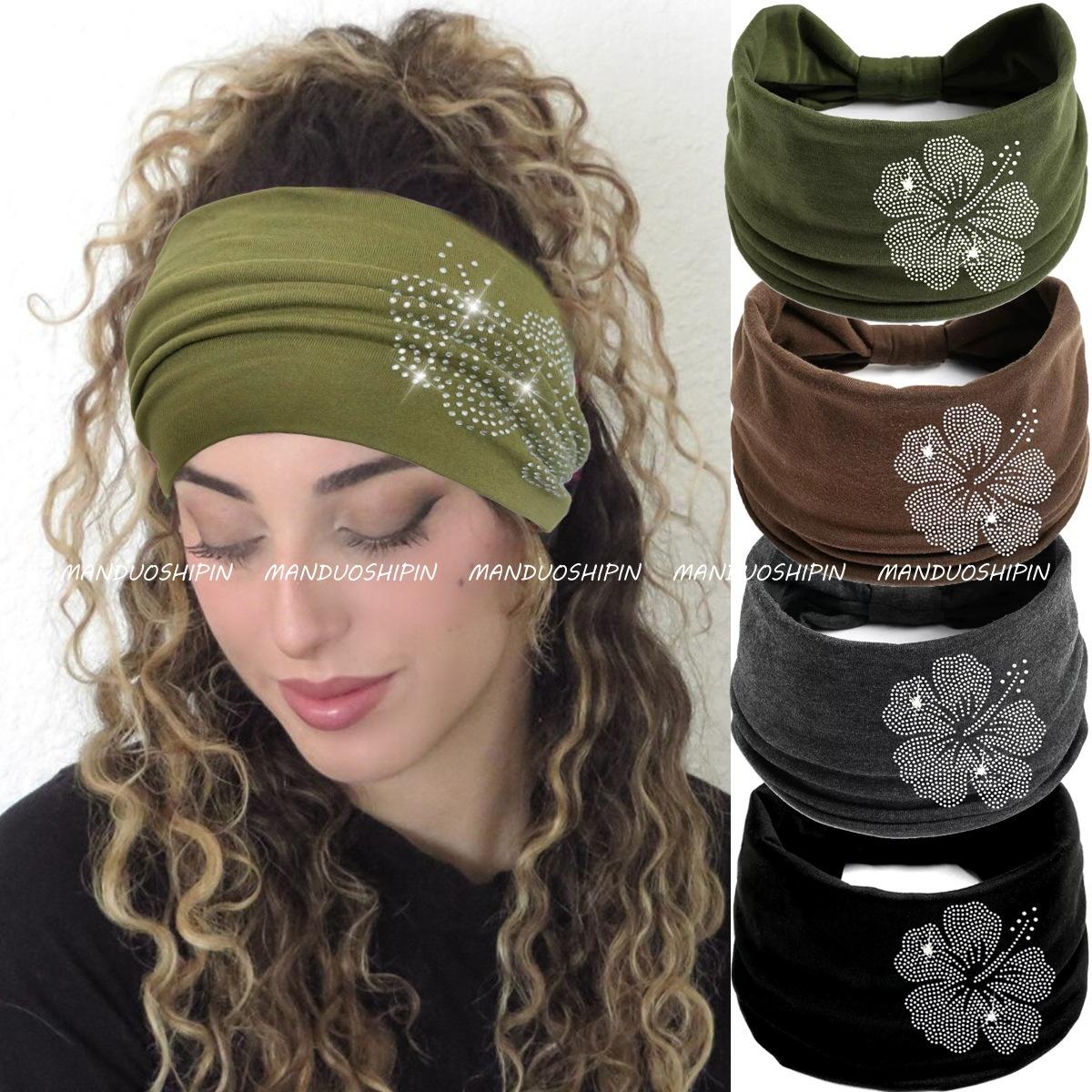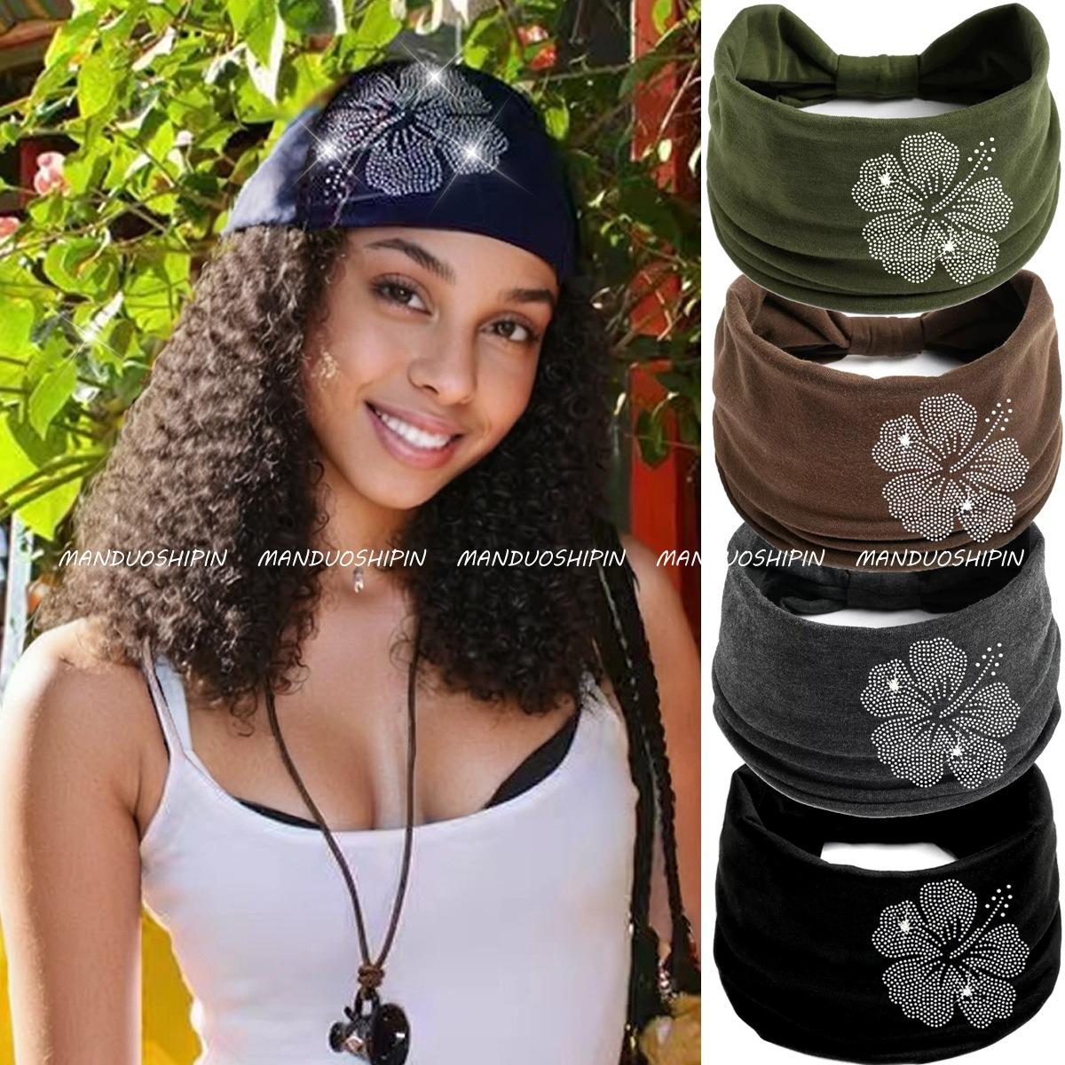 Diadema Deportiva Elástica Anudada de Color Sólido con Flor de Hibisco de Diamantes Calientes de Amazon Transfronteriza, Accesorios de Moda Retro de Ala Ancha