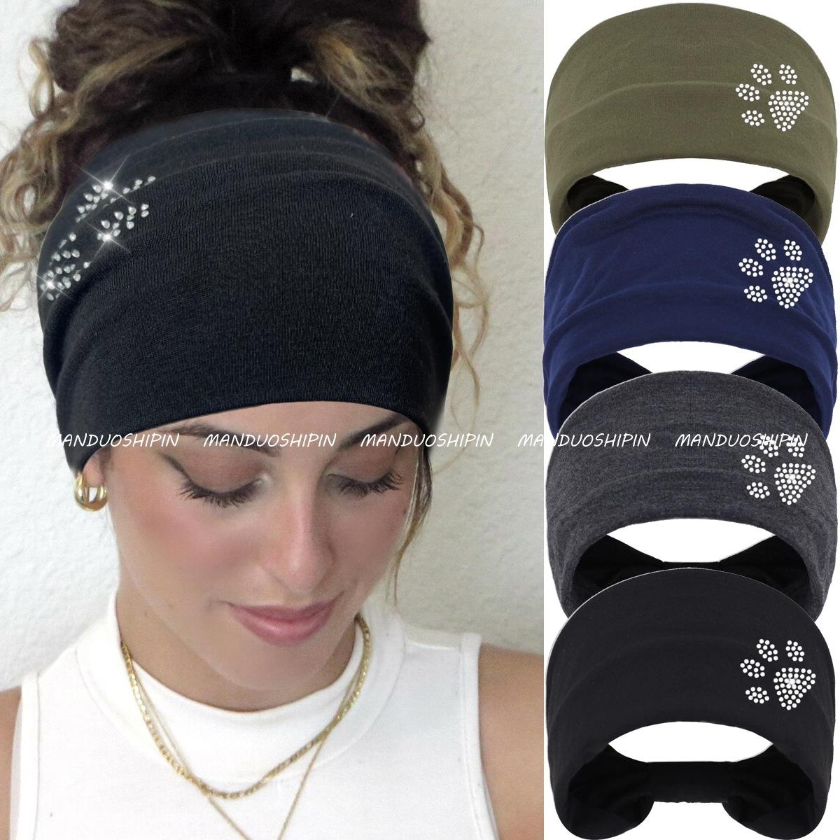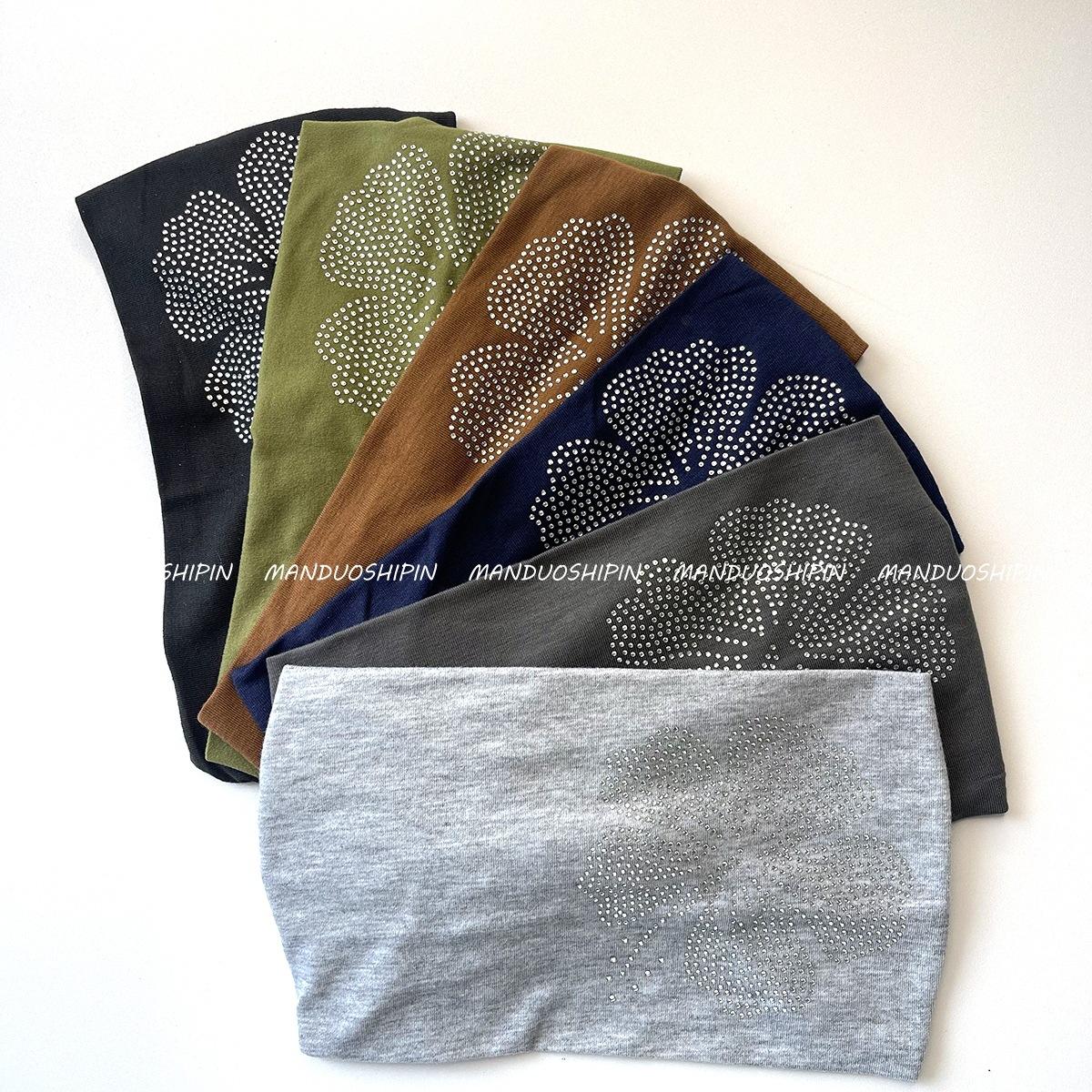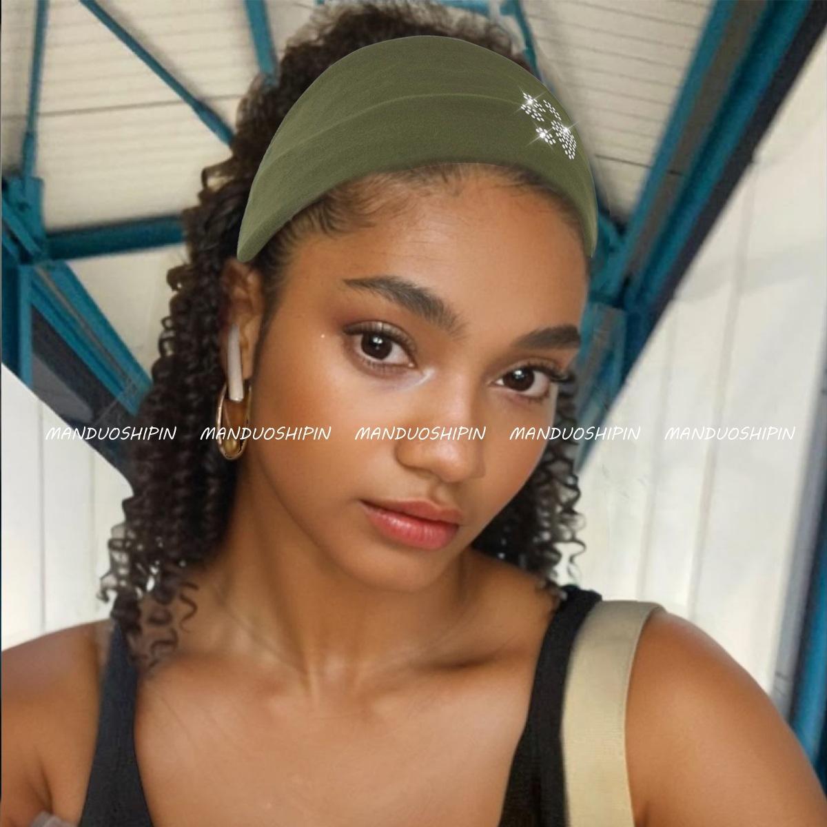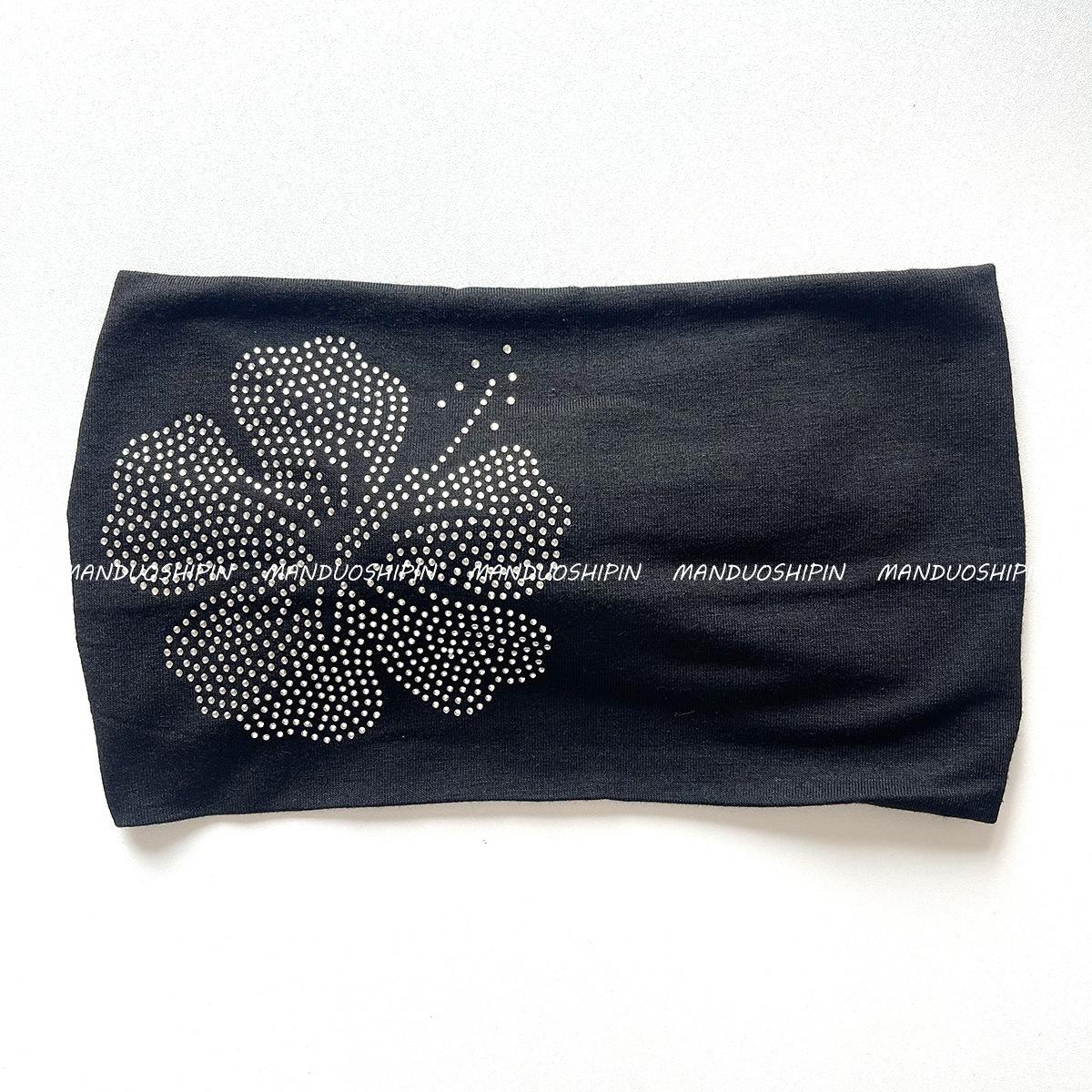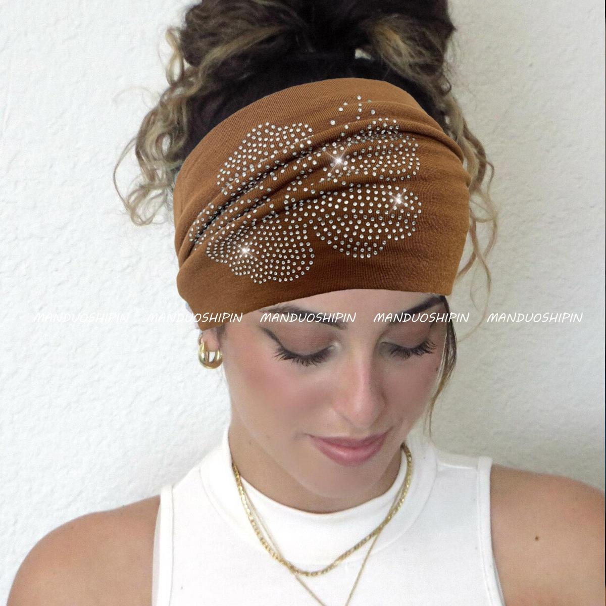 Diadema Deportiva Elástica Anudada de Color Sólido con Flor de Hibisco de Diamantes Calientes de Amazon Transfronteriza, Accesorios de Moda Retro de Ala Ancha