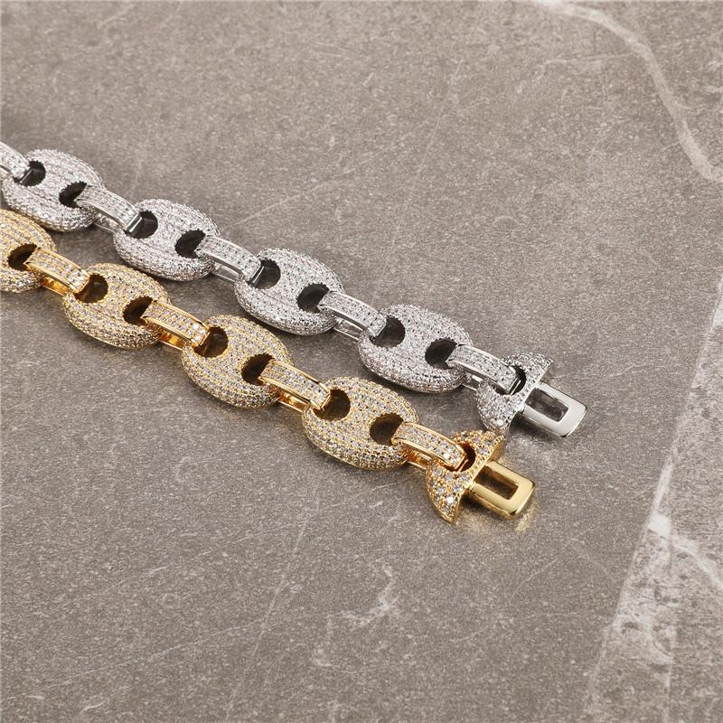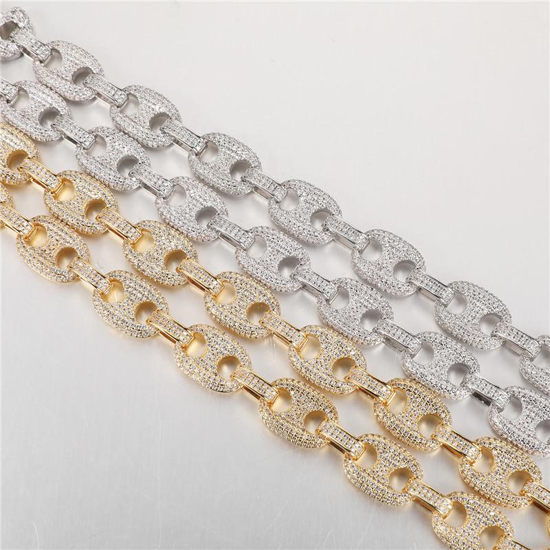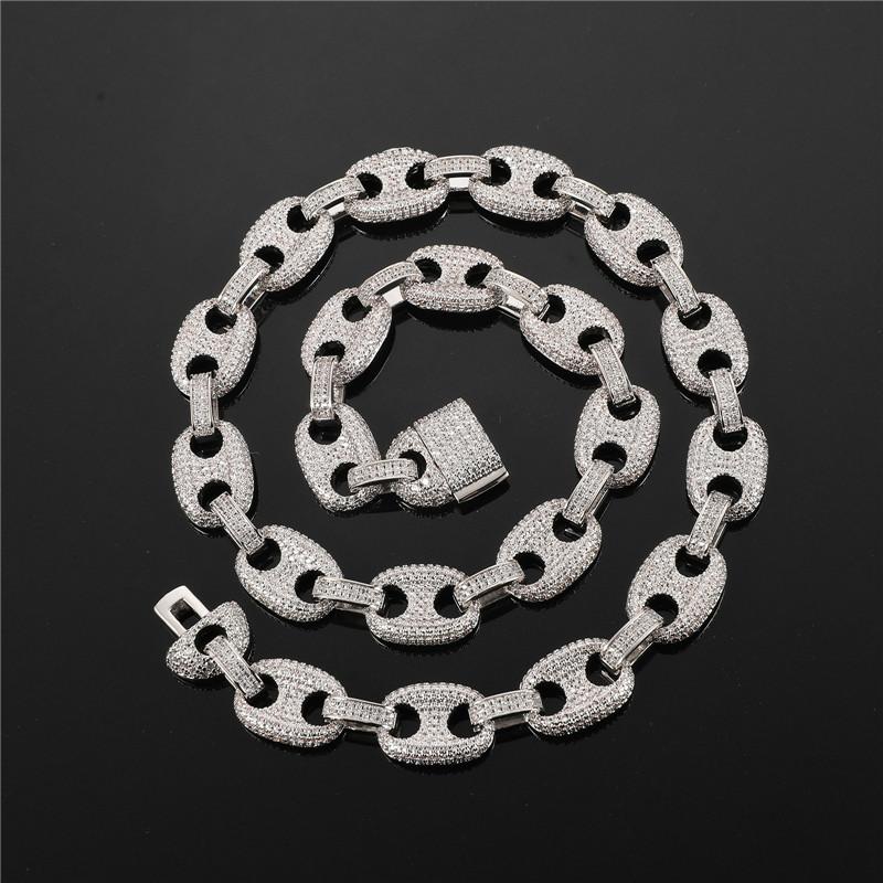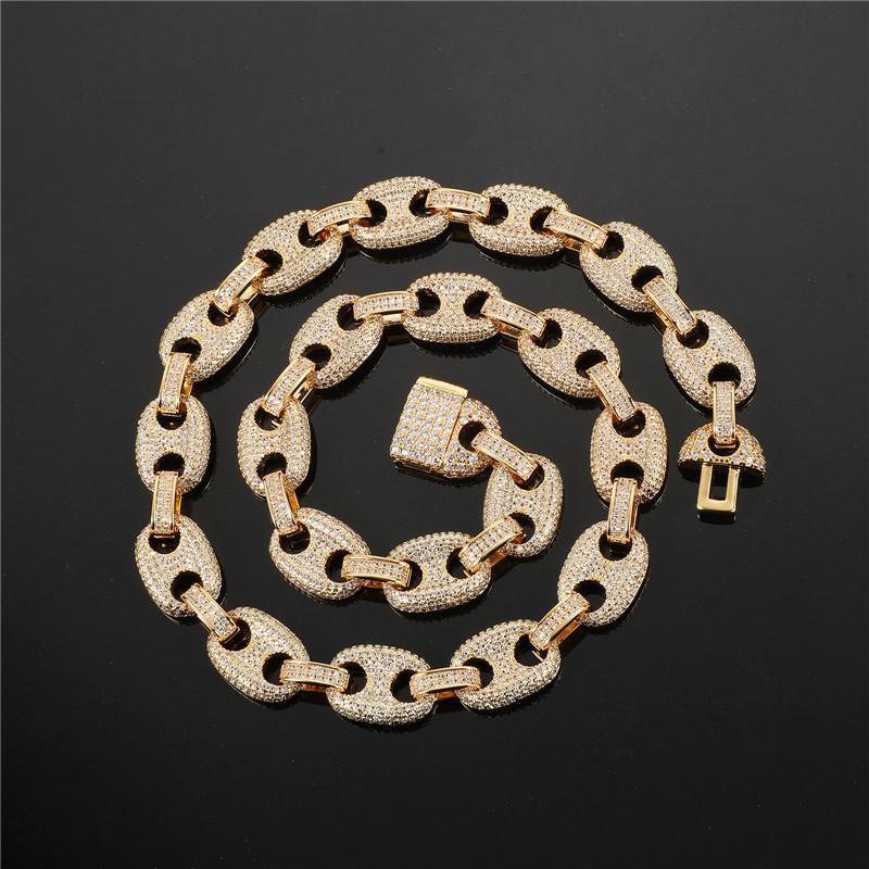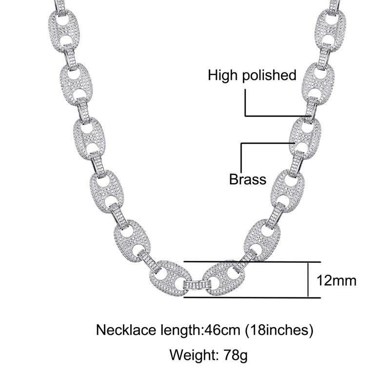 Collar hip-hop europeo y americano transfronterizo cadena cubana circonita microincrustada botón sólido hipster hiphop nariz de cerdo cadena cubana