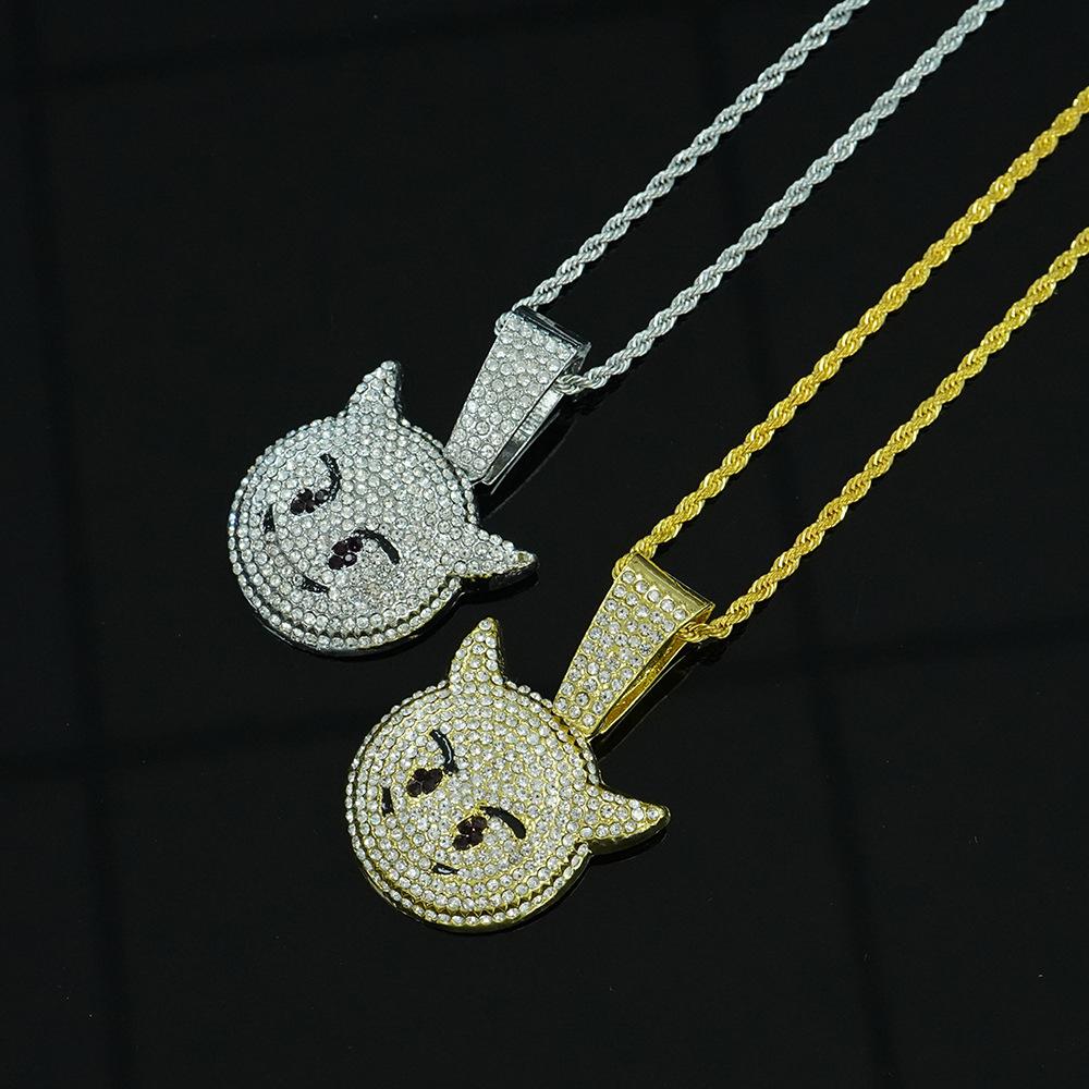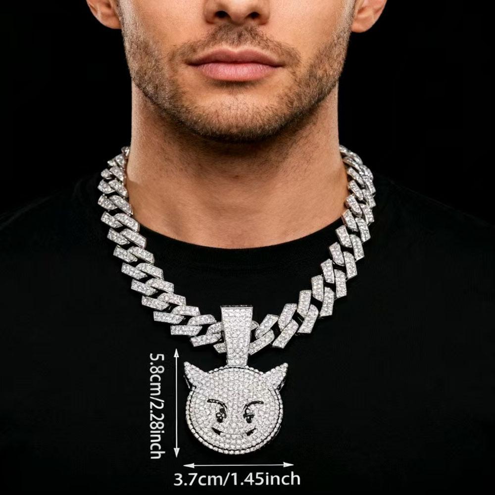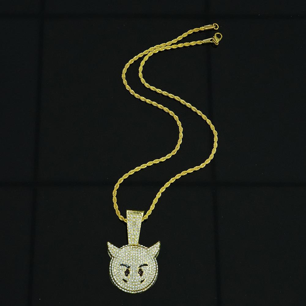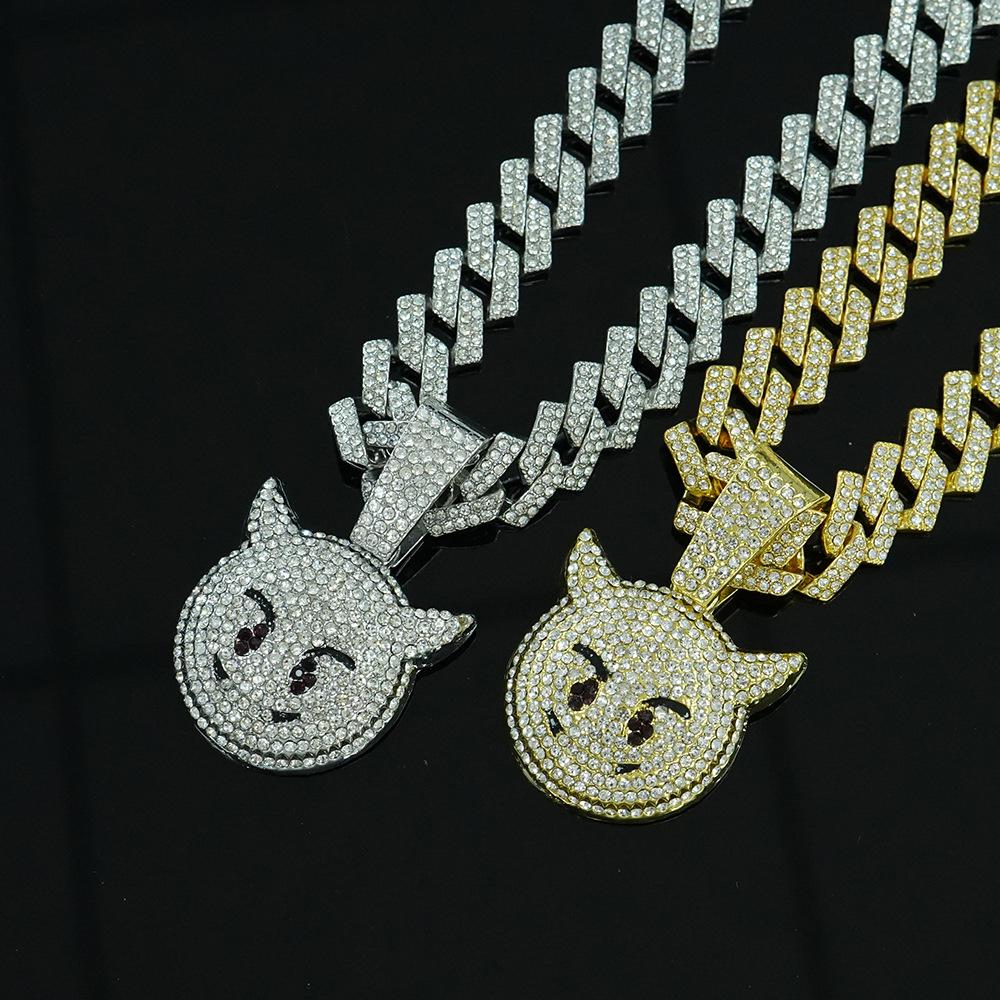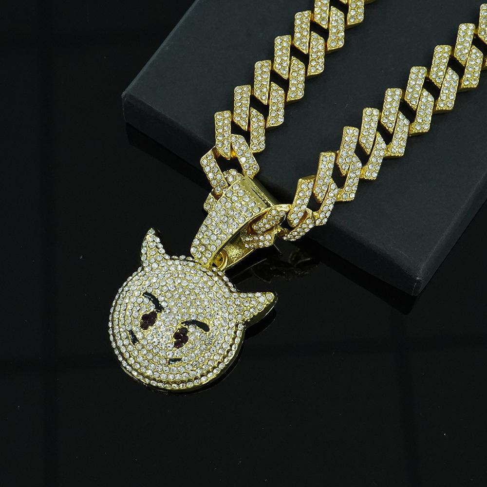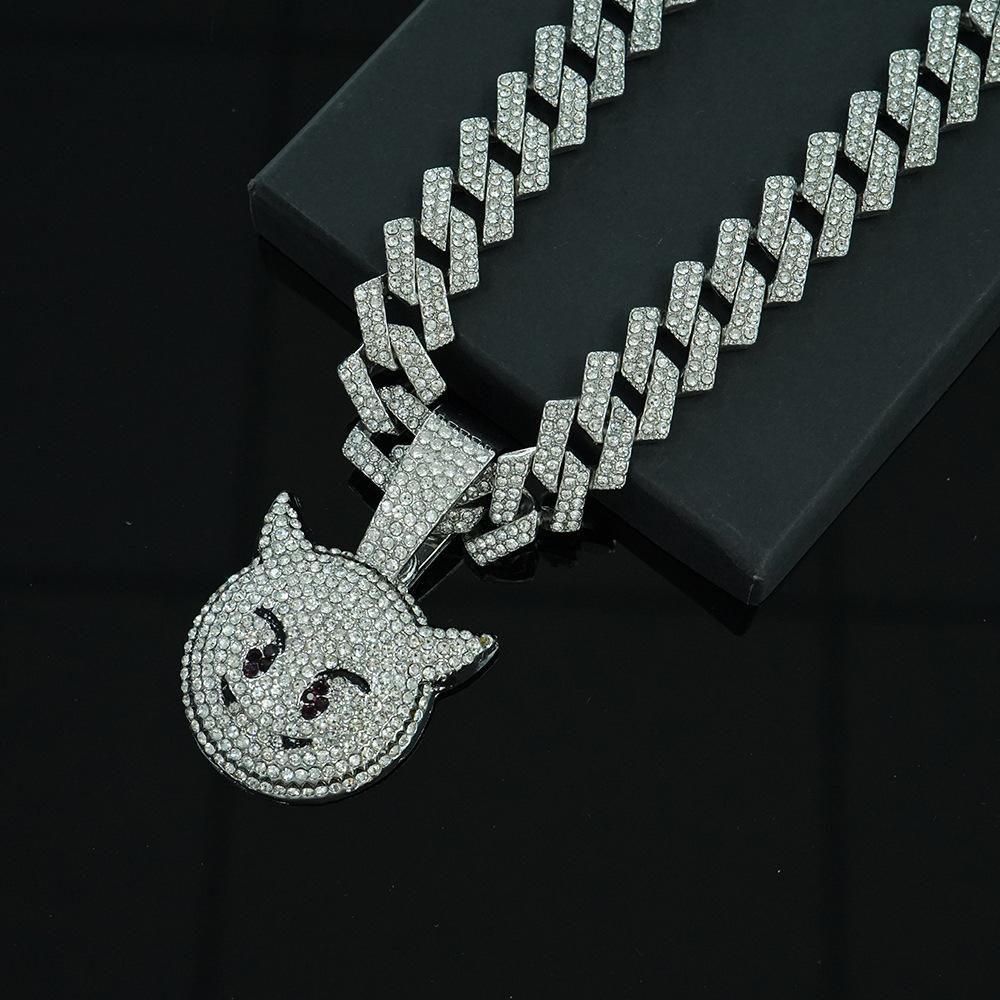 Collar de Cadena Cubana Hip-Hop Nicho Colgante de Diablito de Venta Caliente Transfronterizo con Diamantes Joyería de Moda de Lujo Ligero para Halloween