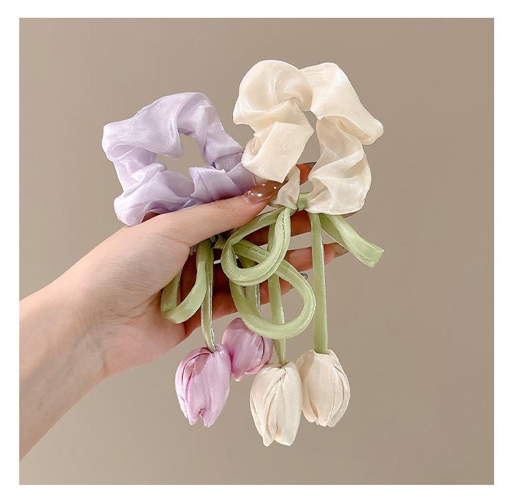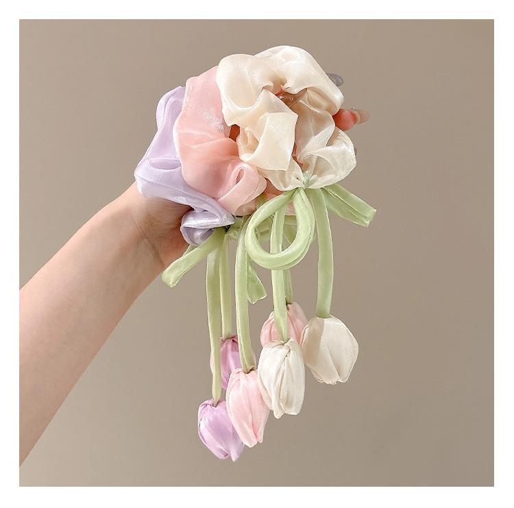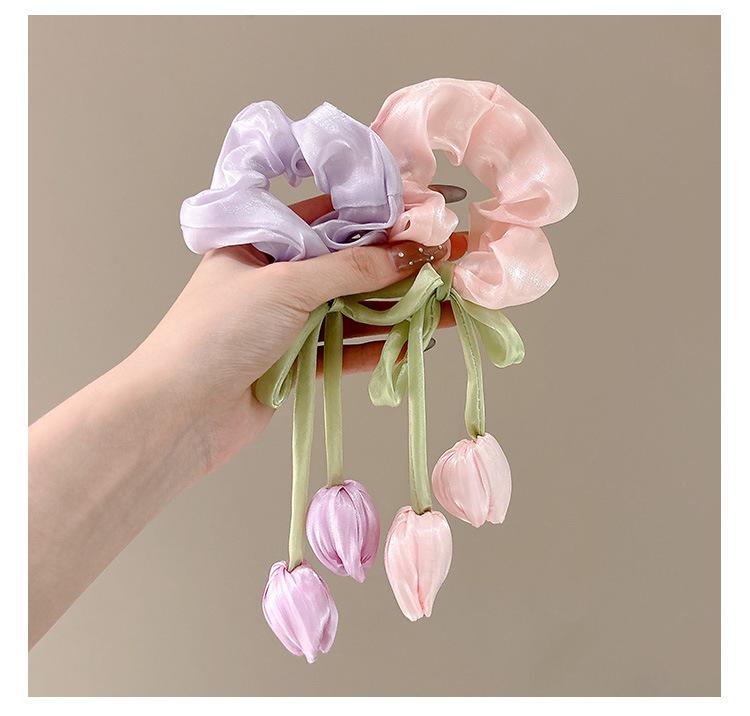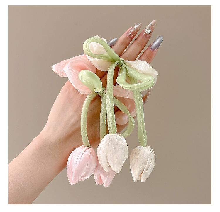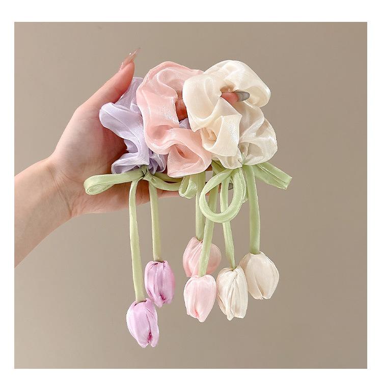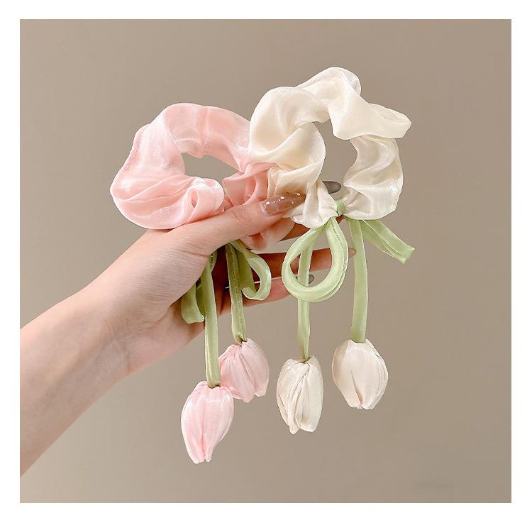 Anillo para el cabello de intestino grueso con lazo de tulipán dulce estilo coreano para mujer 2025 nuevo sentido de alta gama cuerda para el cabello de temperamento de alta elasticidad accesorios para el cabello