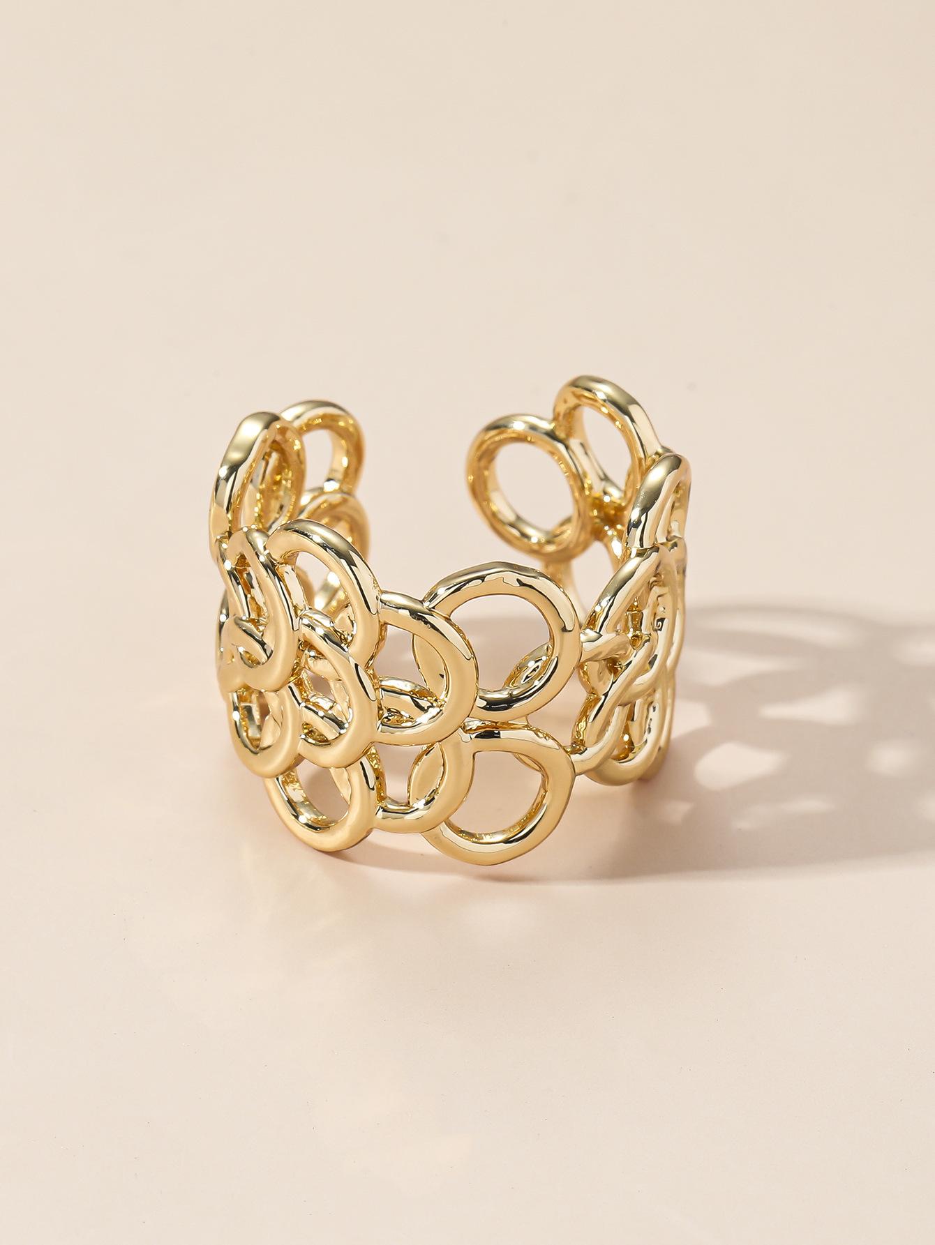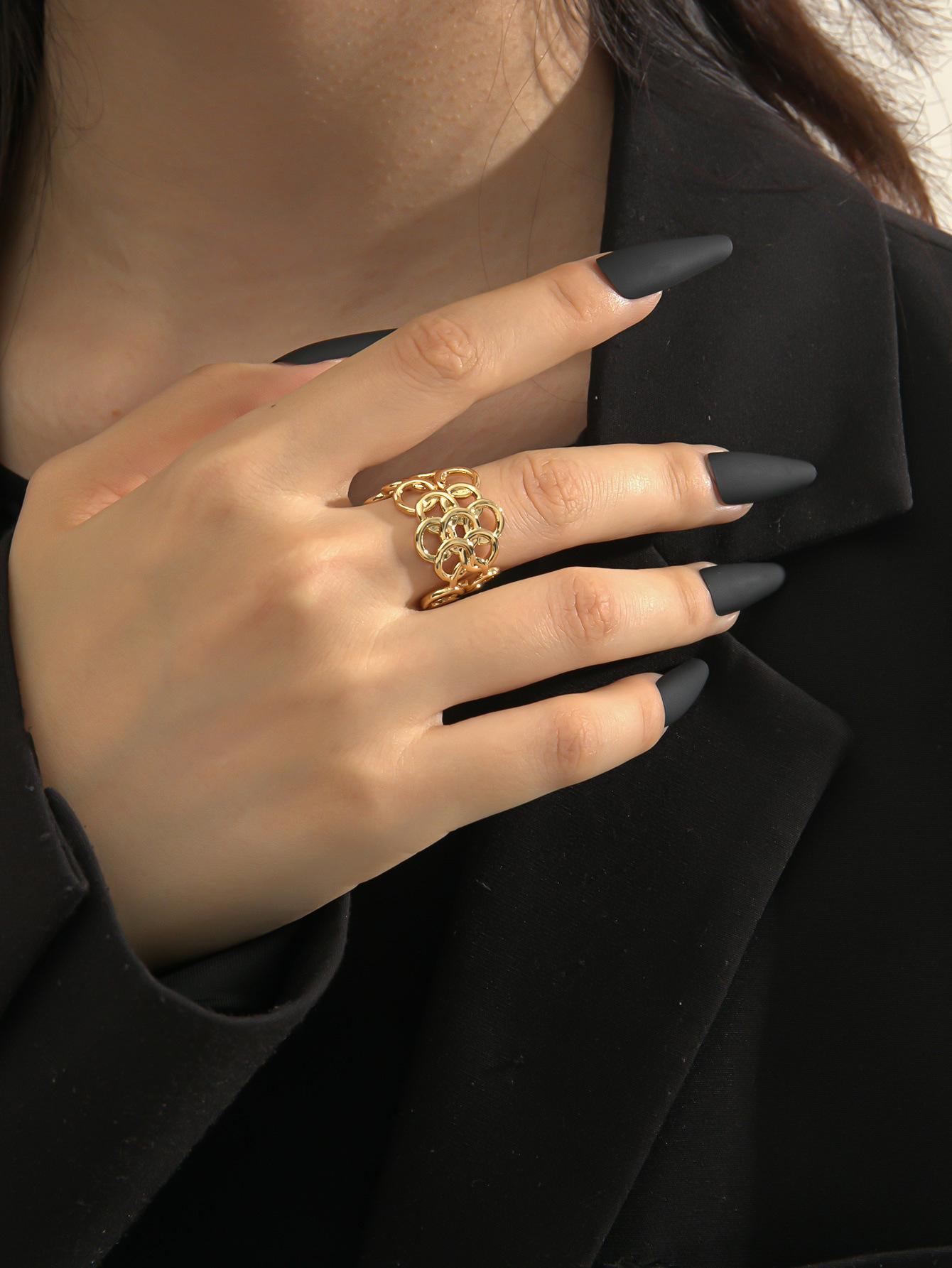 Anillo hueco irregular de alta gama chapado en oro de lujo ligero, moda para mujer, exquisito, minimalista, versátil, abierto, ajustable