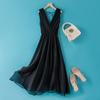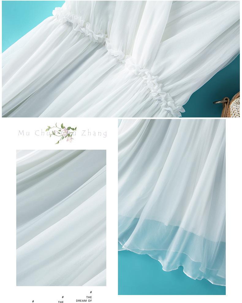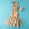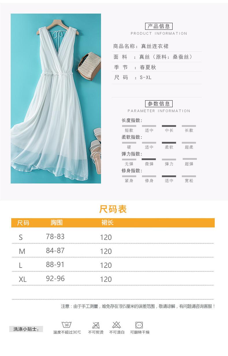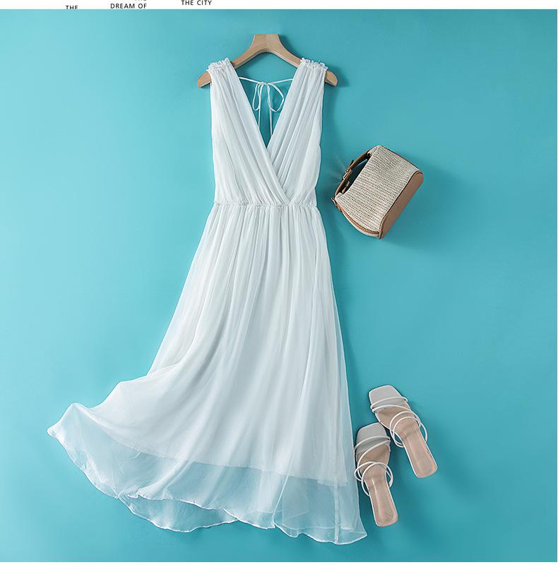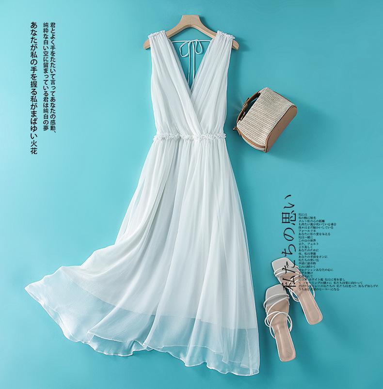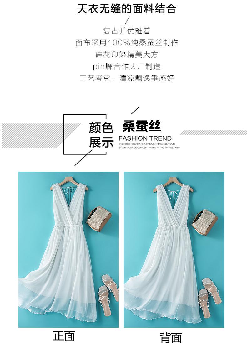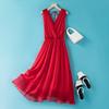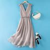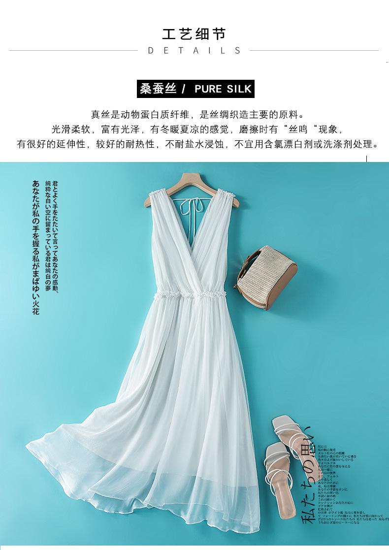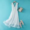 Estilo Suave Vacaciones Viajes Junto al Mar Hada Vestido Largo Seda Seda de Morera Vestido Cuello en V Mujeres Verano Suministro en Vivo