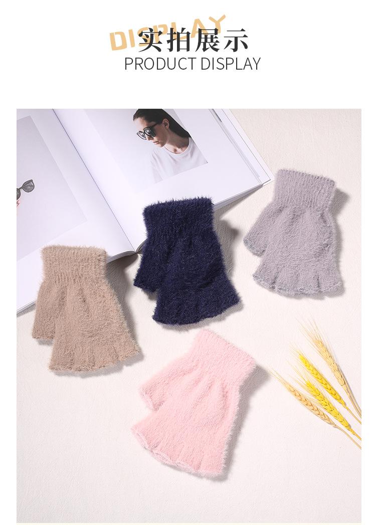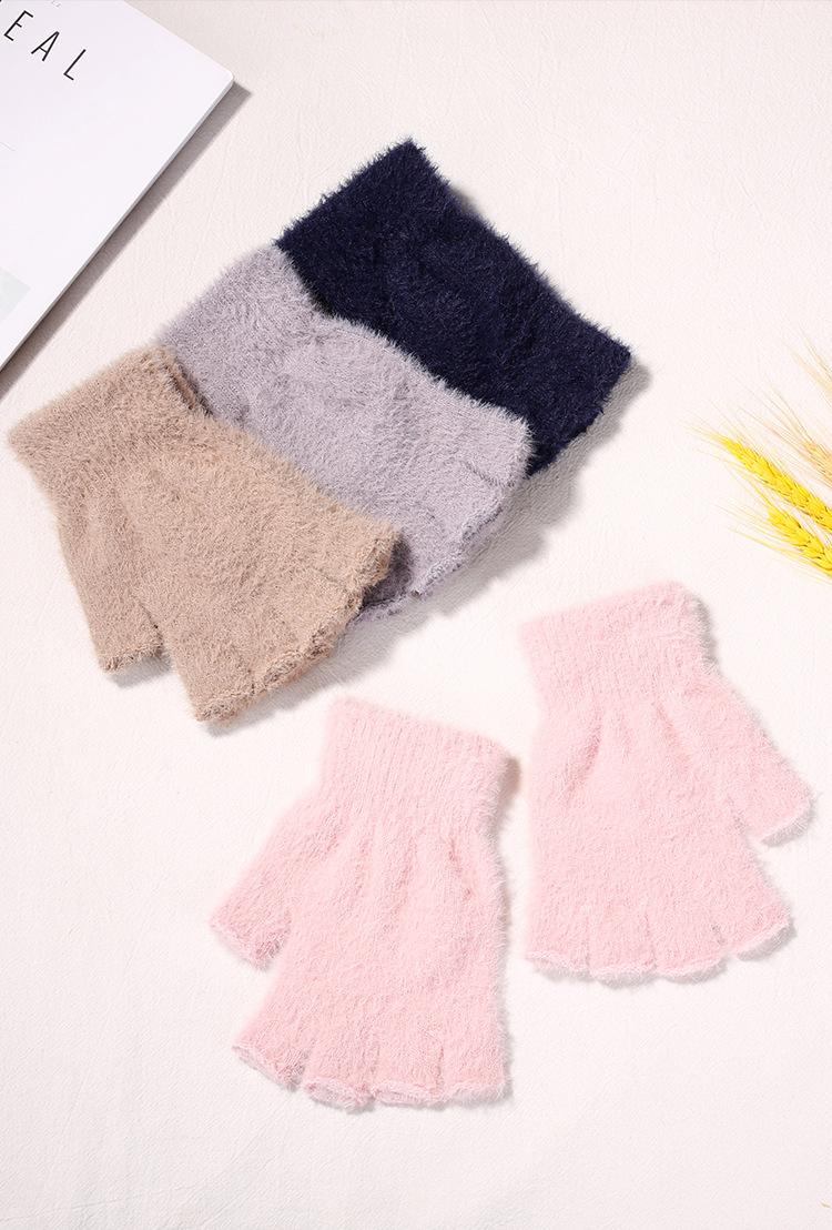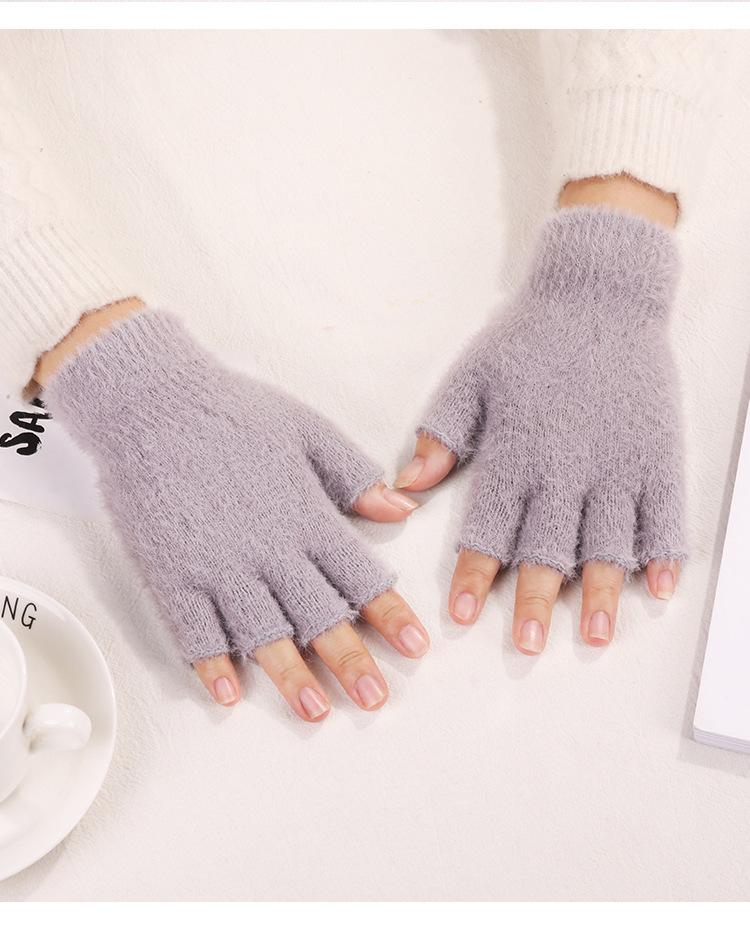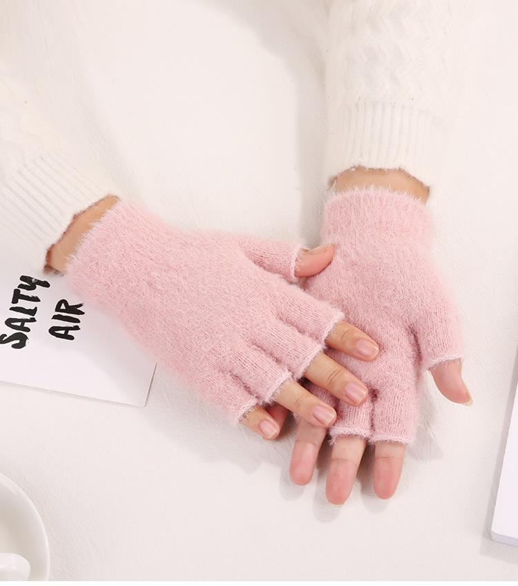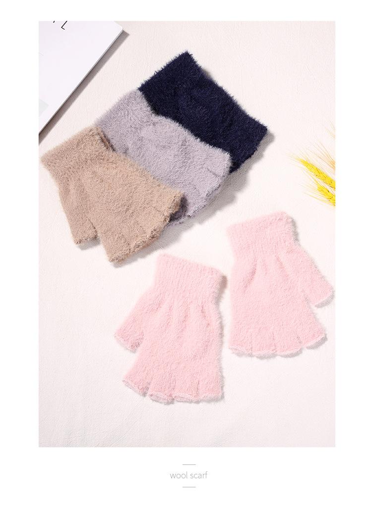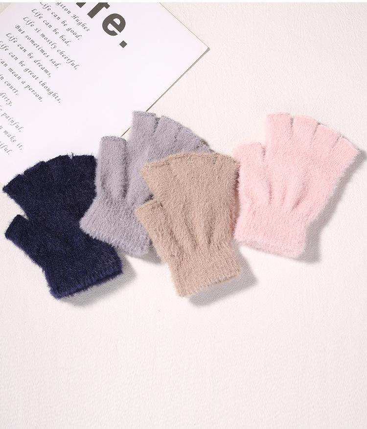 Guantes de Invierno Cálidos de Punto para Adultos 2025 de Medio Dedo y Medio Dedo Libre para Niños y Niñas Guantes de Color Puro Sin Dedos