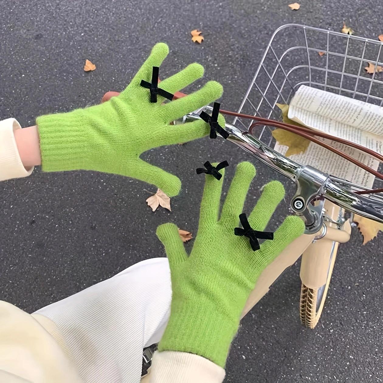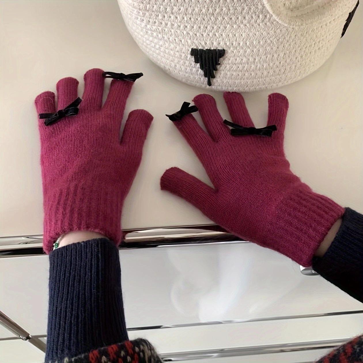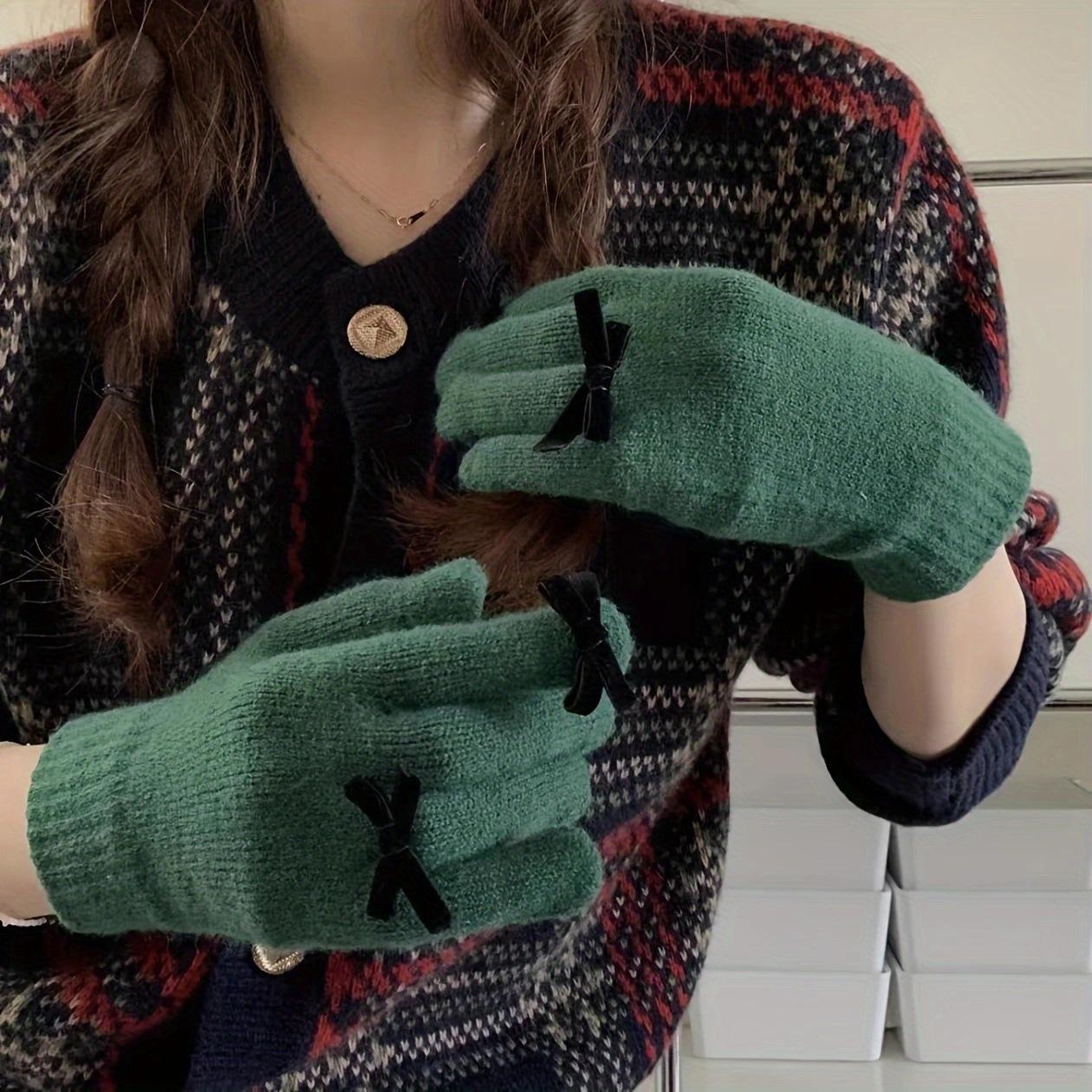 Otoño e invierno lana tejida lazo pantalla táctil cálido a prueba de frío lindo estudiante guantes de dedo otoño e invierno