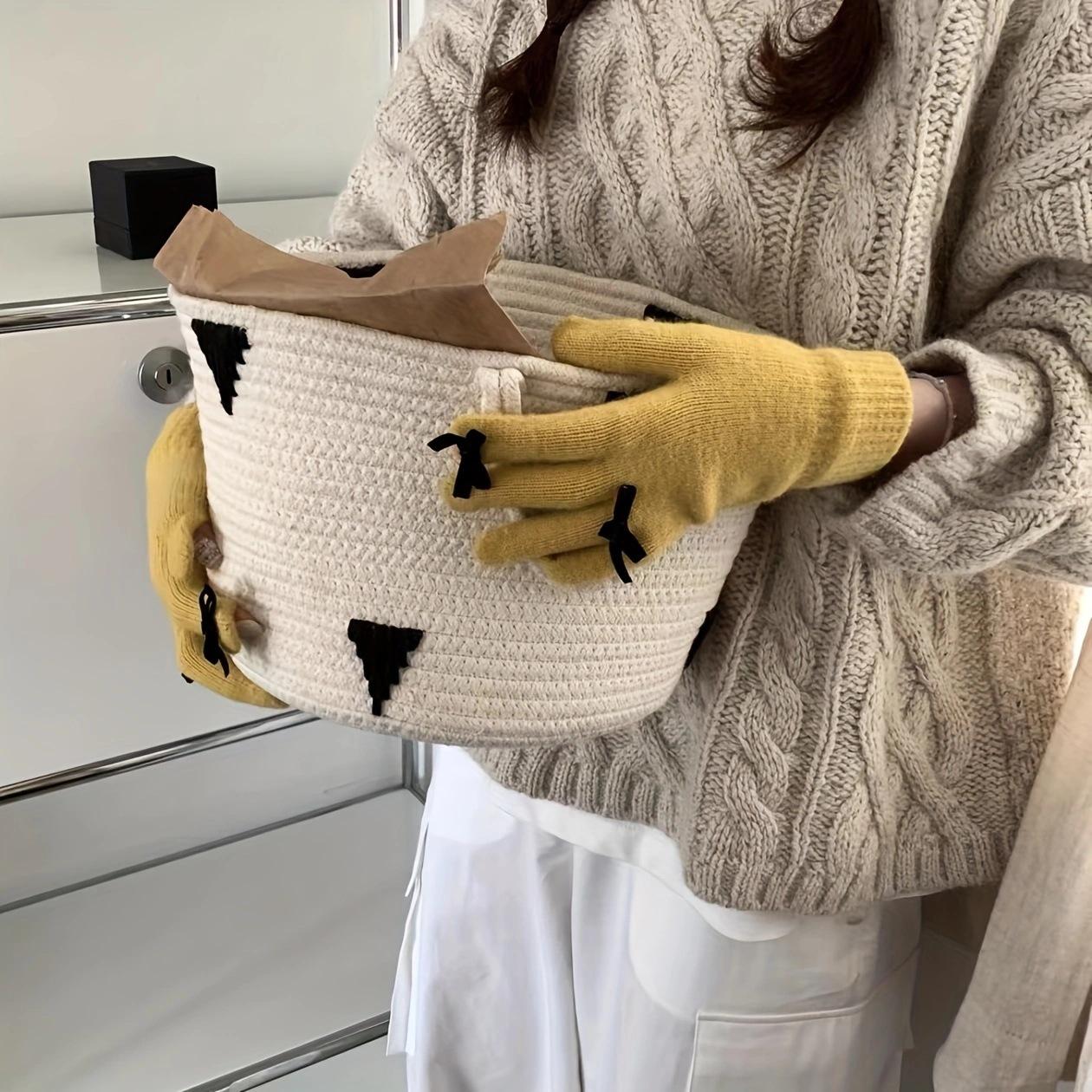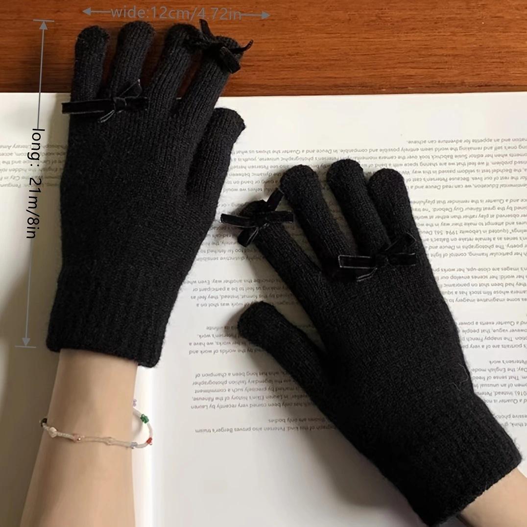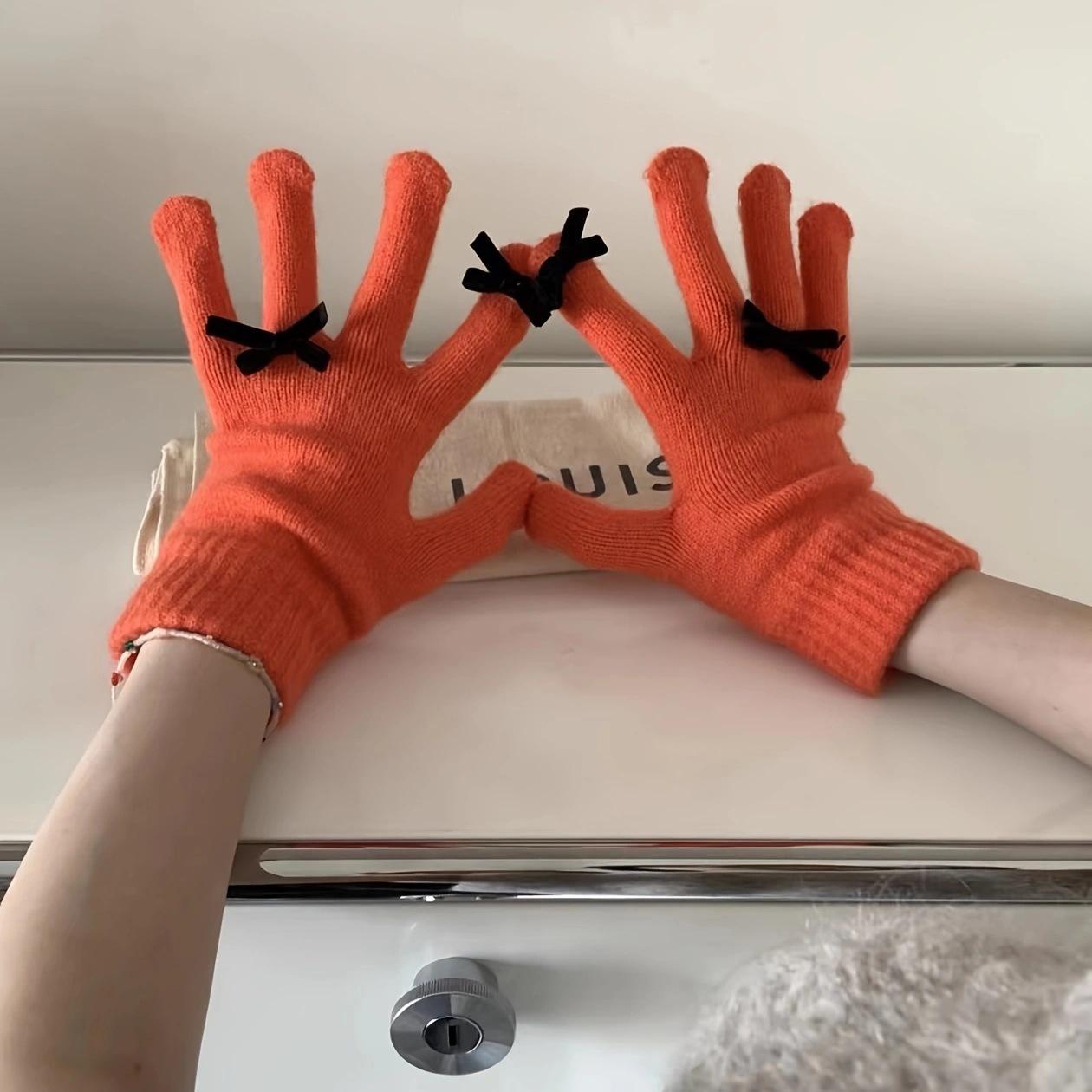 Otoño e invierno lana tejida lazo pantalla táctil cálido a prueba de frío lindo estudiante guantes de dedo otoño e invierno