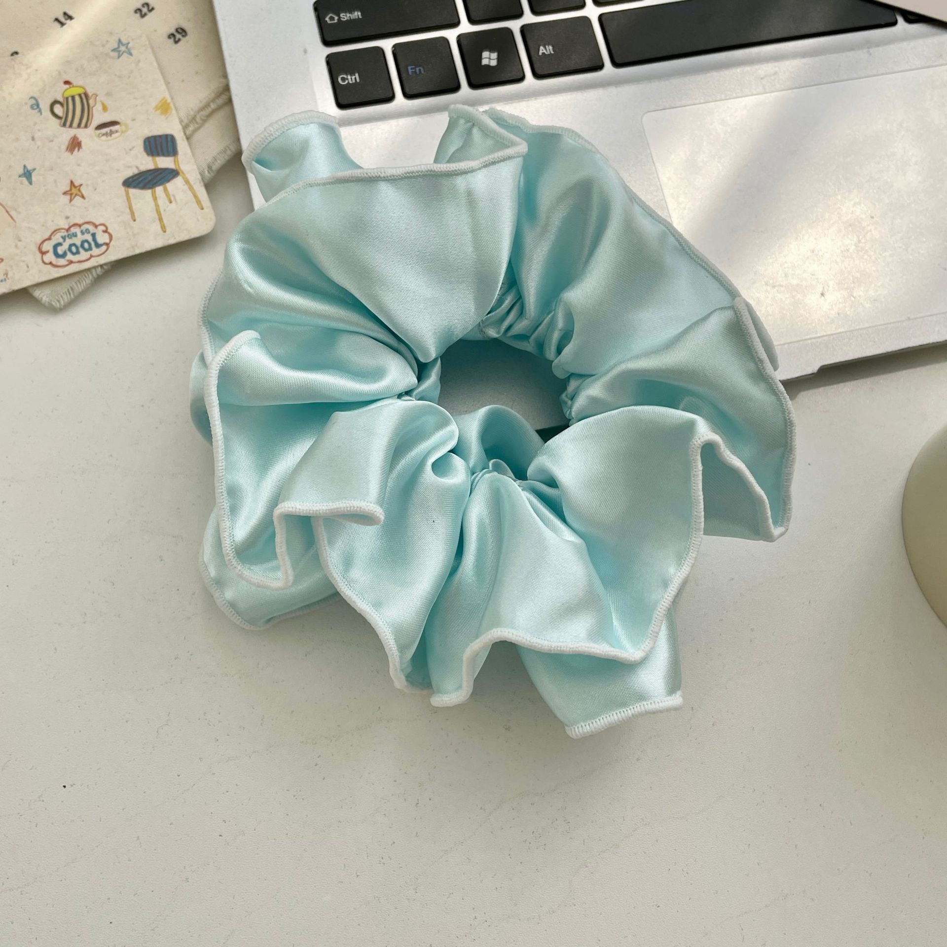Anillo para el cabello de satén de seda color crema de Corea del Sur, para el intestino grueso, estilo ballet, bolas de nicho, cuerda para el cabello, accesorios para el cabello, flores para la cabeza