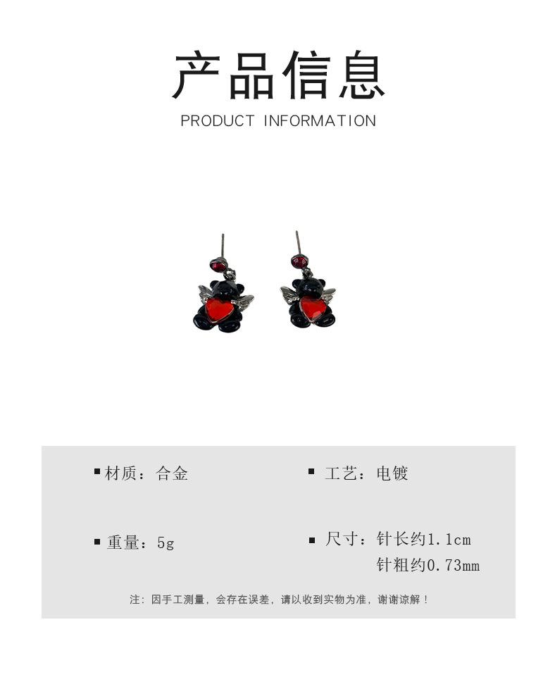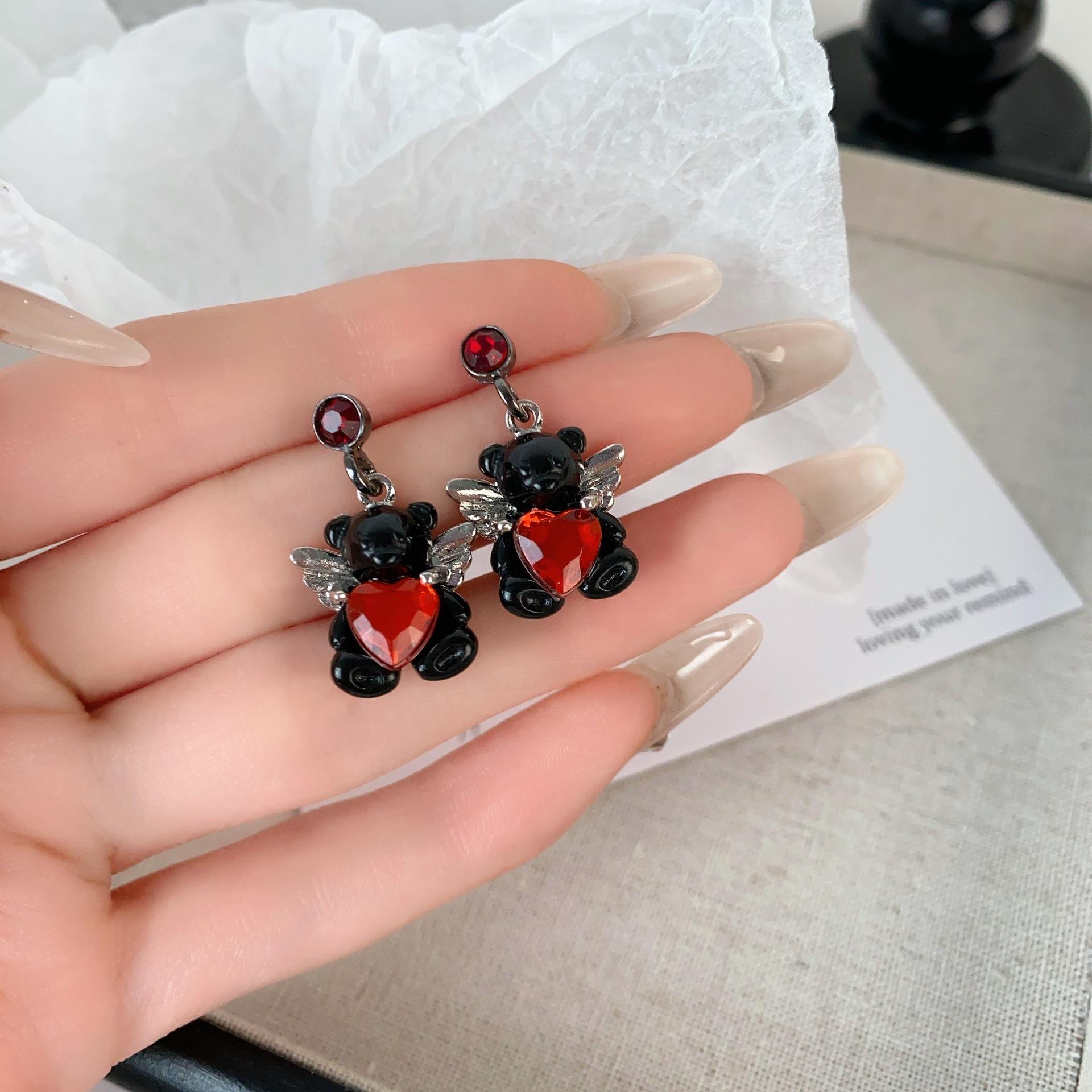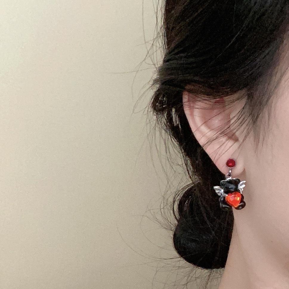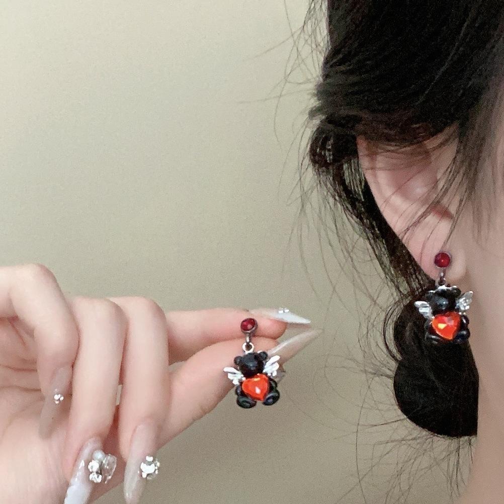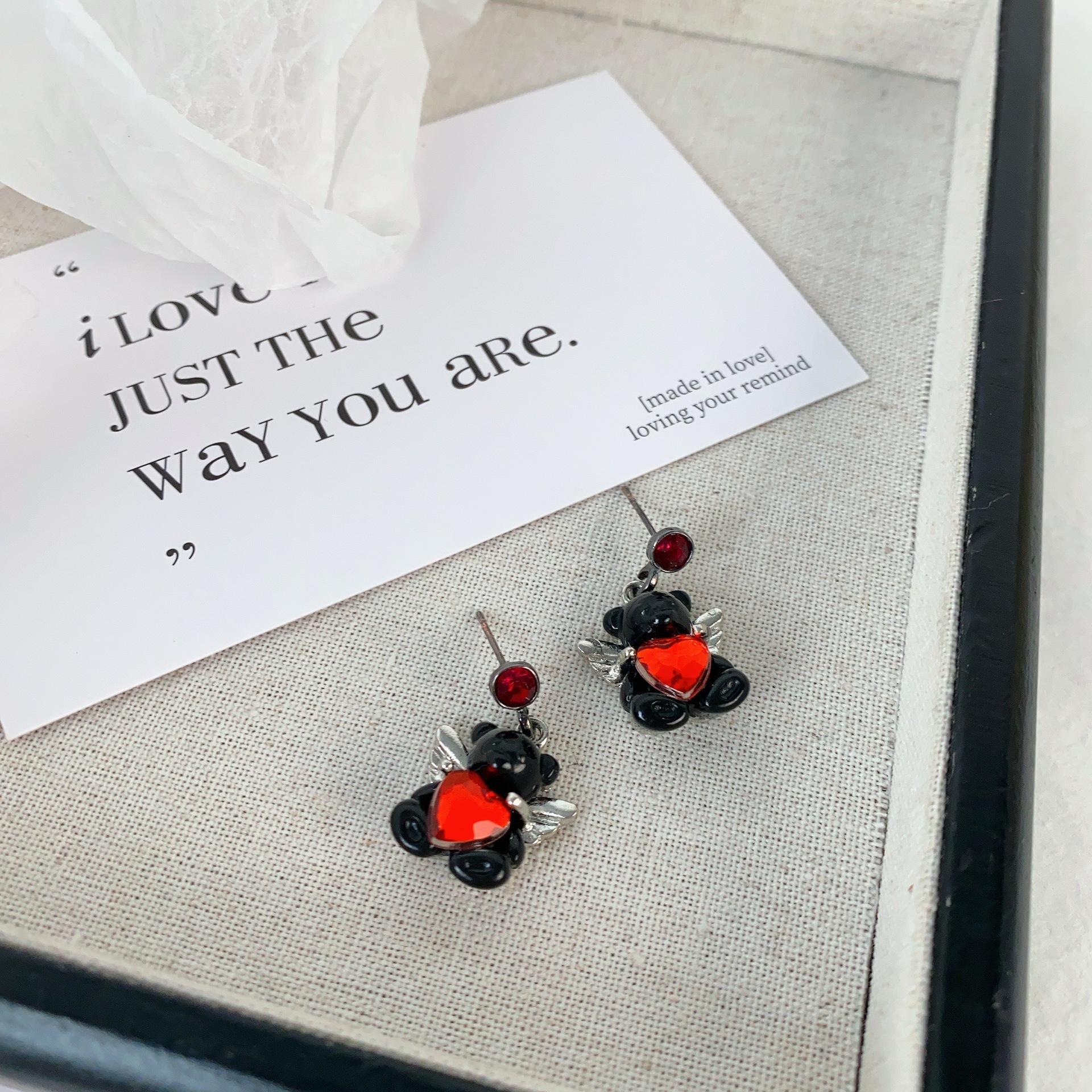 Aretes de oso con alas de amor dulce, aretes pequeños de diseño creativo, aretes de temperamento gentil, aretes que combinan con todo