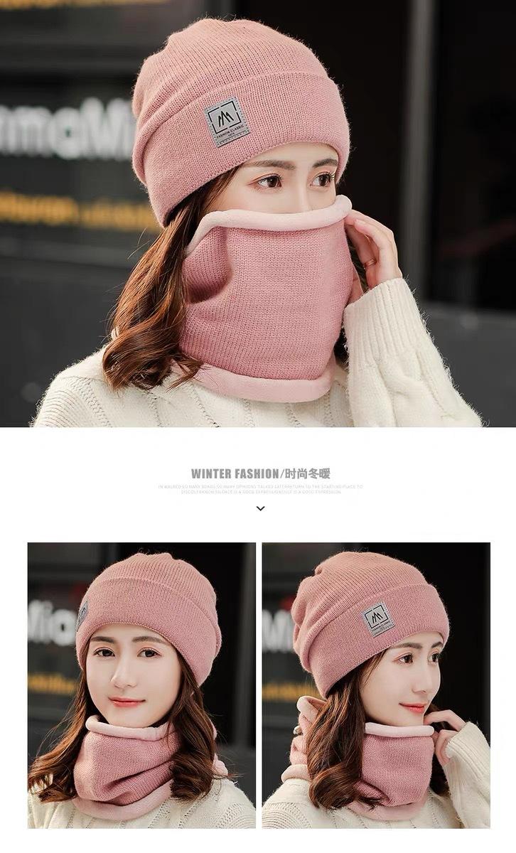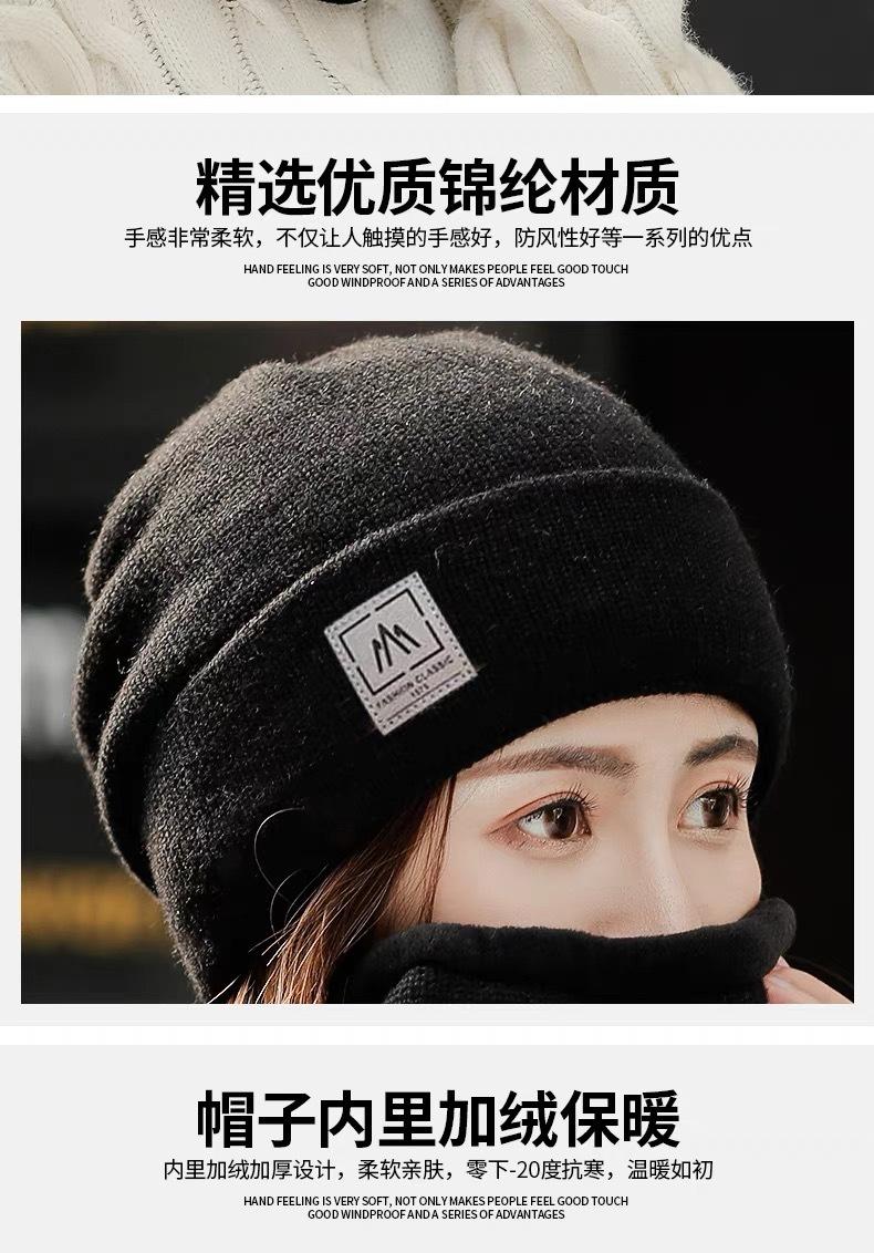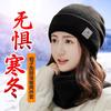 Conjunto de dos piezas de gorro y bufanda de invierno para mujer, gorro de lana cálido y resistente al frío, gorro de punto para hombre, gorro de luna para montar a juego para otoño e invierno.