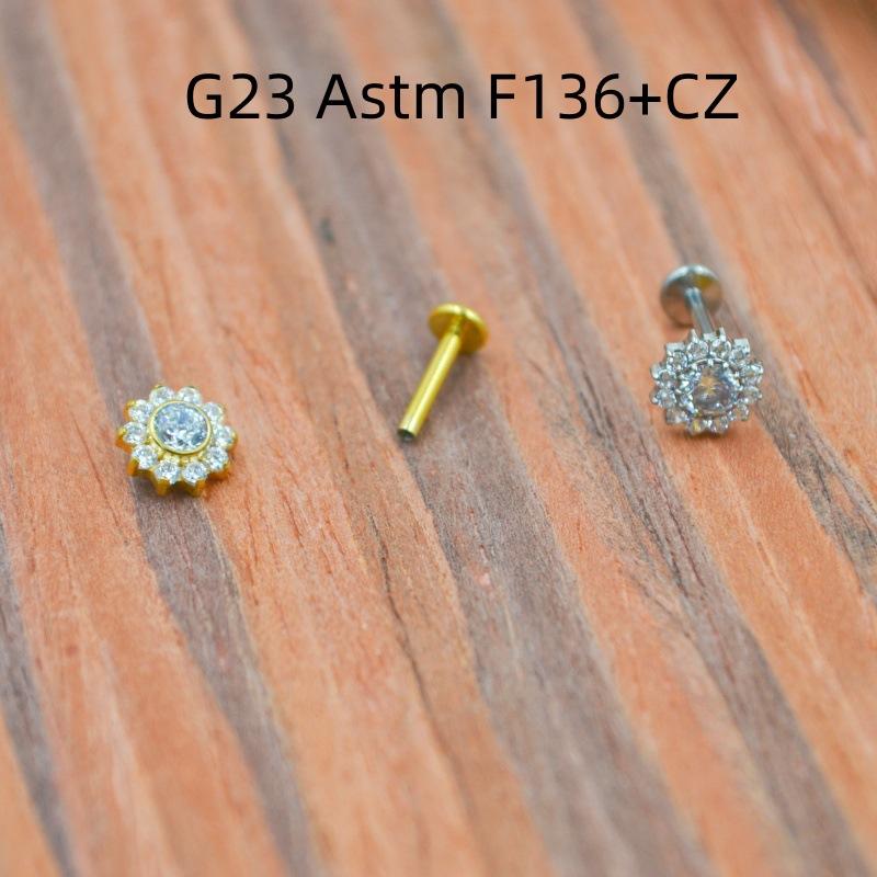 Aretes de Flor de Circonio de Aleación de Titanio F136 Aretes Uñas para el Hueso de la Oreja Uñas para el Labio Uñas para la Nariz Perforación Joyería para Perforación Nuevo Punto
