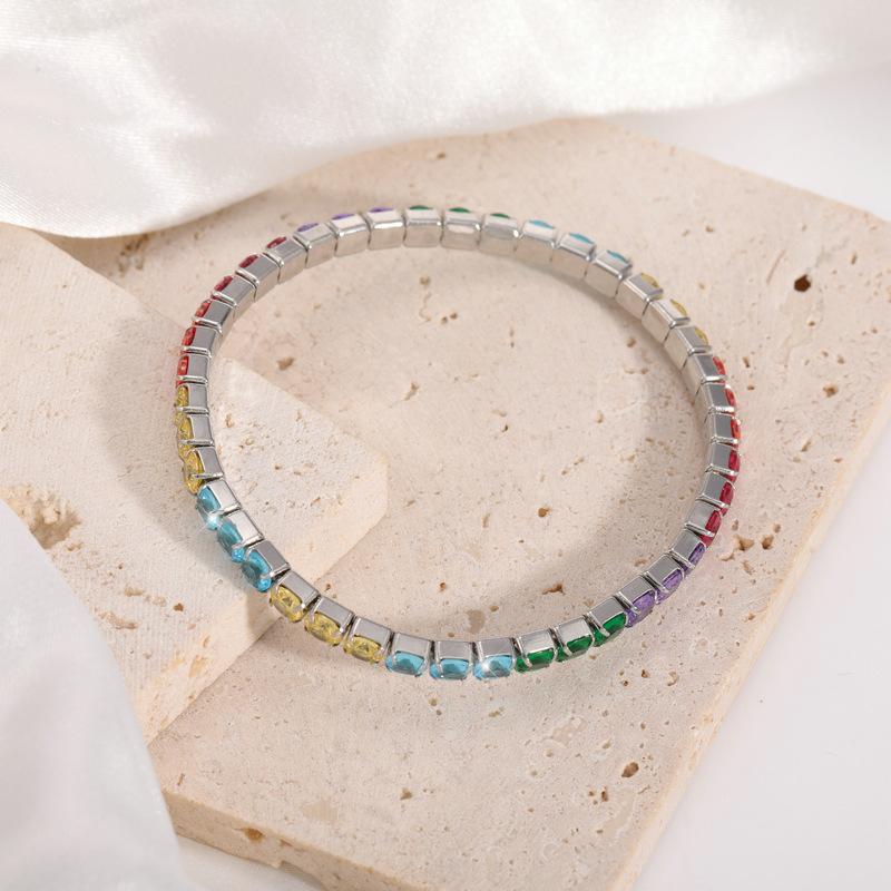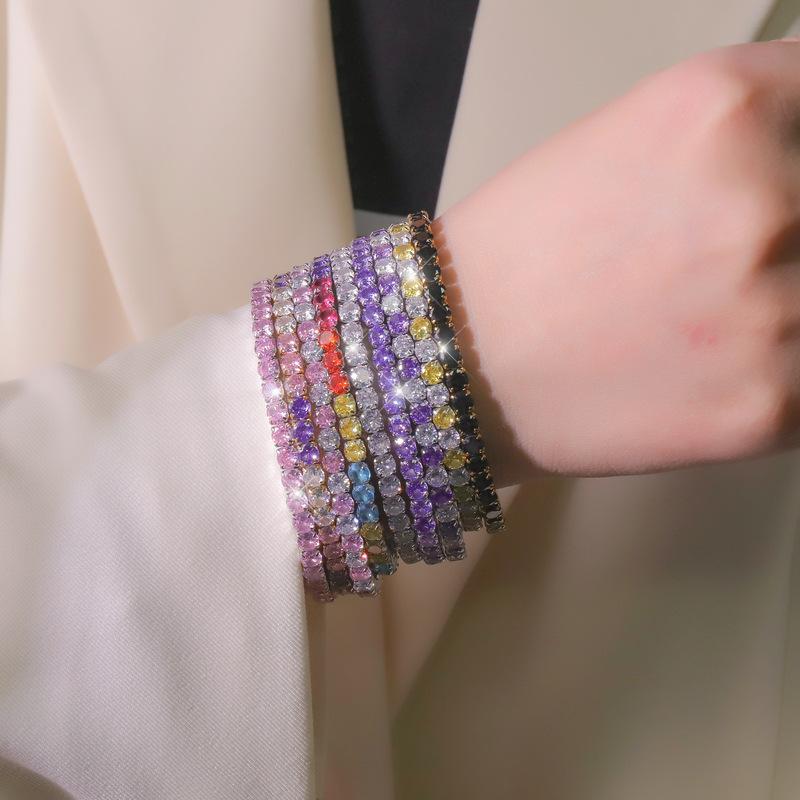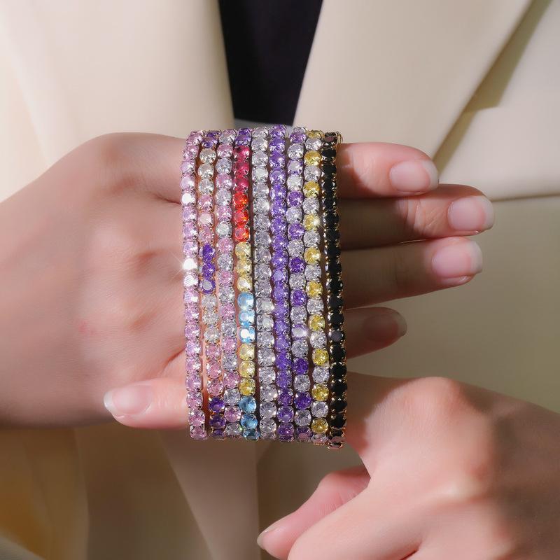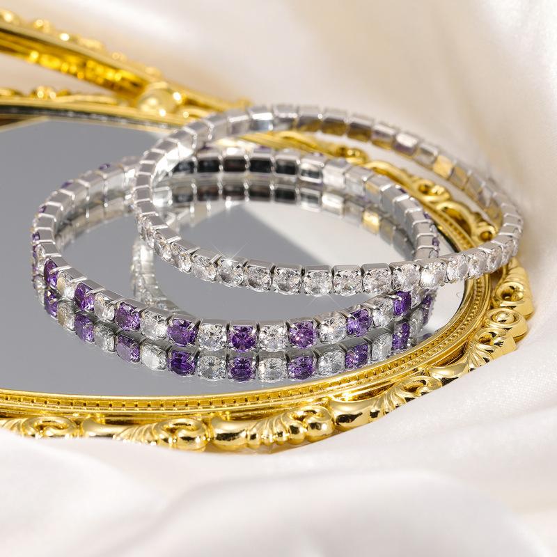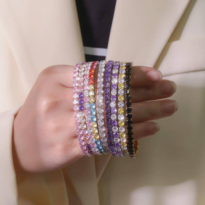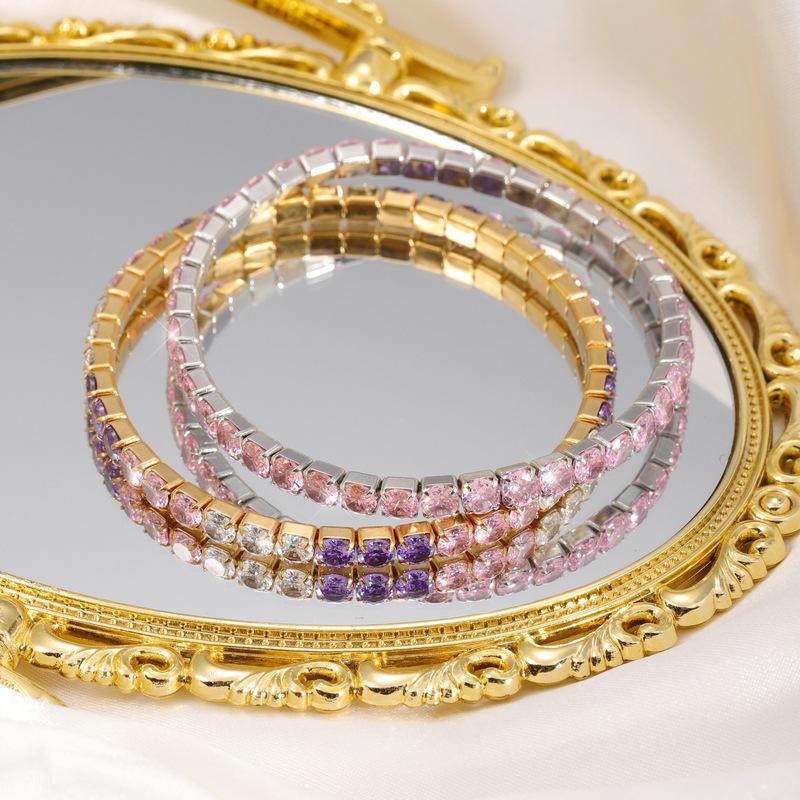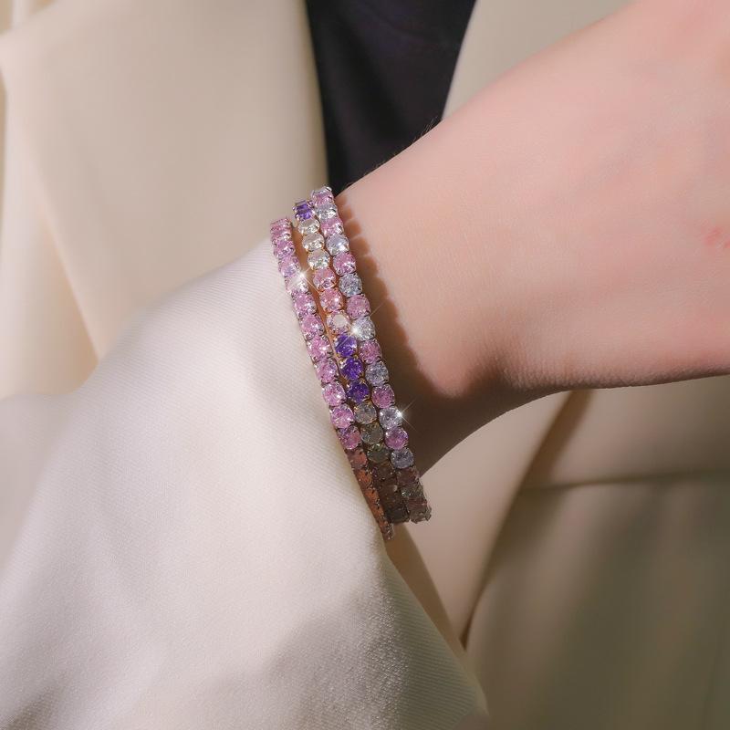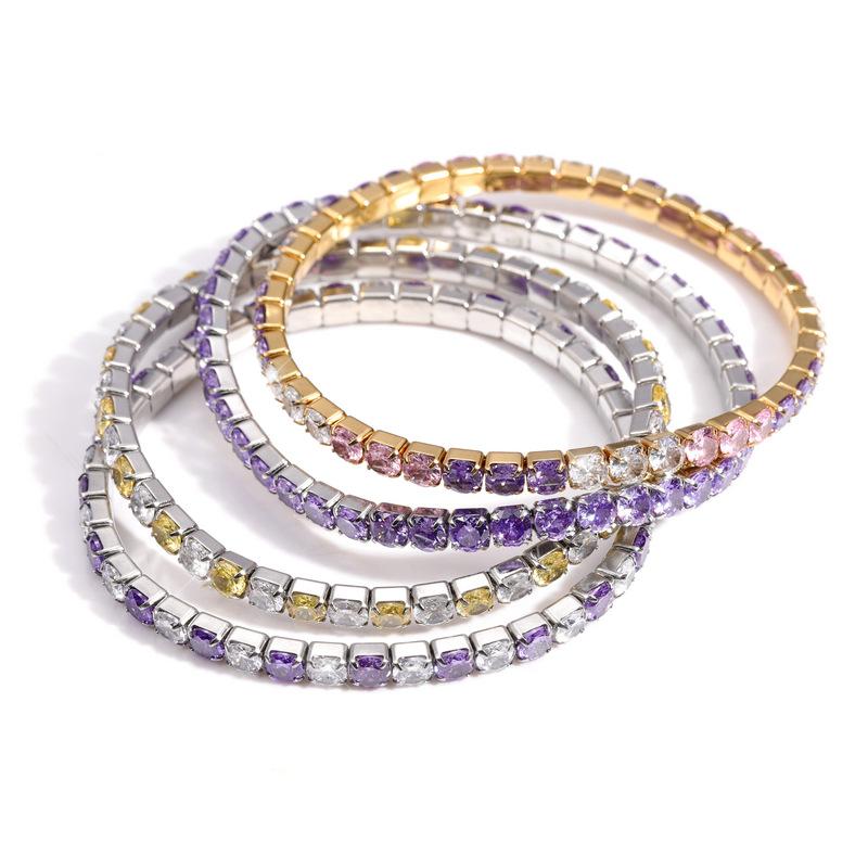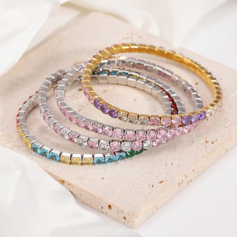 Color acero inoxidable redondo circonio incrustación diamante completo exquisito moda diseño nicho tenis pulsera de dama joyería al por mayor