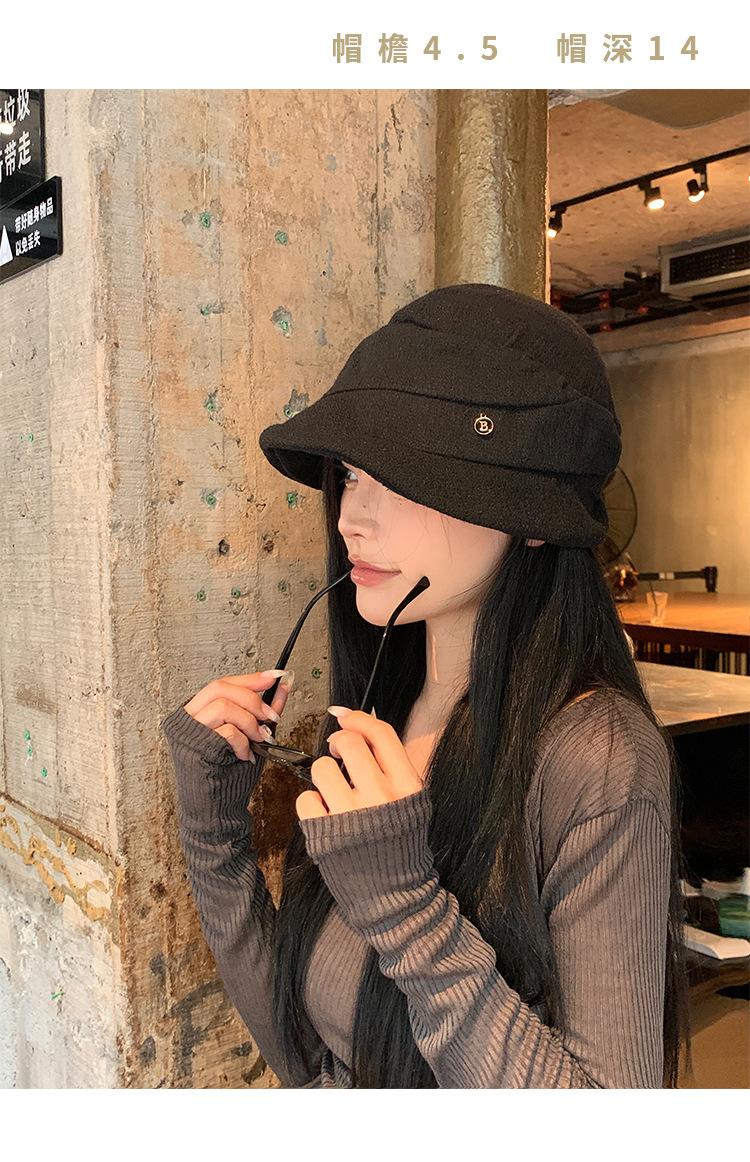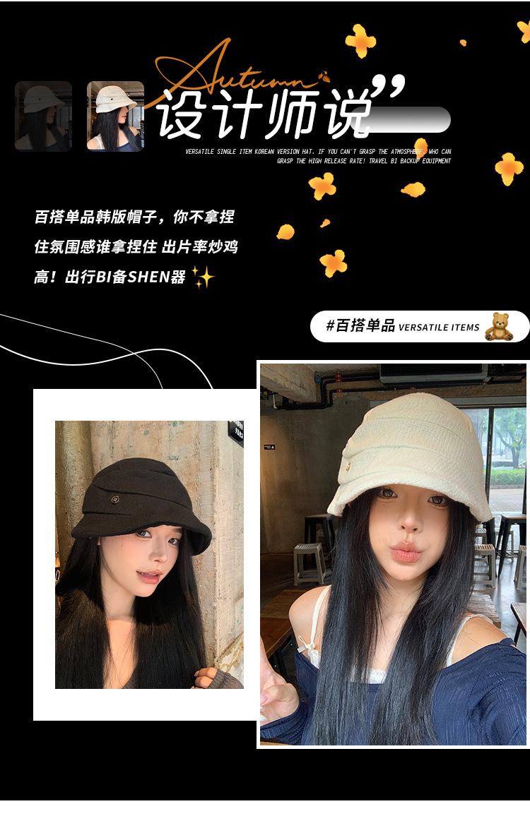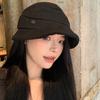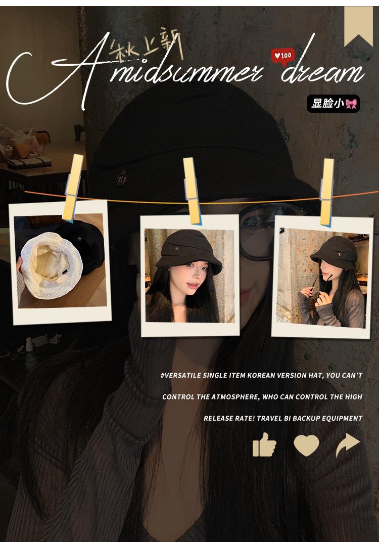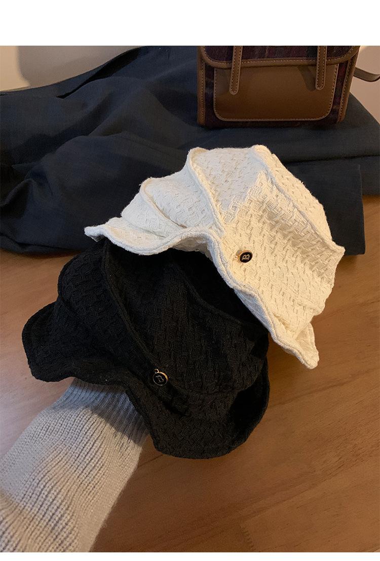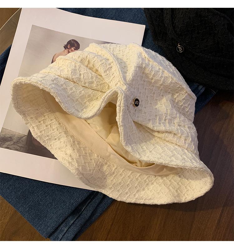 Sombrero de Pescador Blanco Simple de Moda para Combinar con Todo para Mujer Otoño e Invierno Estilo Japonés Retro Sombrero de Cubeta Ala Grande Que Muestra la Cara Pequeña Sombrero de Moda