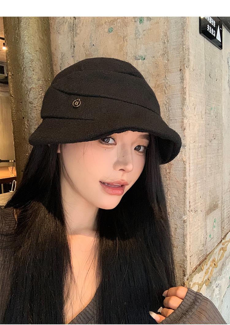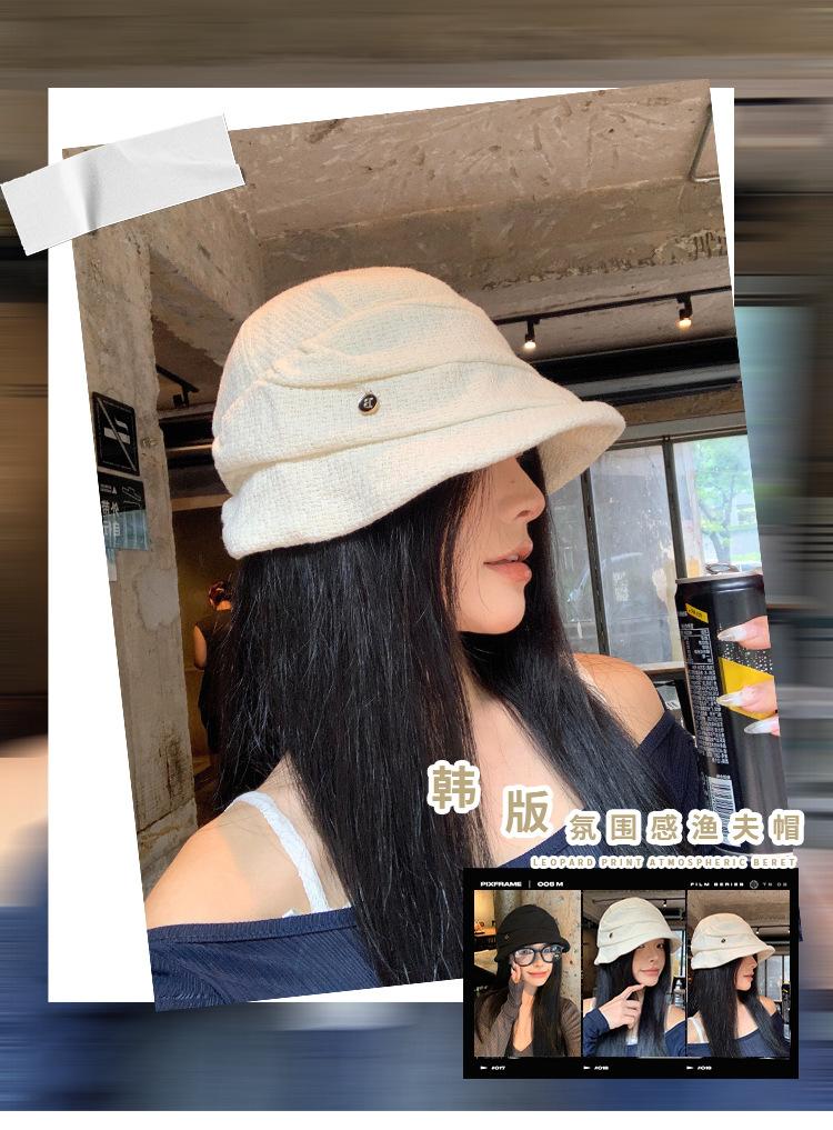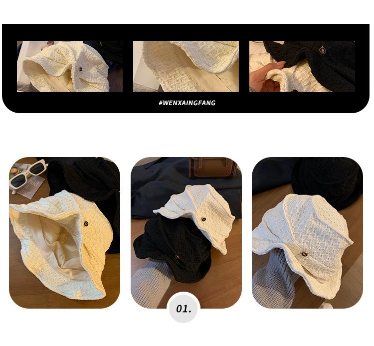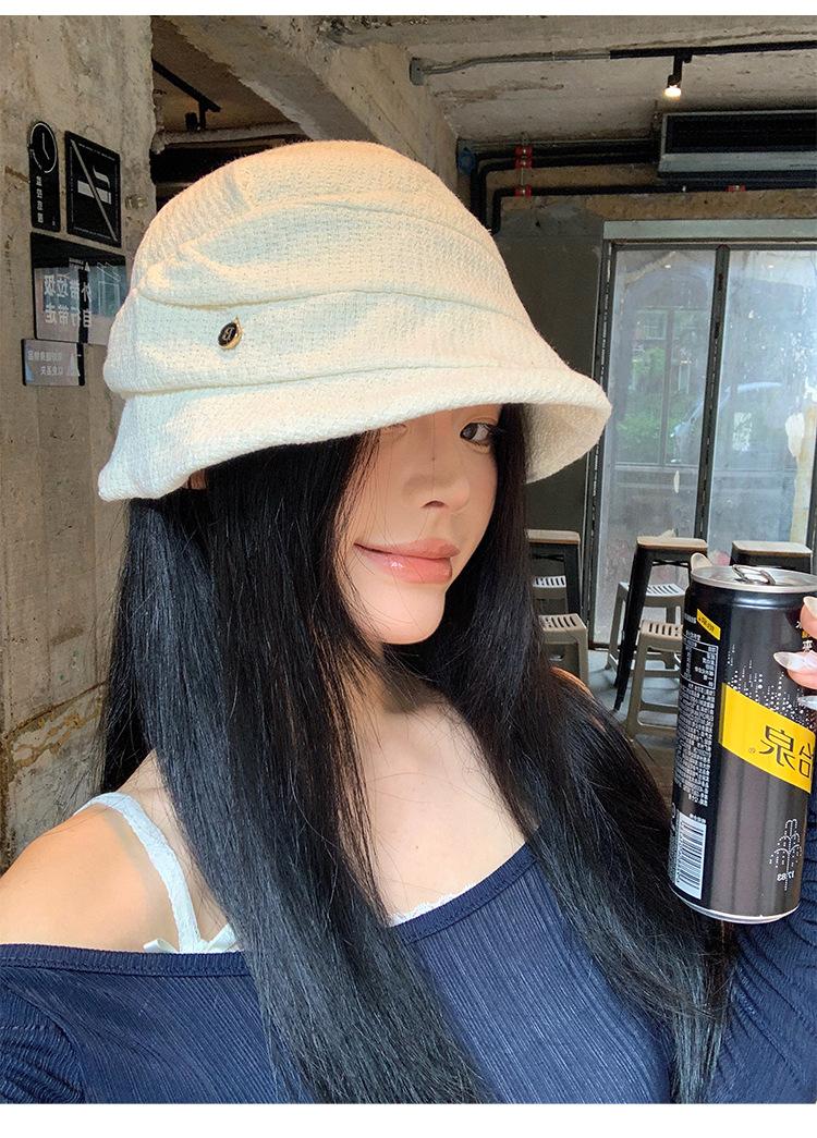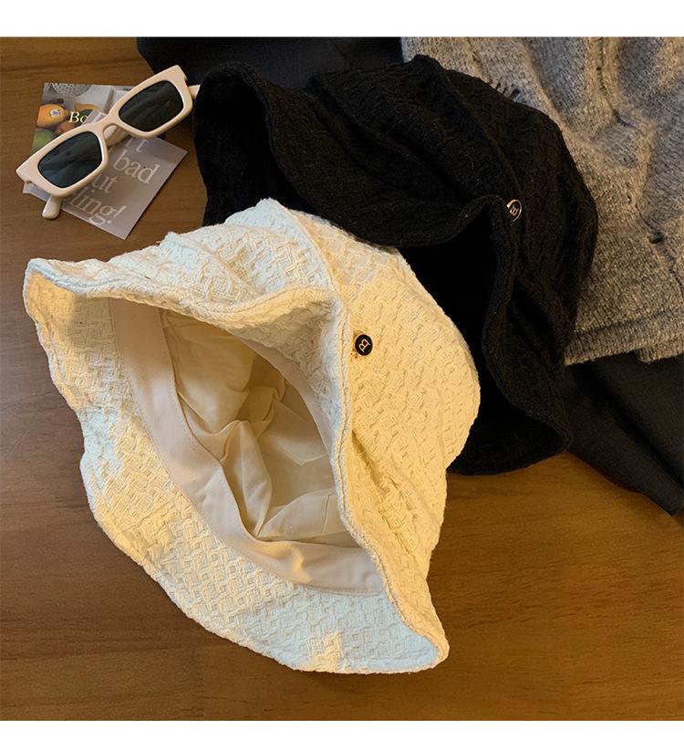 Sombrero de Pescador Blanco Simple de Moda para Combinar con Todo para Mujer Otoño e Invierno Estilo Japonés Retro Sombrero de Cubeta Ala Grande Que Muestra la Cara Pequeña Sombrero de Moda