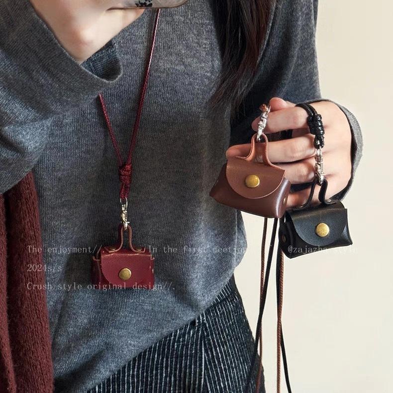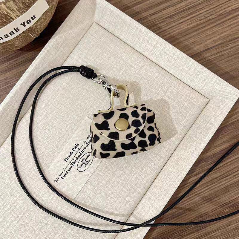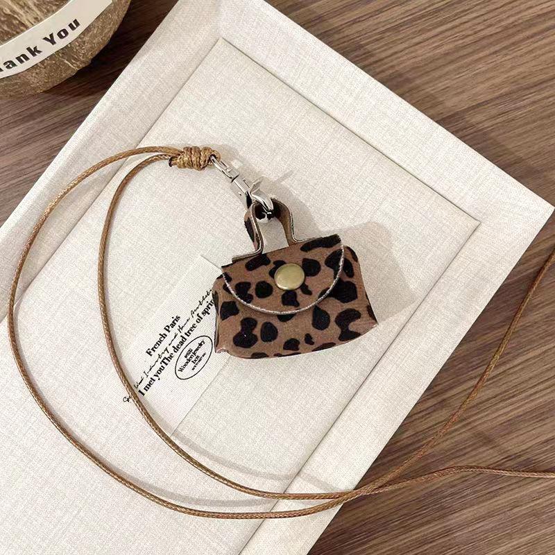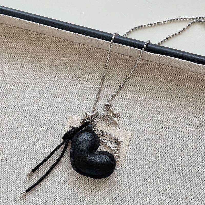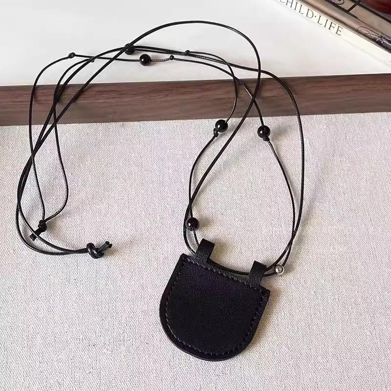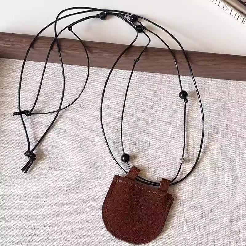 Collar con colgante de bolsa de dopamina de cuero Versátil y guardable Cadena larga para suéter Joyería de moda nicho coreana para mujer