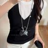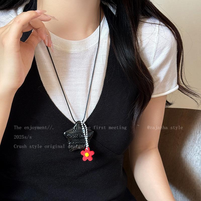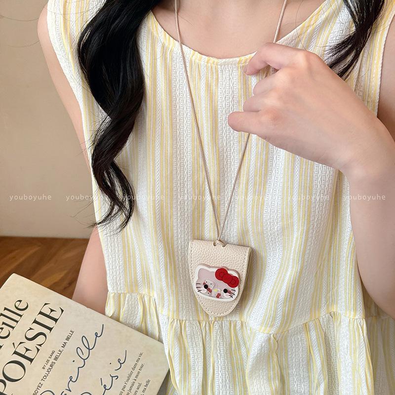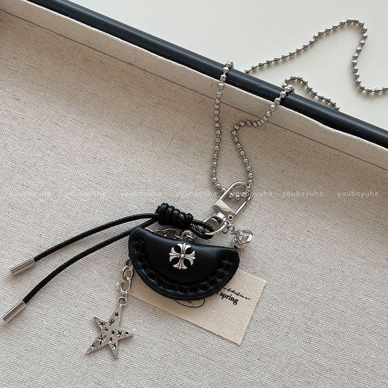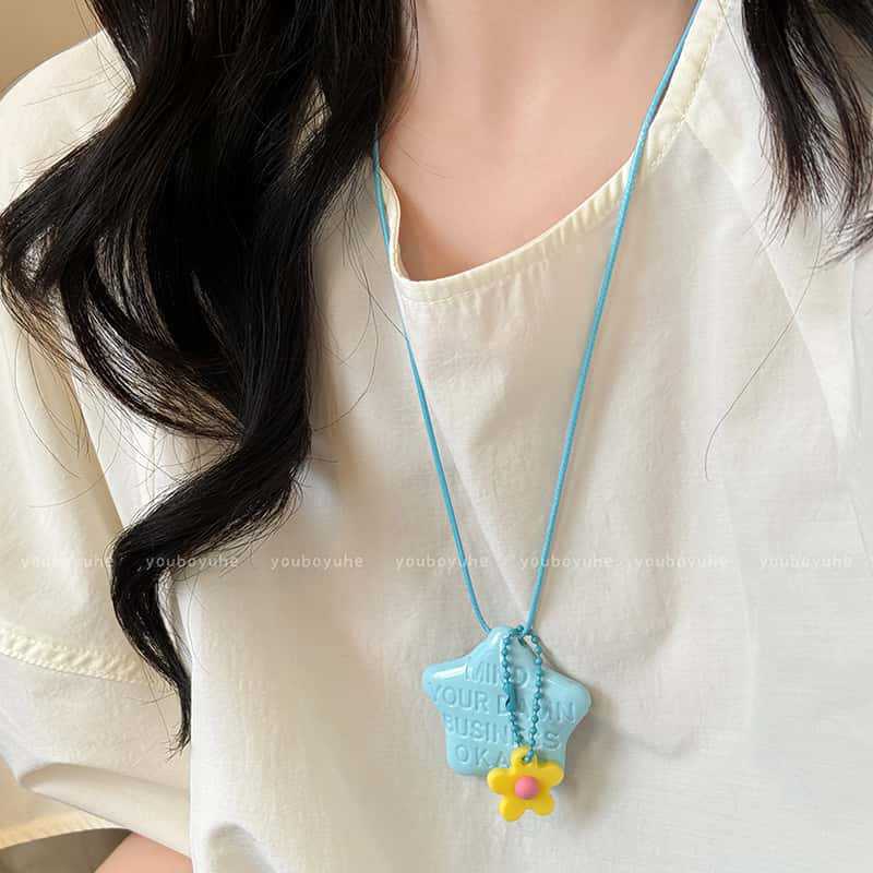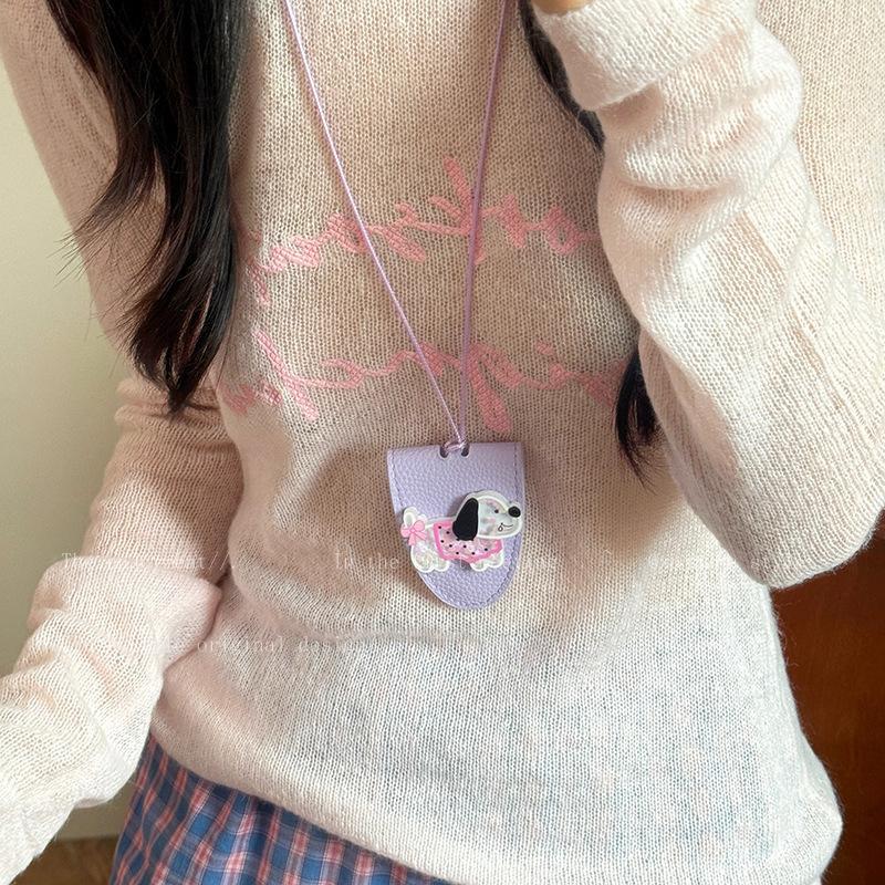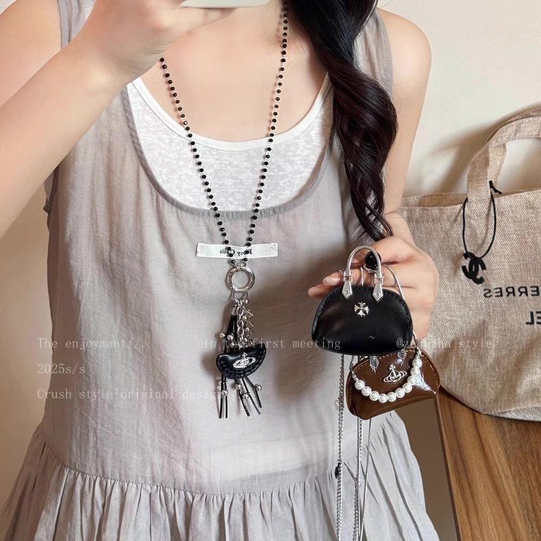 Collar con colgante de bolsa de dopamina de cuero Versátil y guardable Cadena larga para suéter Joyería de moda nicho coreana para mujer