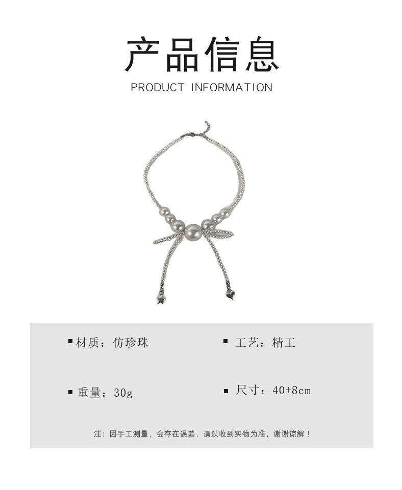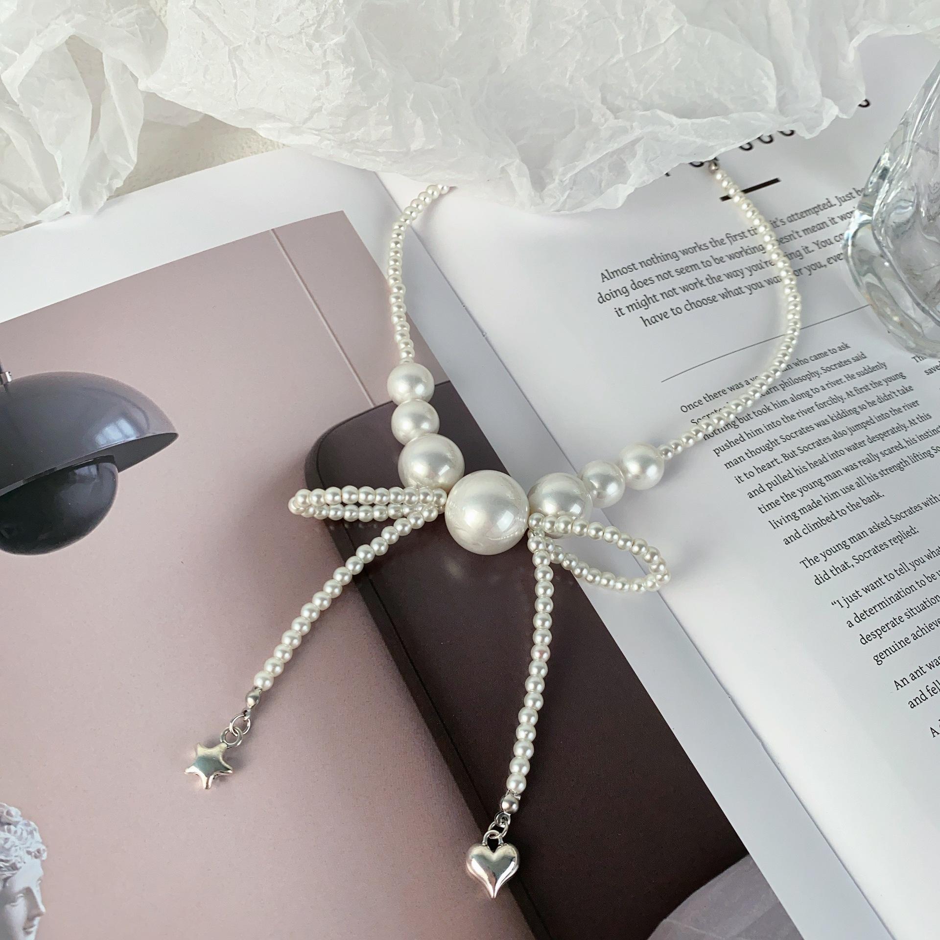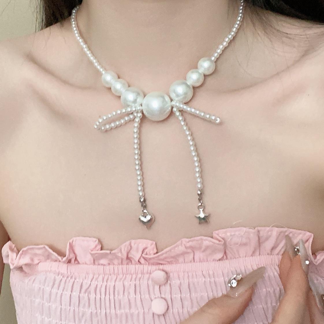 Collar de Perlas Lazo Amor Estrella Diseño de Alto Sentido Lujo Ligero Cadena Clavícula Collar de Moda Elegante Combinable