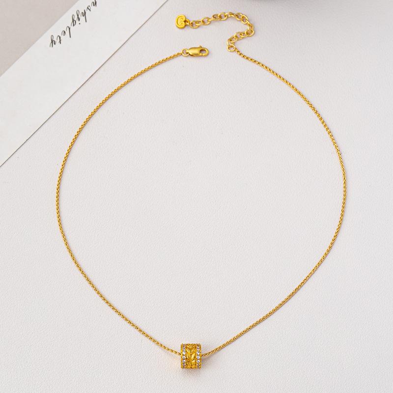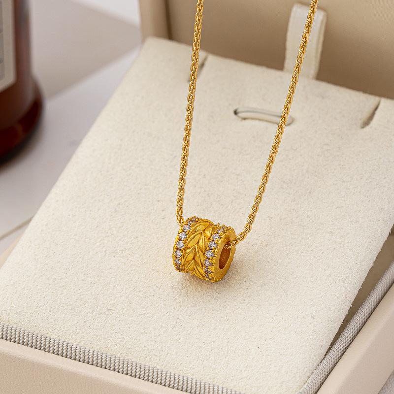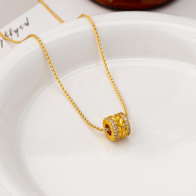 Collar con colgante versátil chapado en oro con motivos florales y de trigo, cadena clavicular de cuentas transferidas, collar de filigrana de alta gama para mujer