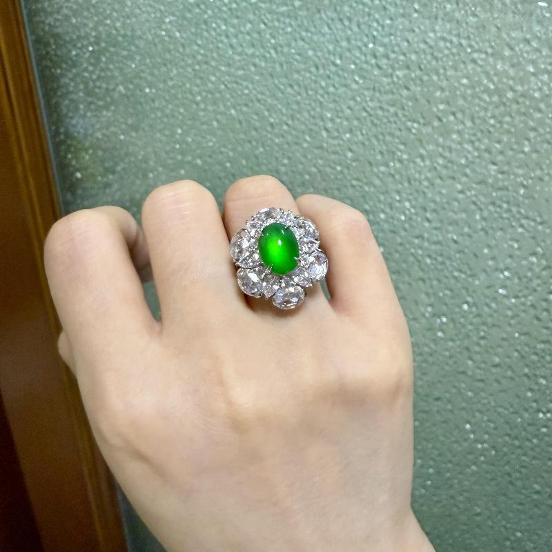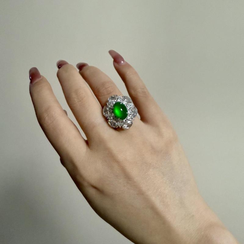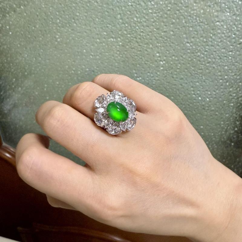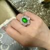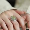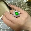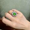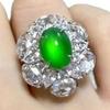 Anillo Retro de Estilo Chino Nuevo con Calcedonia Verde Copo de Nieve Flash, Diamantes Completos, Temperamento, Estilo Nacional, Temperamento, Lujo, Anillo de Corte