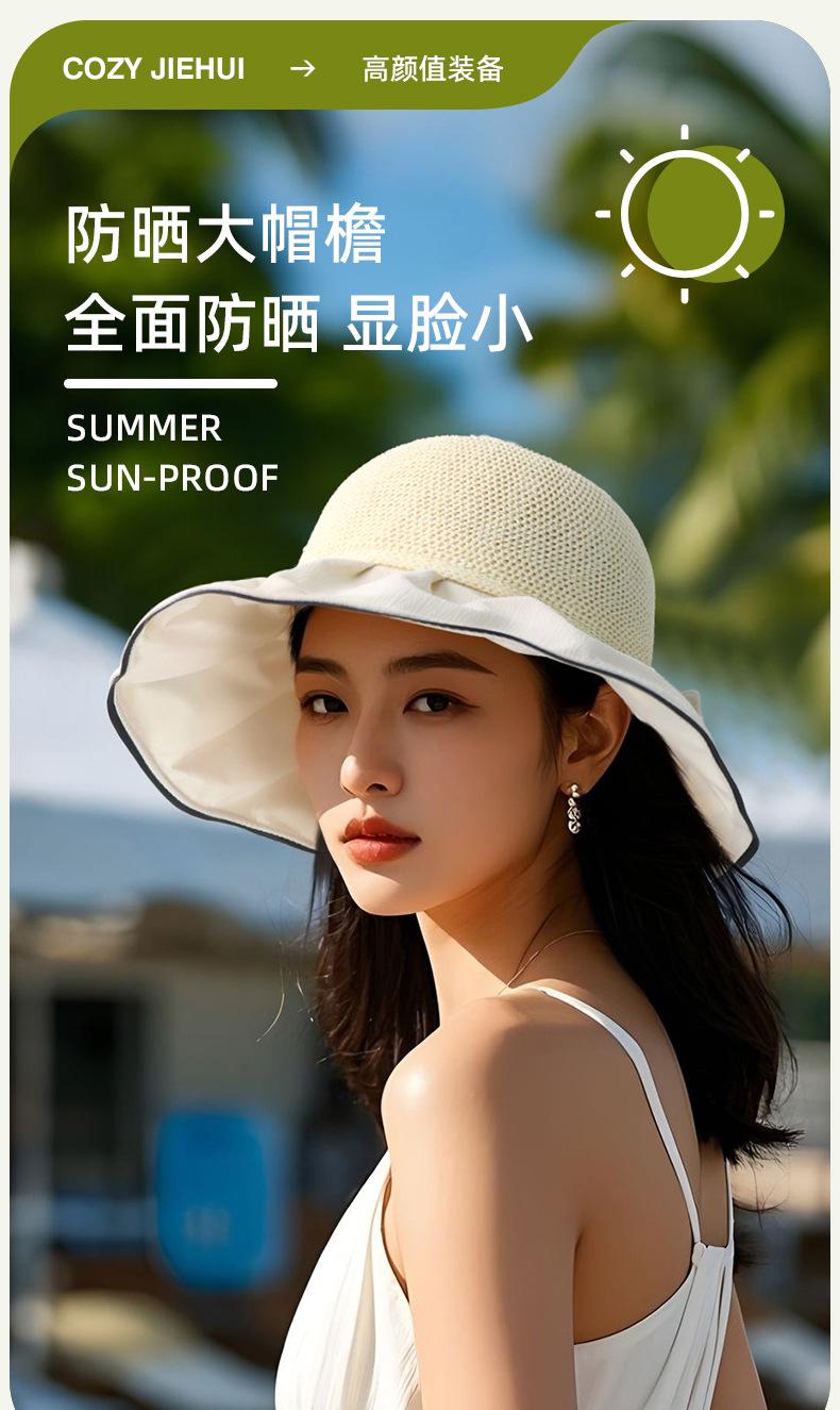 Nuevo Sombrero Portátil con Lazo Sombrero Plegable para Mujer Sombrero Parasol de Playa Transpirable Combinable Sombrero de Pescador