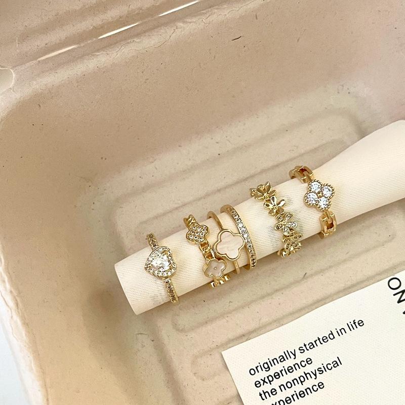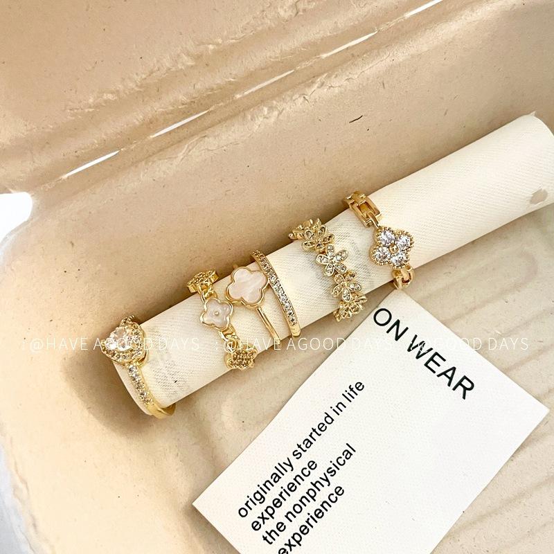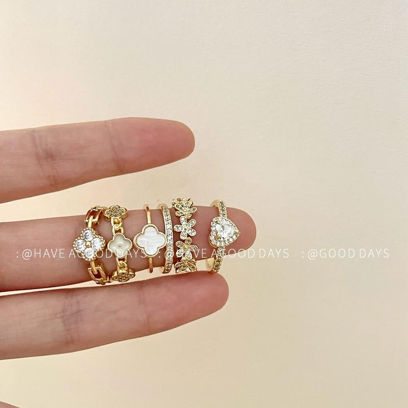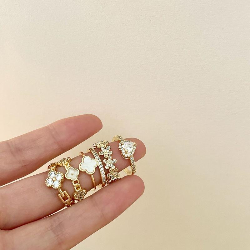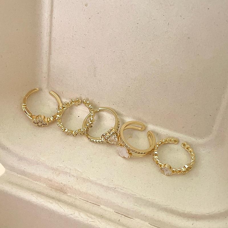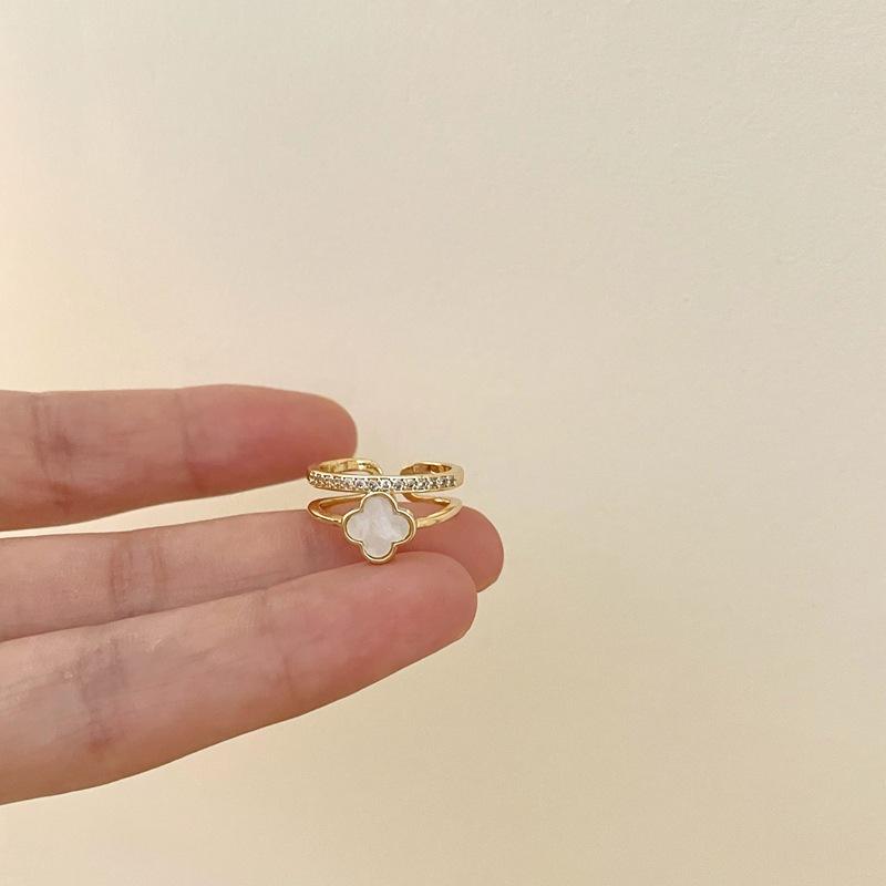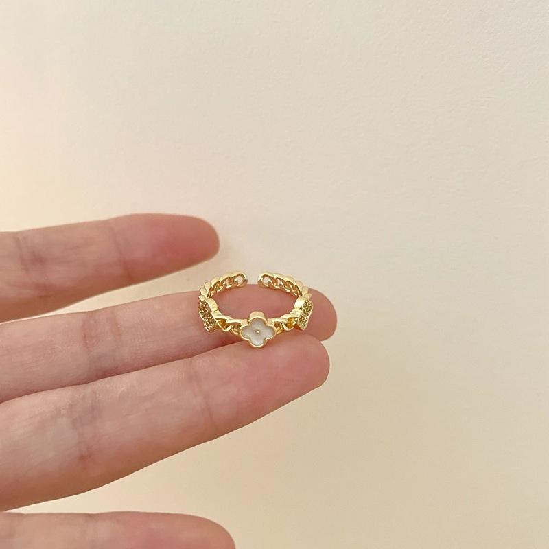 Anillo Abierto de Flor de Concha Dulce de Moda Diseño Nicho Moda Elegante Exquisito Versátil Anillo para Dedo Índice para Mujeres