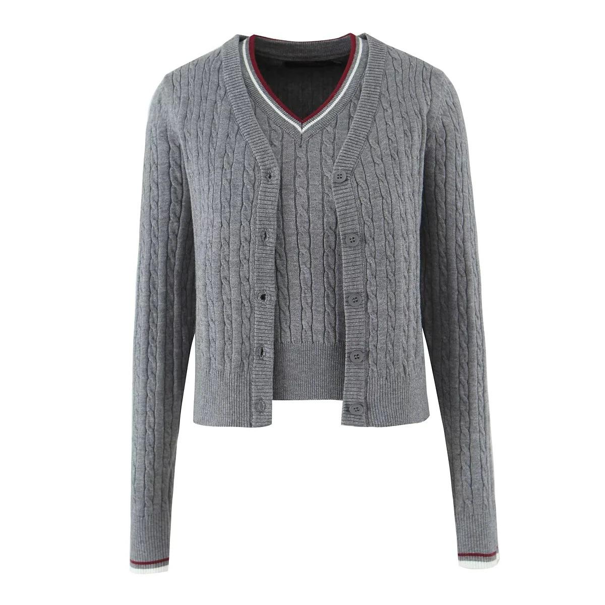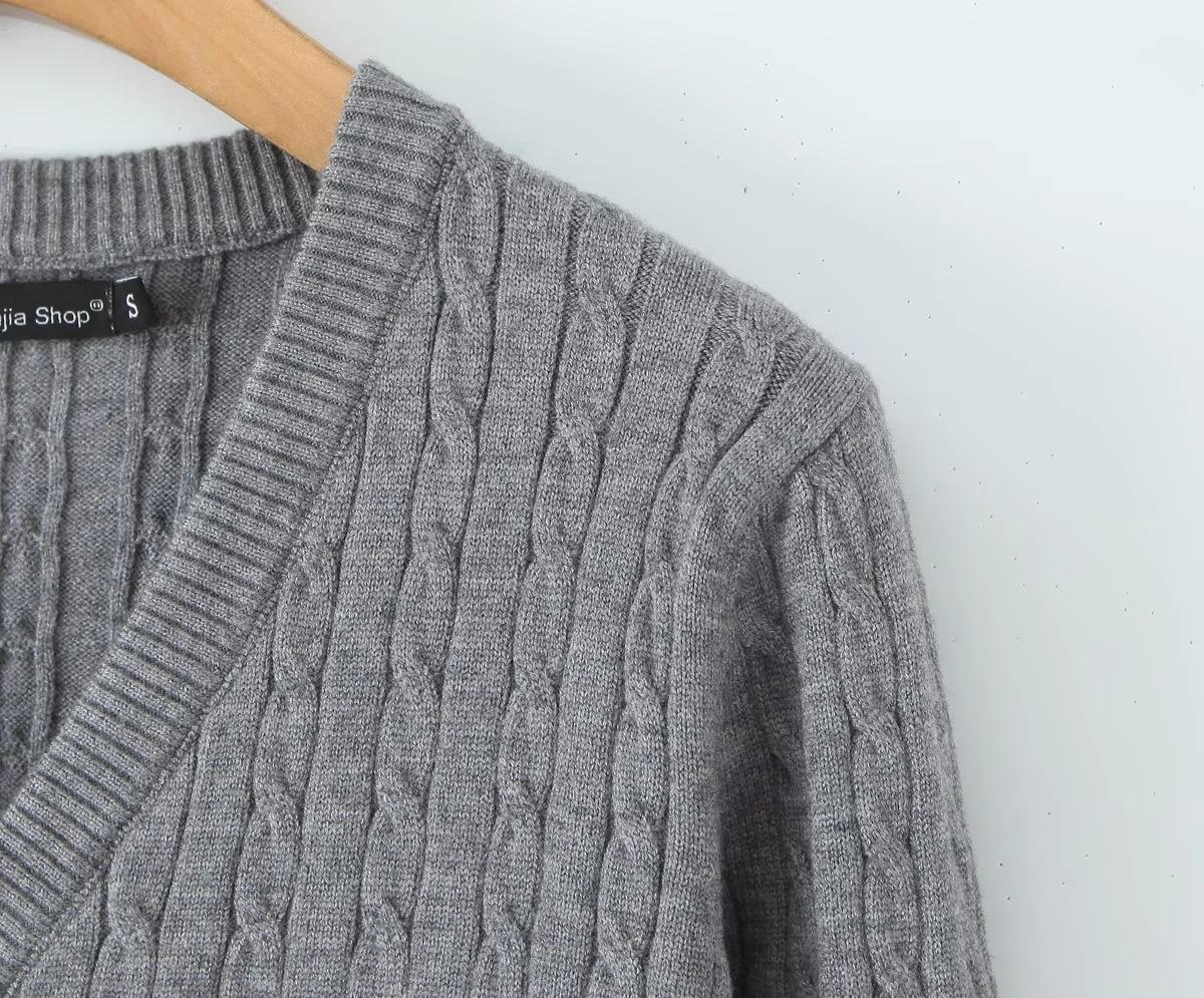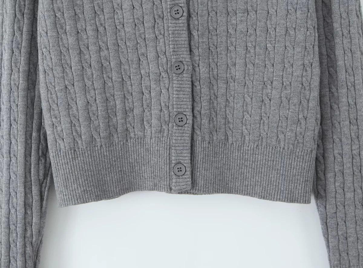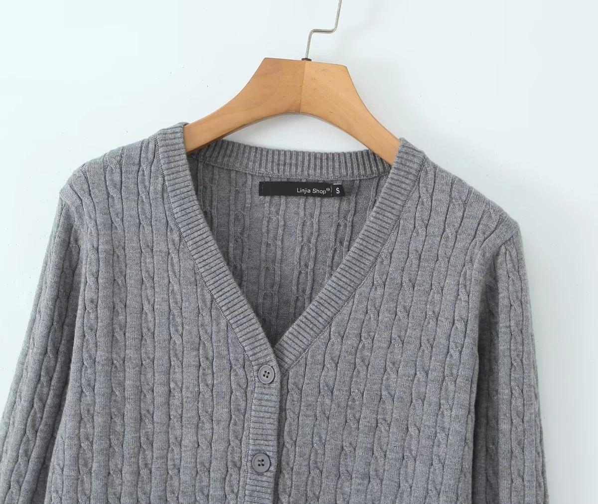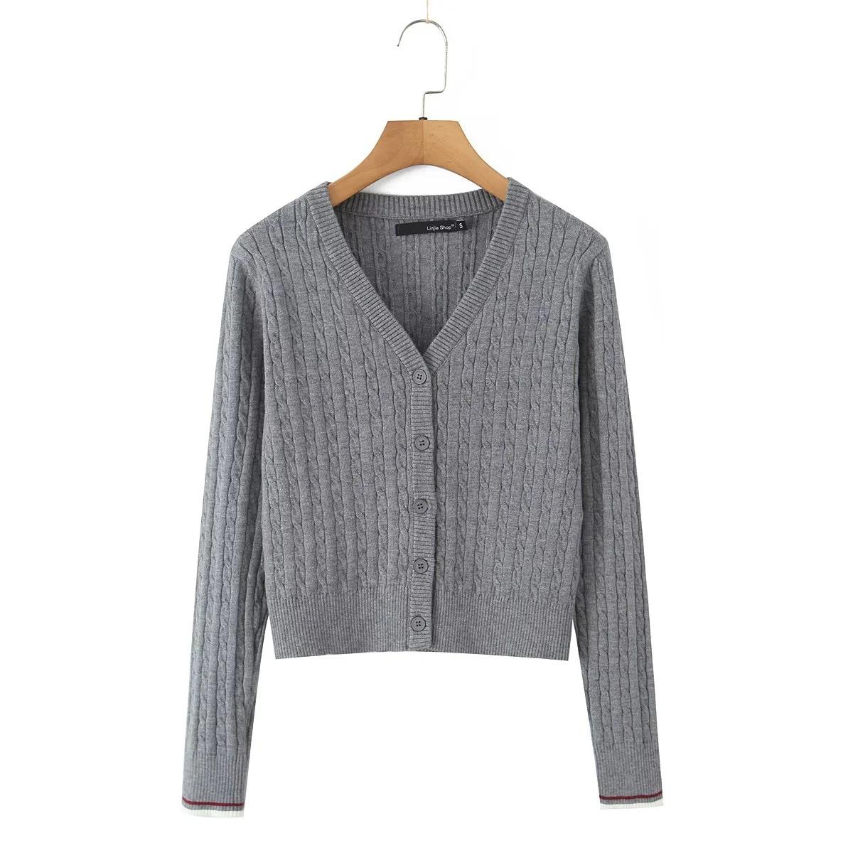 Cárdigan de Punto Gris con Cuello en V para Mujer Estilo Primavera y Otoño 2025 Acanalado Suave y Chic Top Versátil Abrigo Suéter