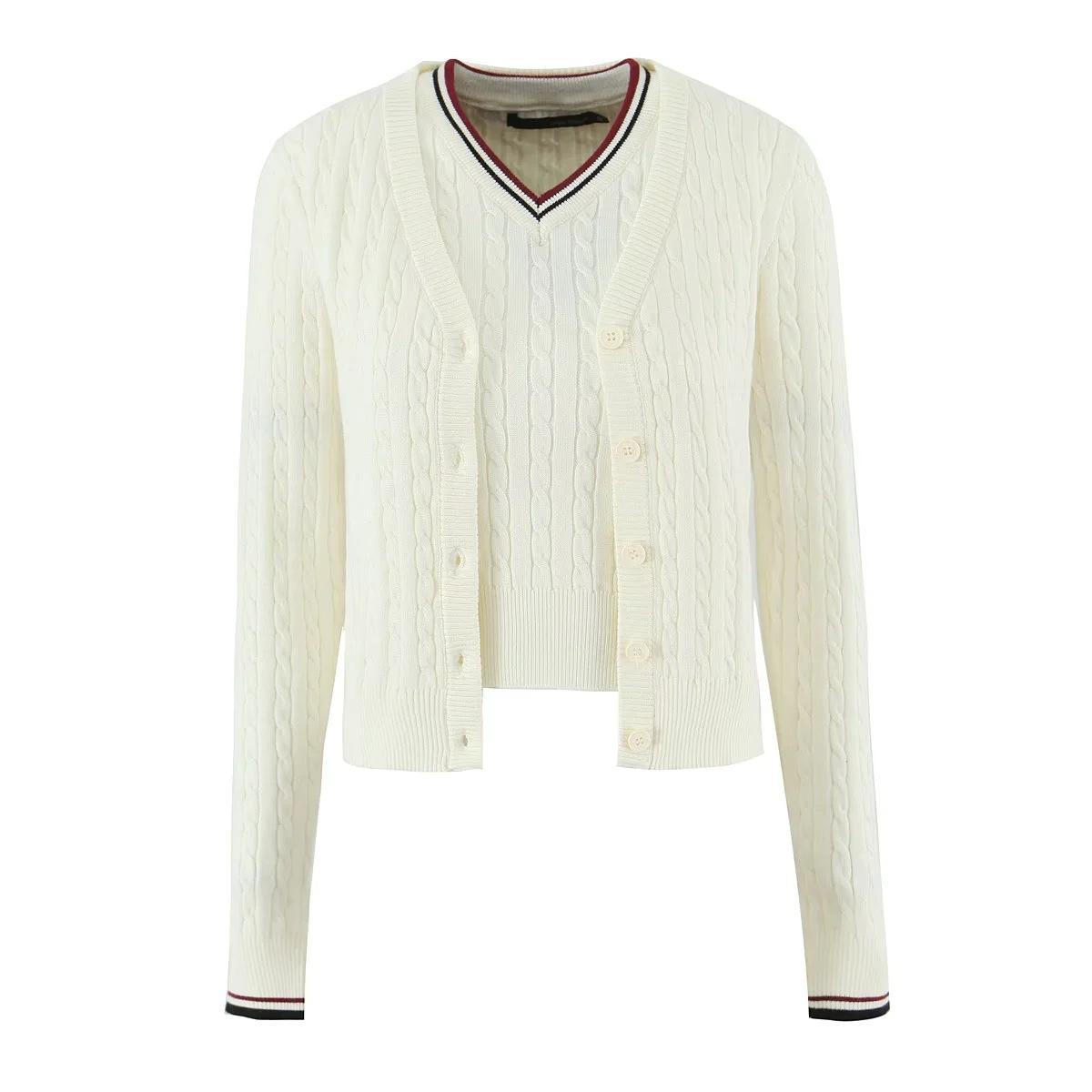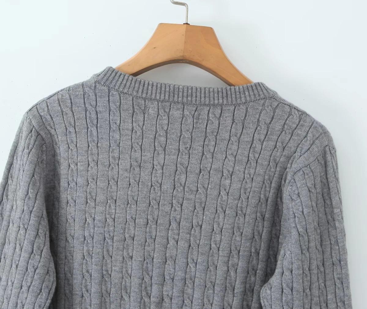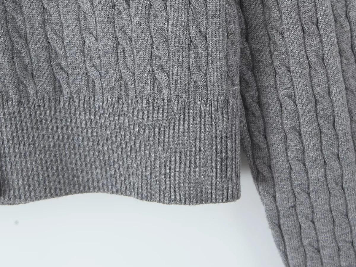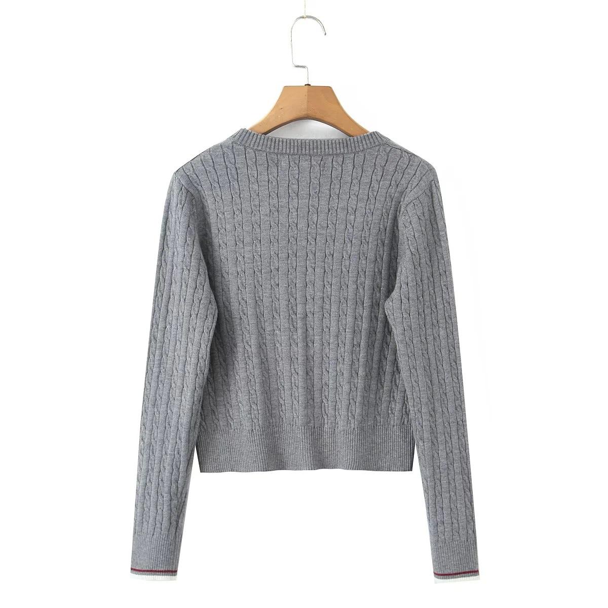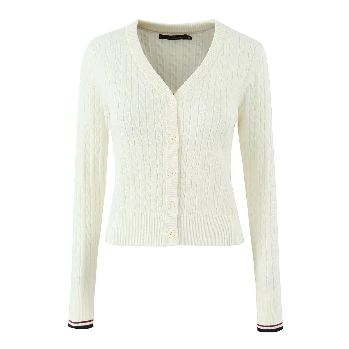 Cárdigan de Punto Gris con Cuello en V para Mujer Estilo Primavera y Otoño 2025 Acanalado Suave y Chic Top Versátil Abrigo Suéter
