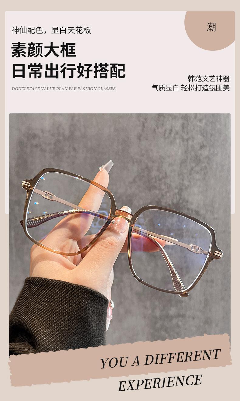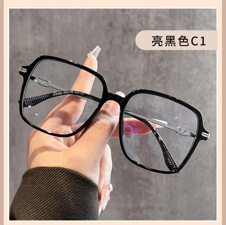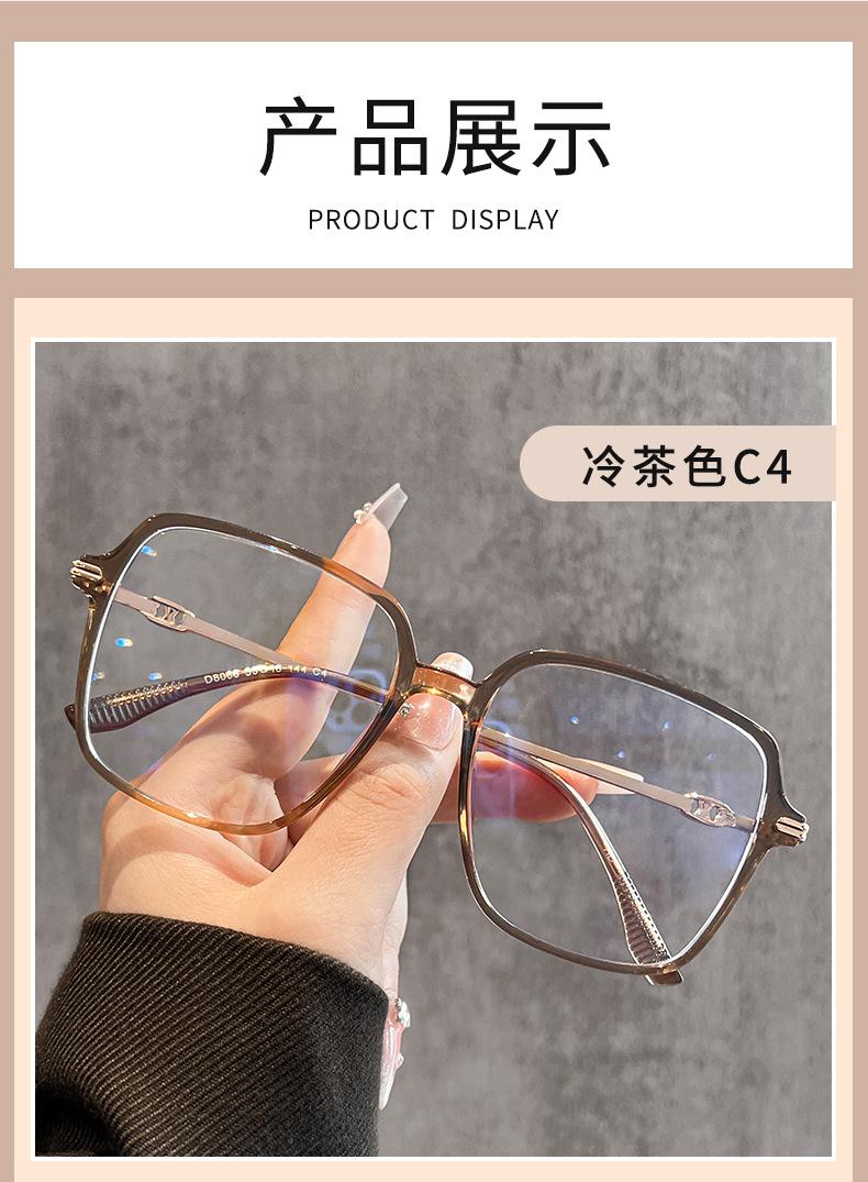 Monturas de Gafas para Mujer Color Té Frío, Montura Grande, Efecto Adelgazante, 8066 Gafas Lisas, Miopía, Sensación de Alta Gama, Gafas Profesionales de Danyang