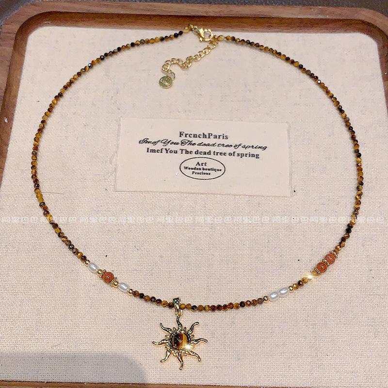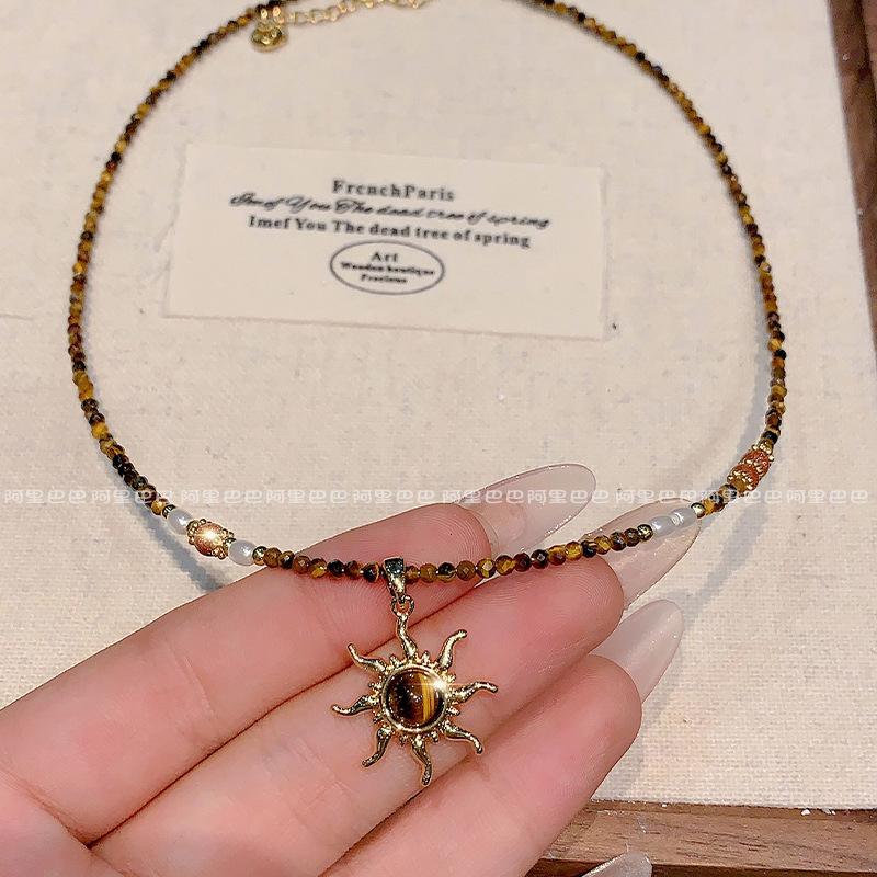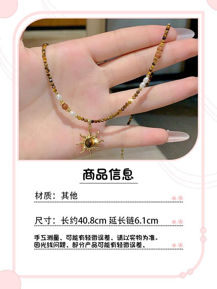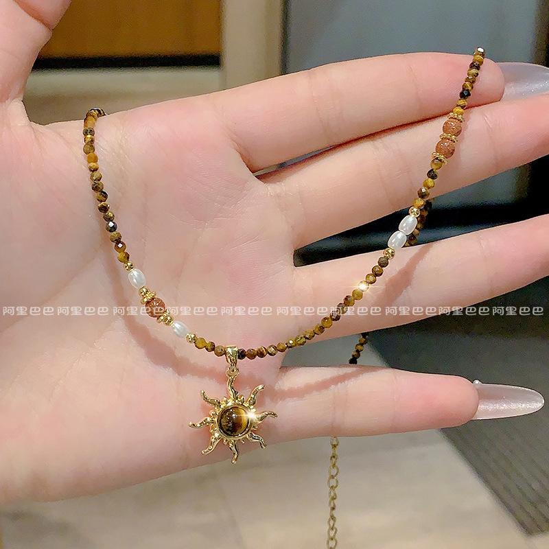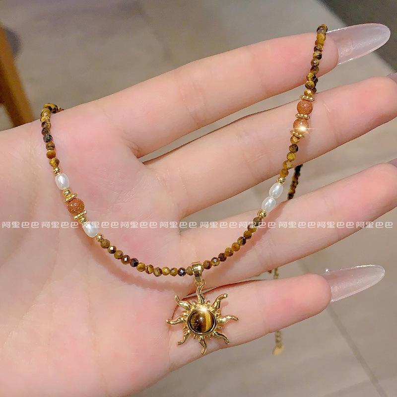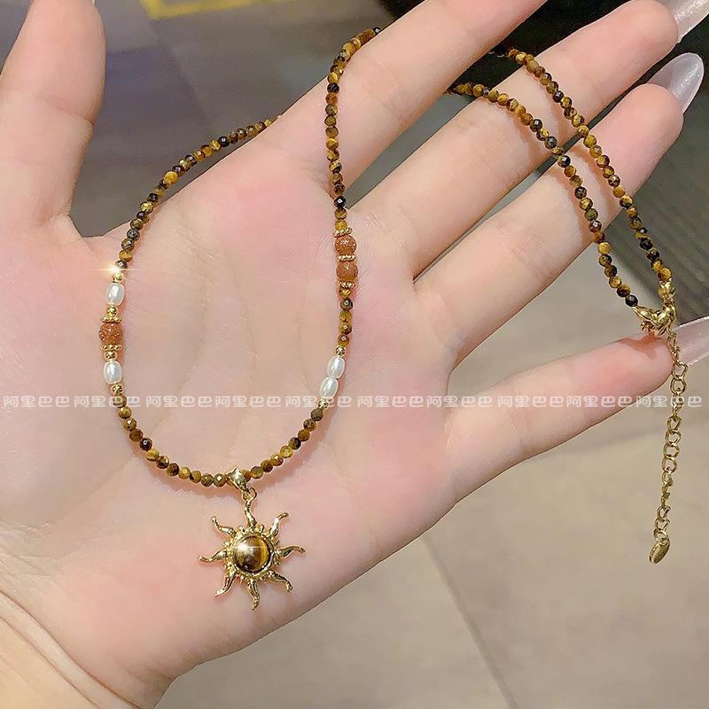 Personalidad de alta gama nuevo collar colgante de estrella de girasol dorado con cuentas de piedra cadena gargantilla nicho retro cadena clavicular