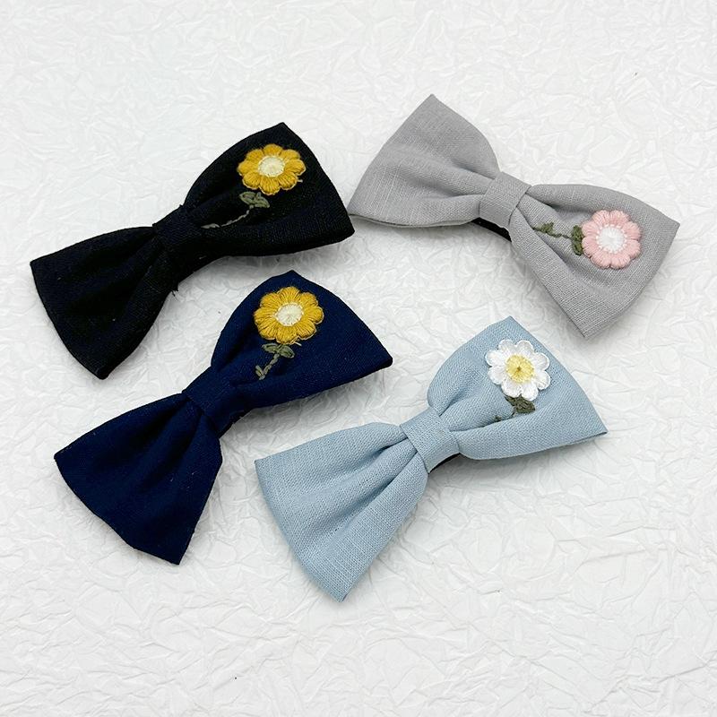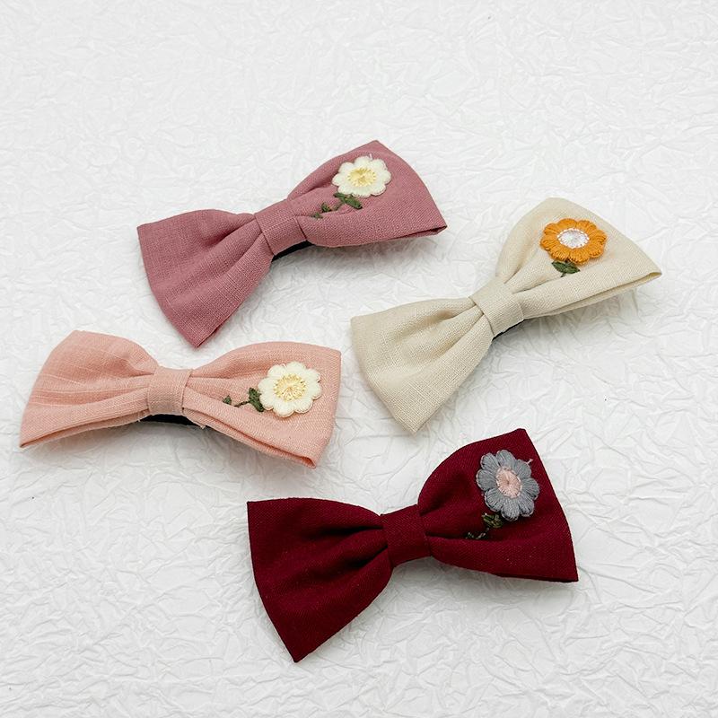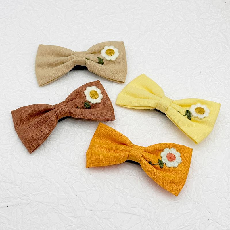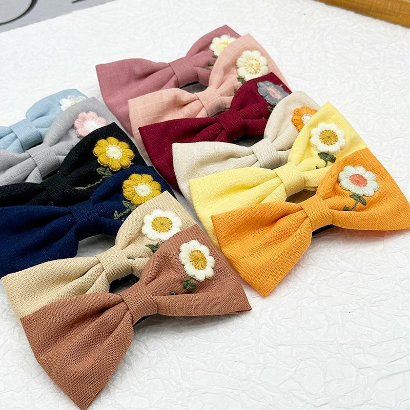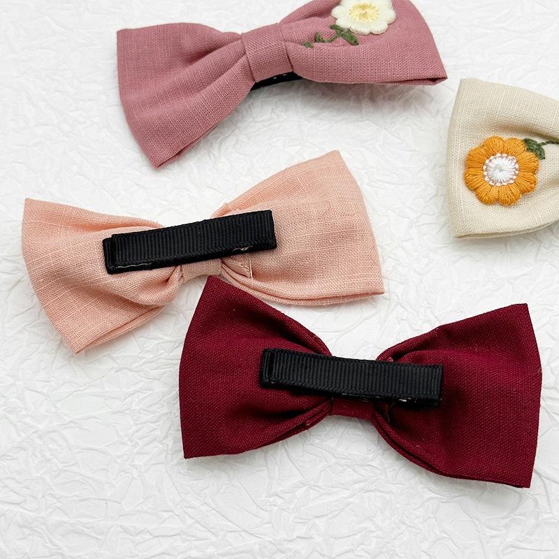 Pinza para el cabello de lazo de satén texturizado de color puro personalizado Lindo accesorio para el cabello bordado de niña Adorno para el cabello de tela para niños