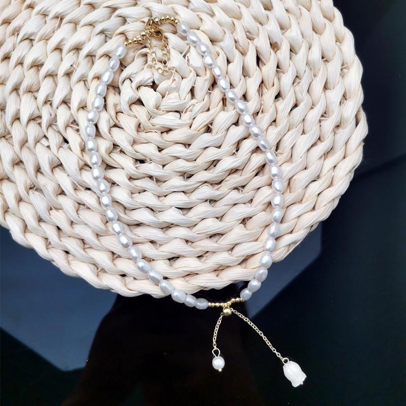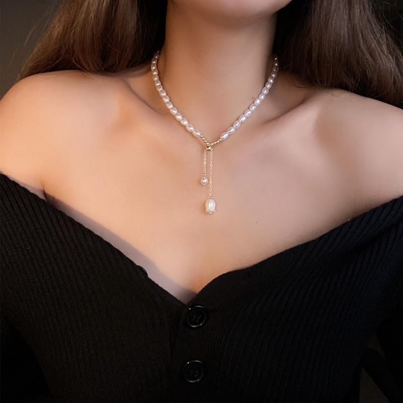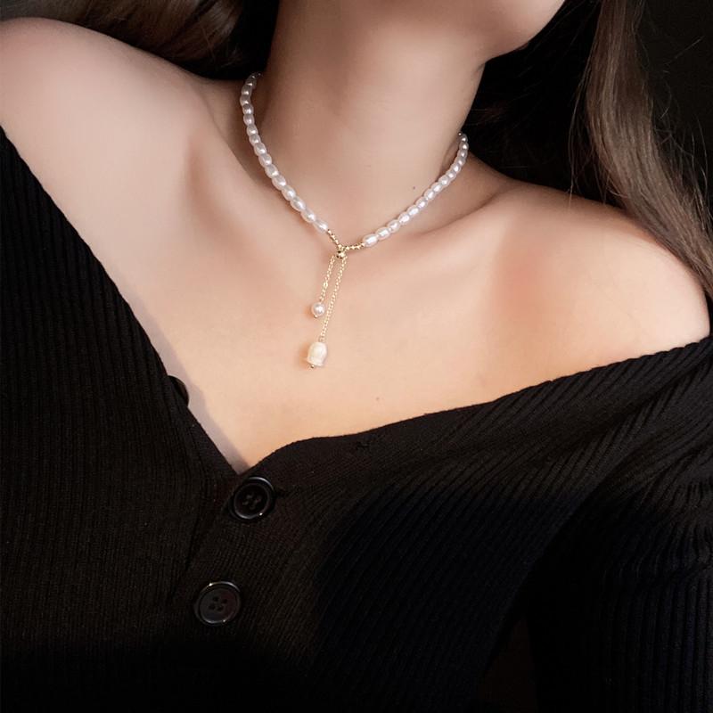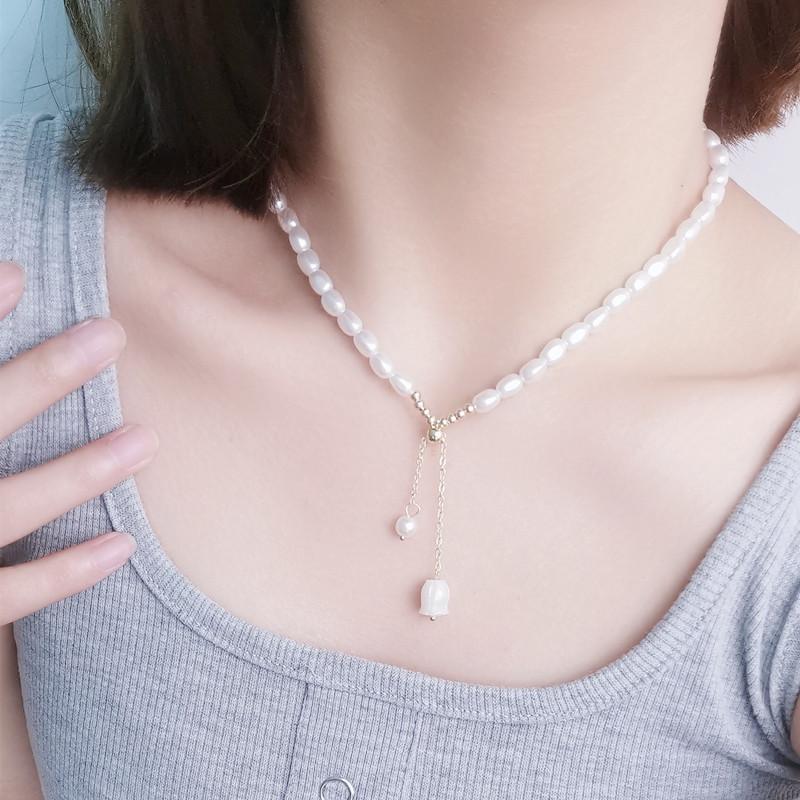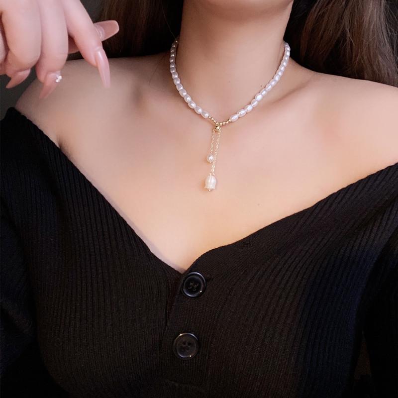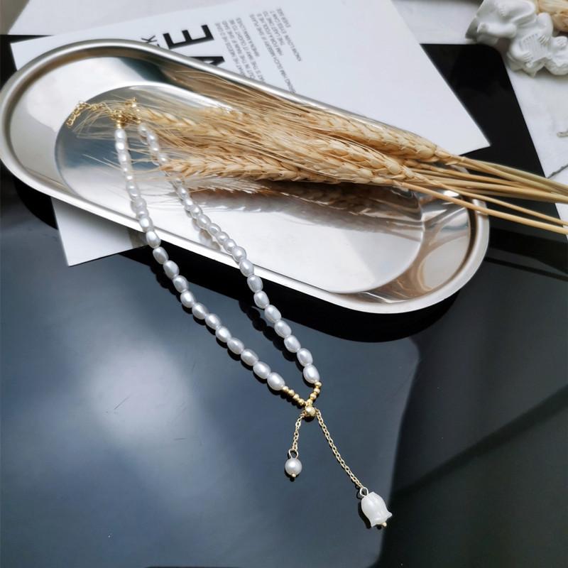 Colgante Lirio de los Valles Colgante Único Collar de Perlas de Agua Dulce Collar Temperamento Moderno Cadena Clavícula