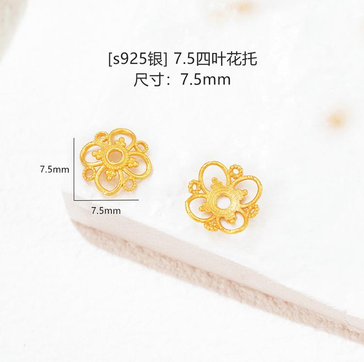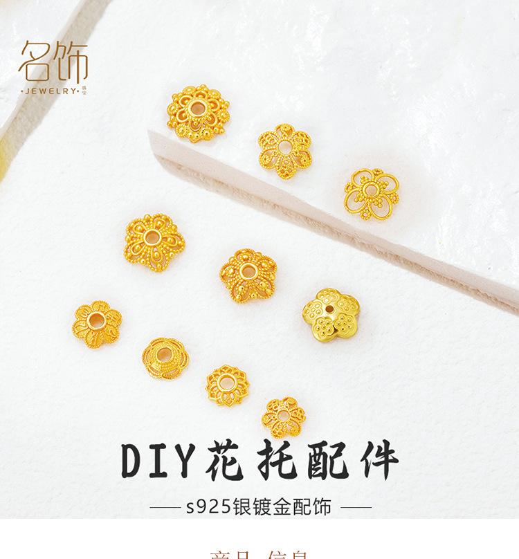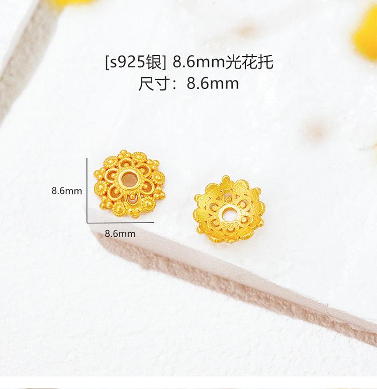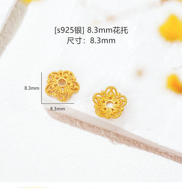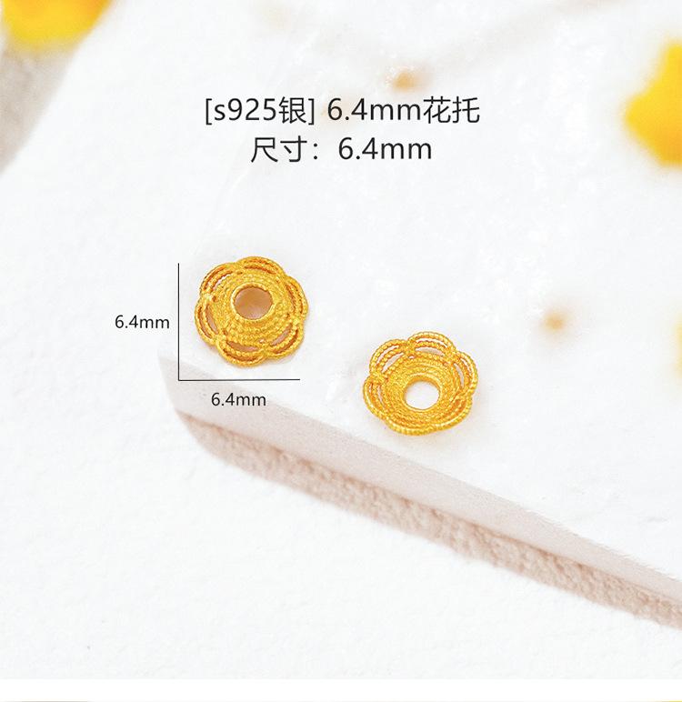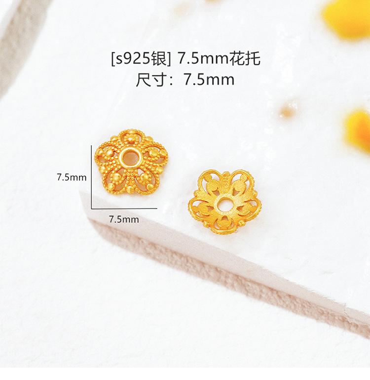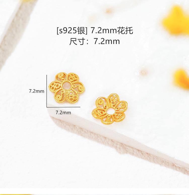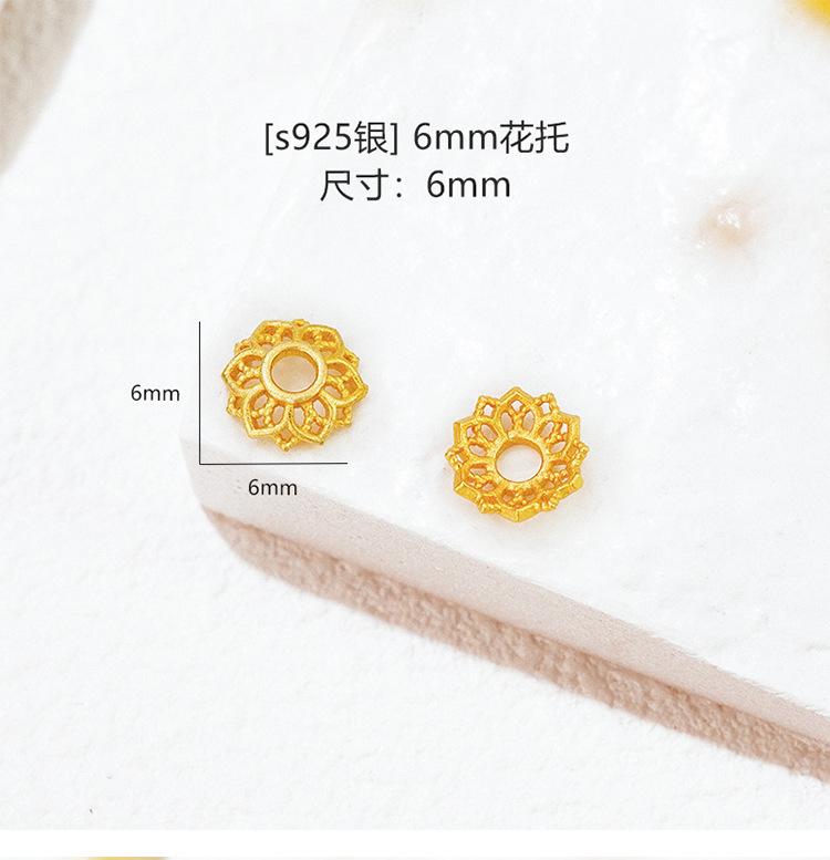 Plata Esterlina S925 Chapada en Oro Calado con Lentejuelas Soporte de Cuentas Filigrana Capuchón de Cuentas Espaciador Accesorios de Joyería DIY