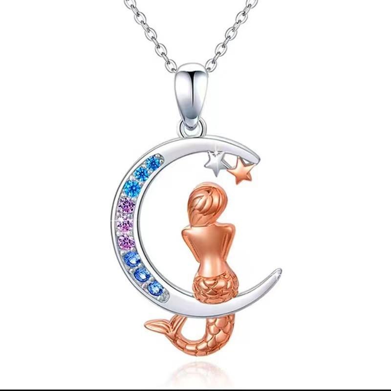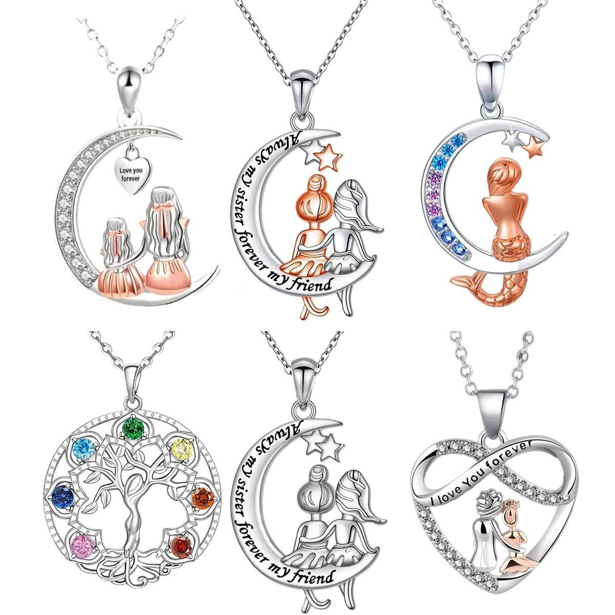 Collar de Media Luna con Colgante de Árbol de la Vida con Forma de Corazón de Venta Caliente Transfronteriza Europea y Americana Regalo para el Día de la Madre Mujeres Colgante de Sol Constelación