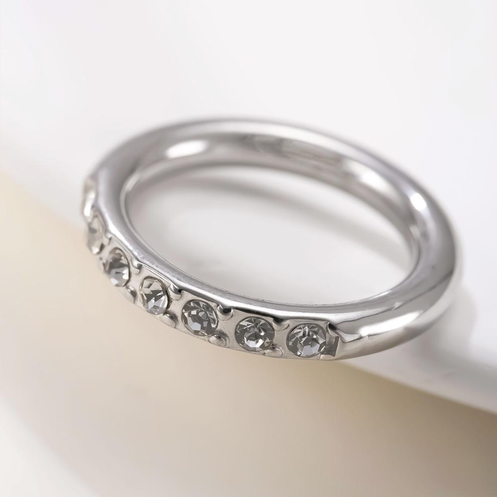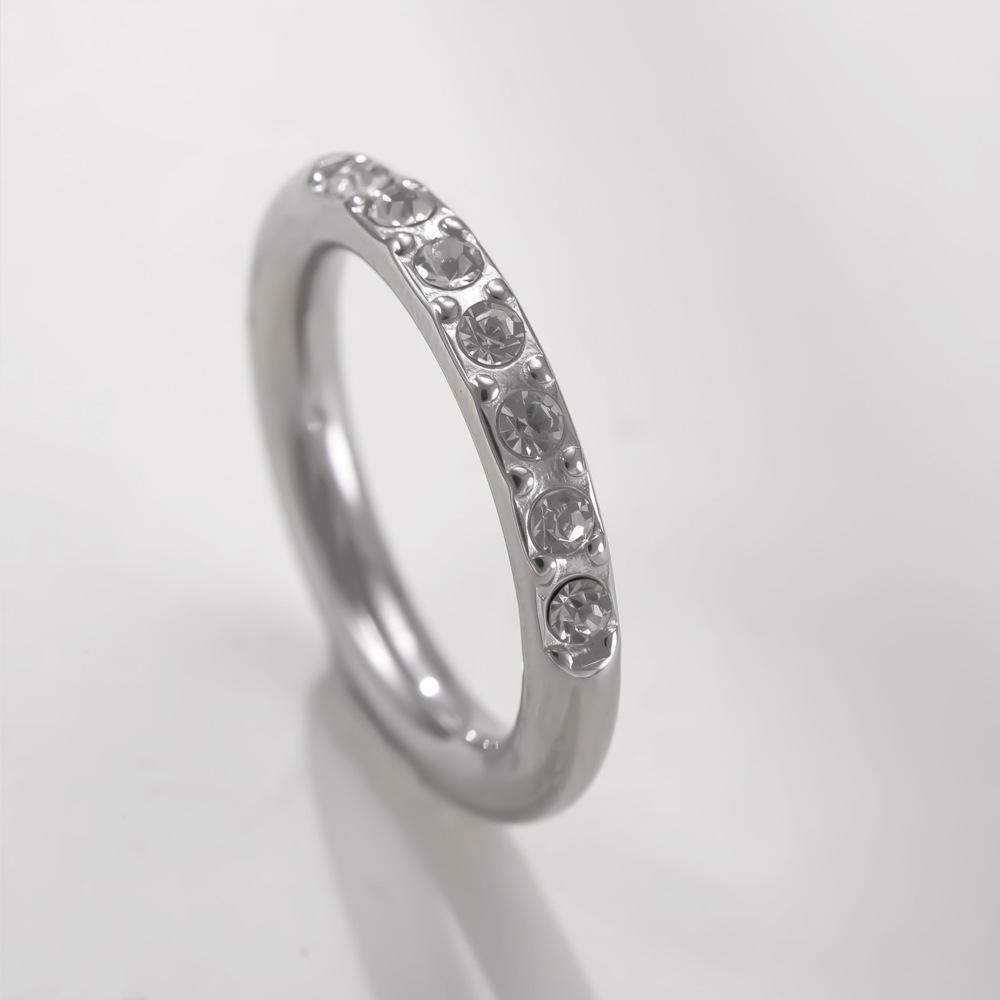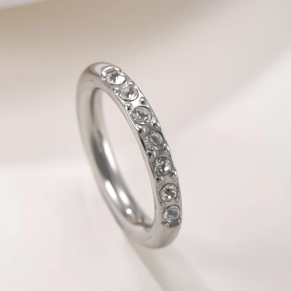 Anillo europeo y americano de acero inoxidable transfronterizo estilo de lujo ligero anillo de banda lisa para mujer anillo engastado con diamantes que no se desvanece joyería de acero de titanio al por mayor