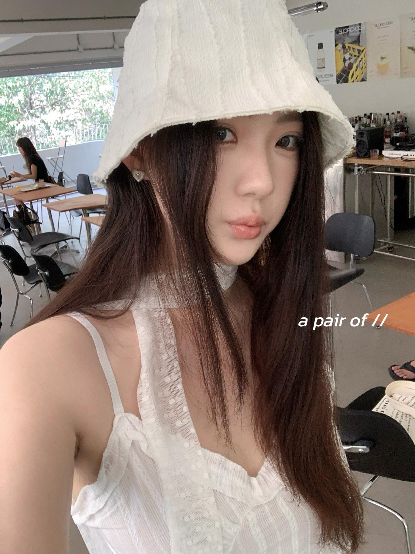 Raw edge pleated bucket hat-white