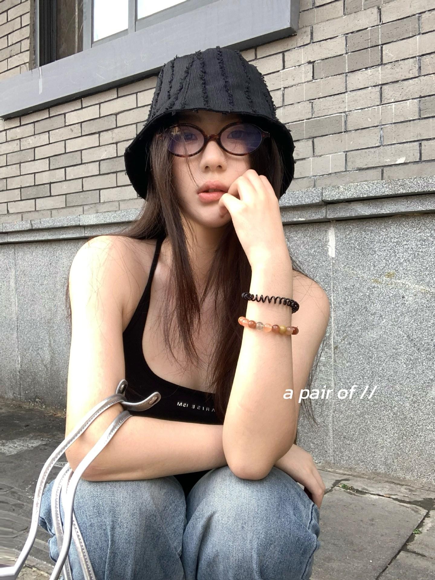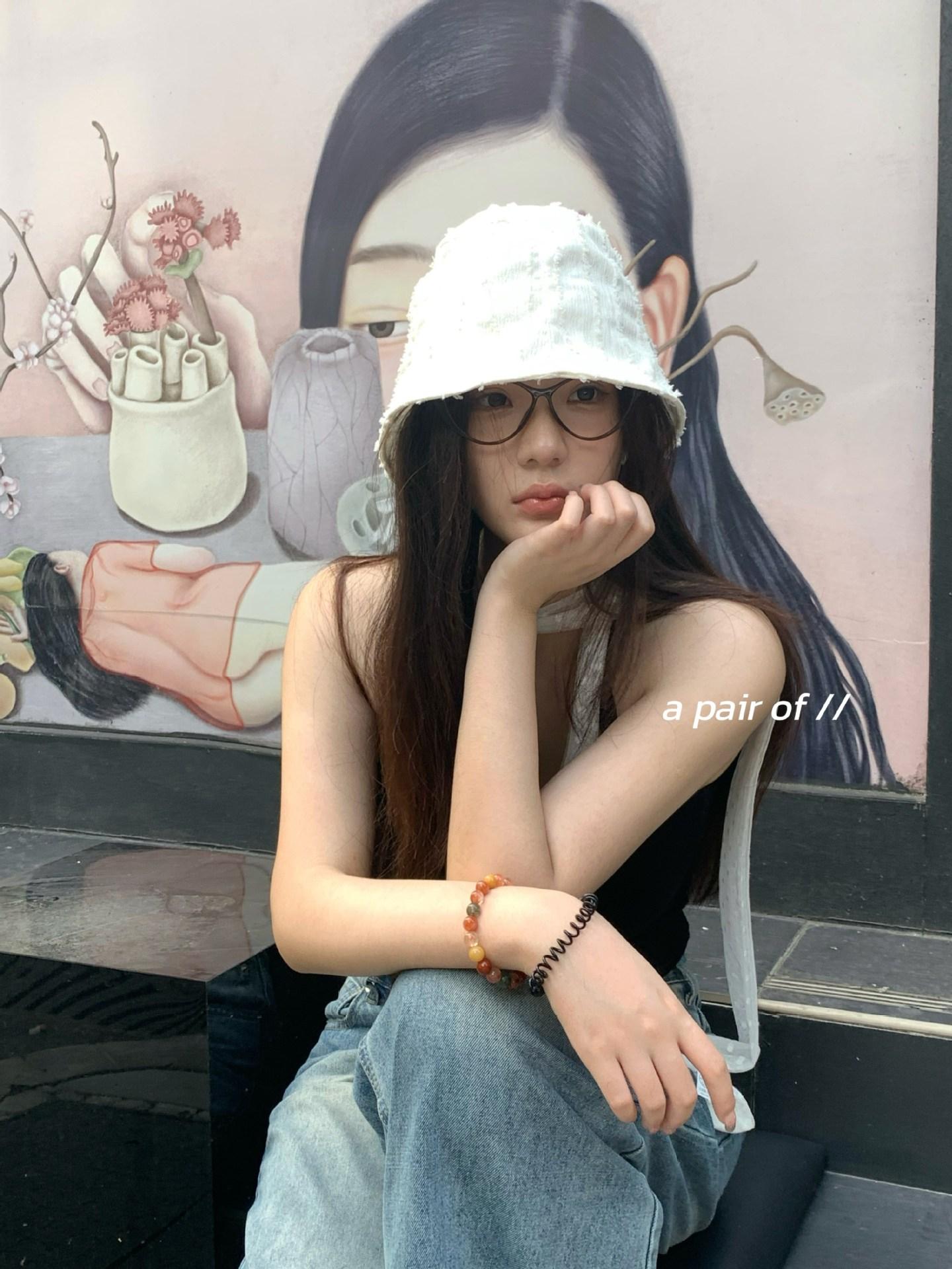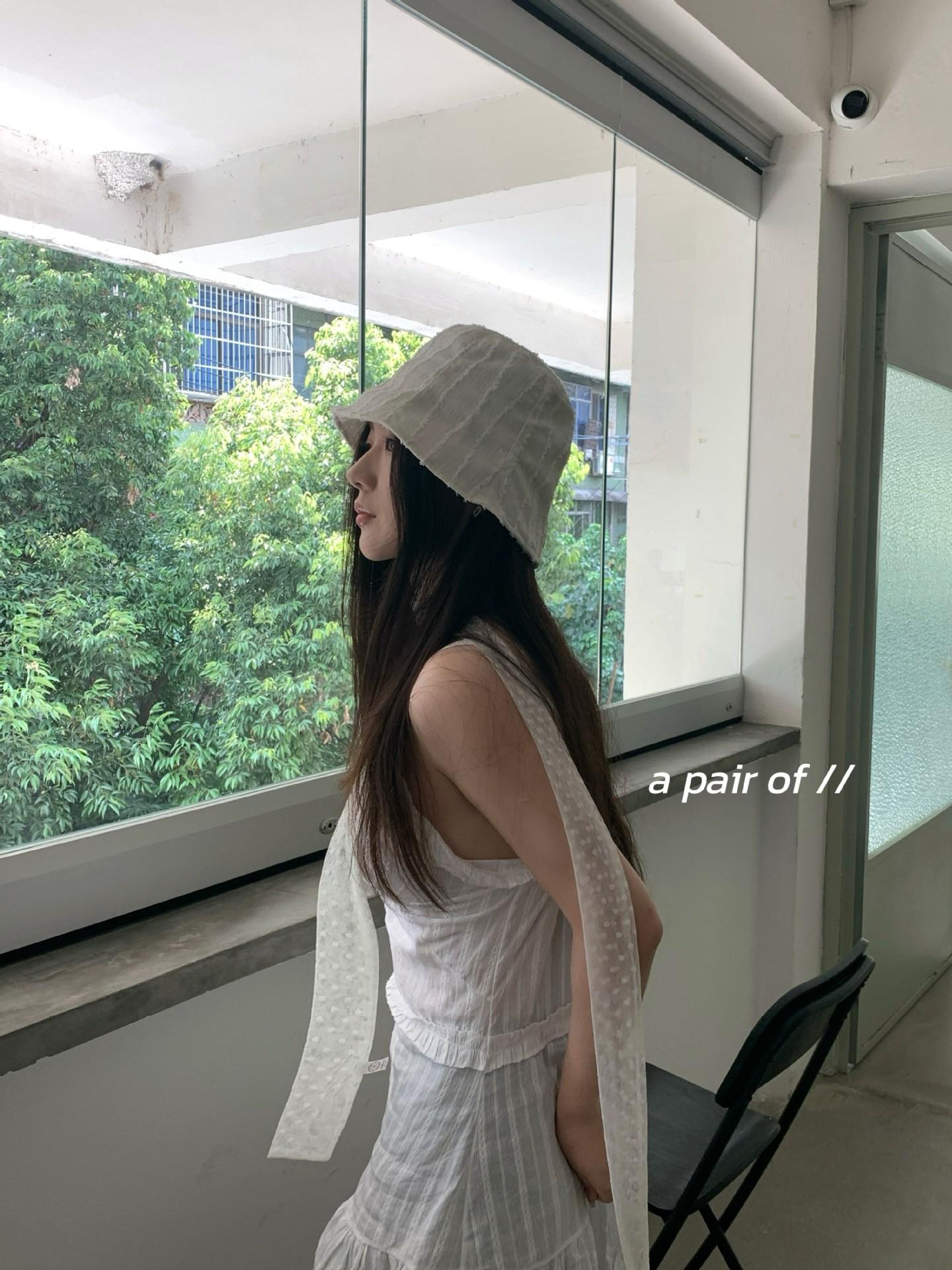 Raw edge pleated bucket hat-white, Raw edge pleated bucket hat-black
