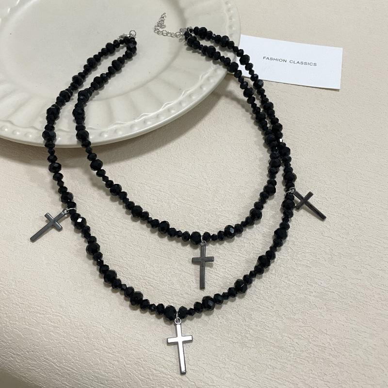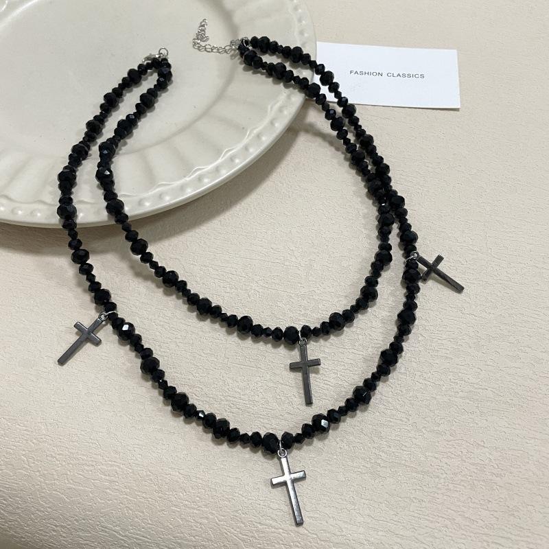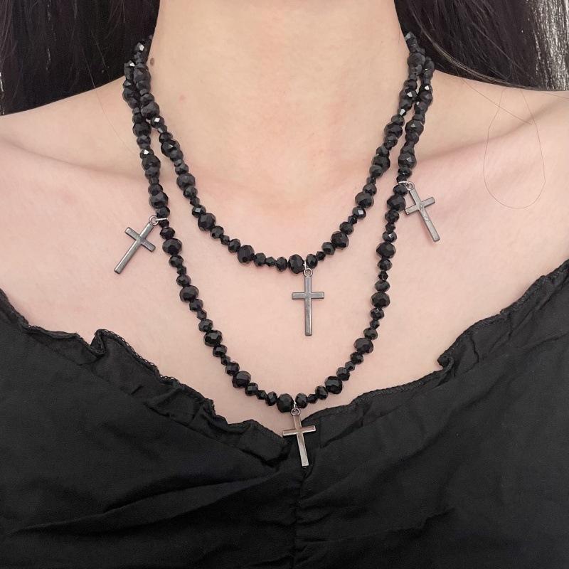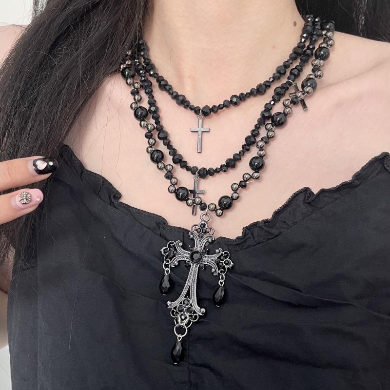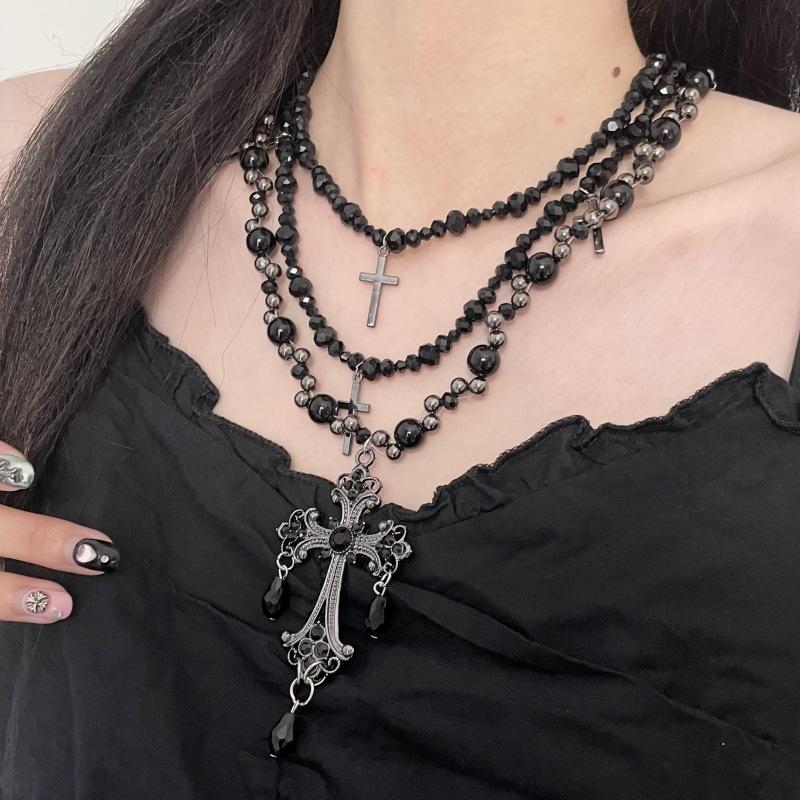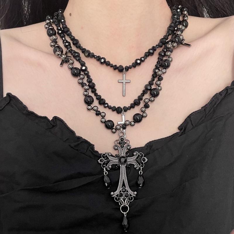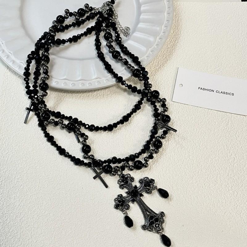 Compra D Dulce Fresco Sexy Cruz Borla Cuentas Cadena Clavícula Multicapa Elegante Europeo y Americano Punk Hip-Hop Collar de Alta Gama al por mayor en Joom.pro