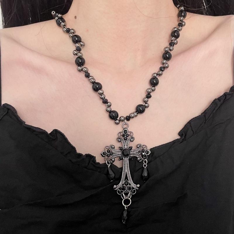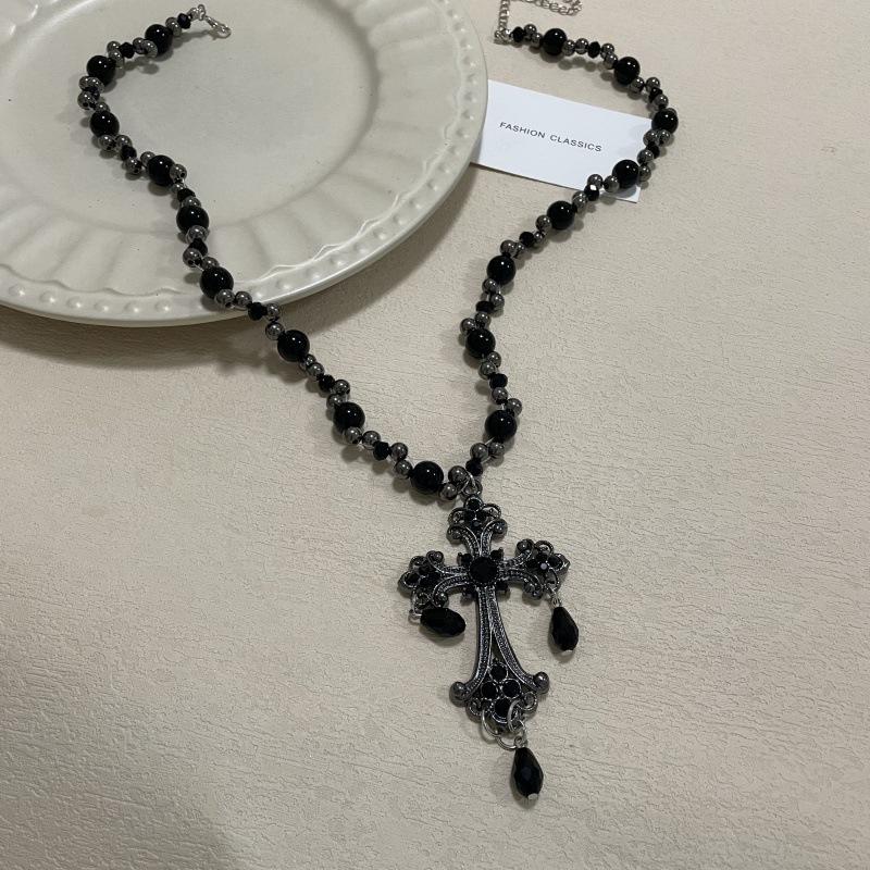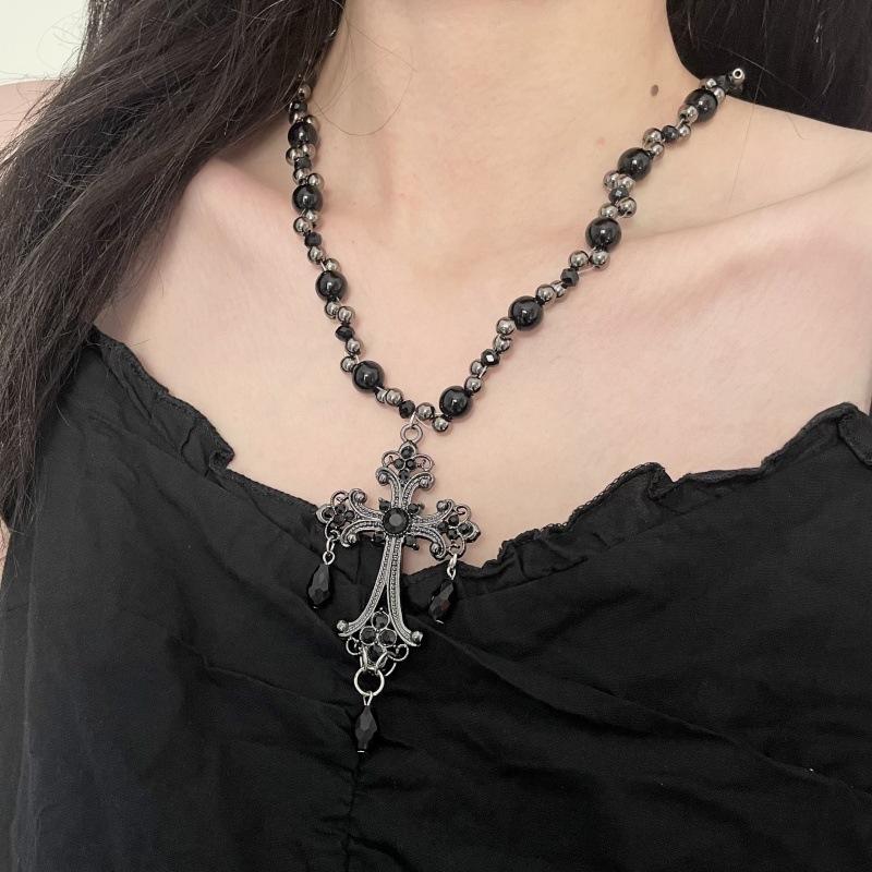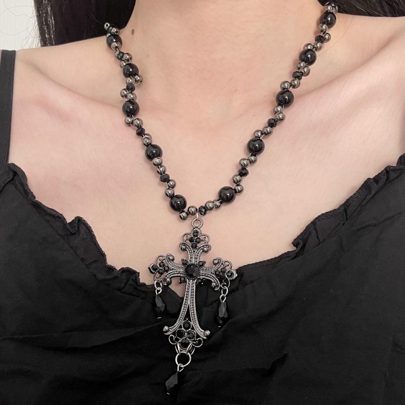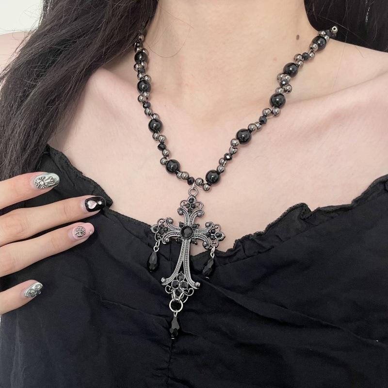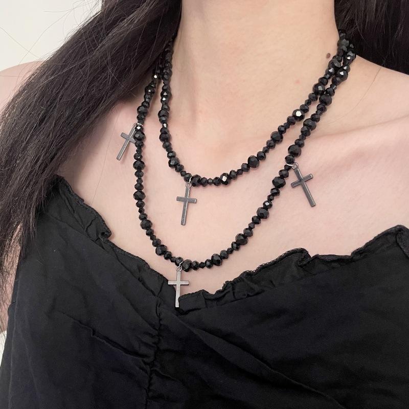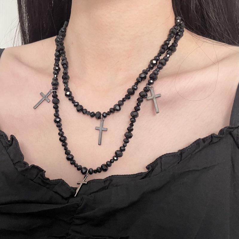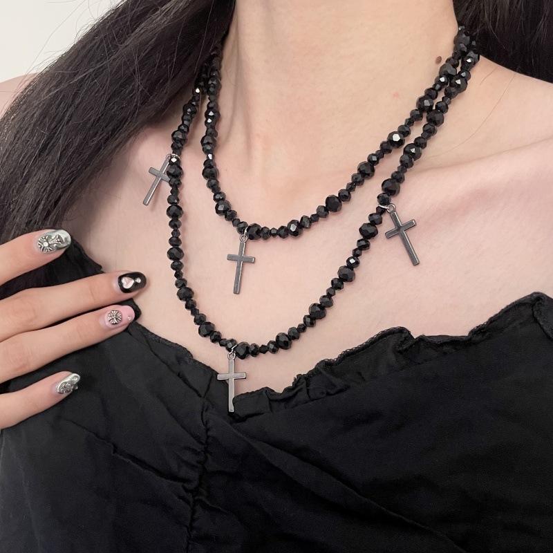 Compra D Dulce Fresco Sexy Cruz Borla Cuentas Cadena Clavícula Multicapa Elegante Europeo y Americano Punk Hip-Hop Collar de Alta Gama al por mayor en Joom.pro