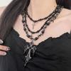 Collar D Dulce Cool Sexy Cruz Borla Cuentas Multicapa Clavícula Cadena Europeo y Americano Elegante Punk Hip-Hop de Alta Gama