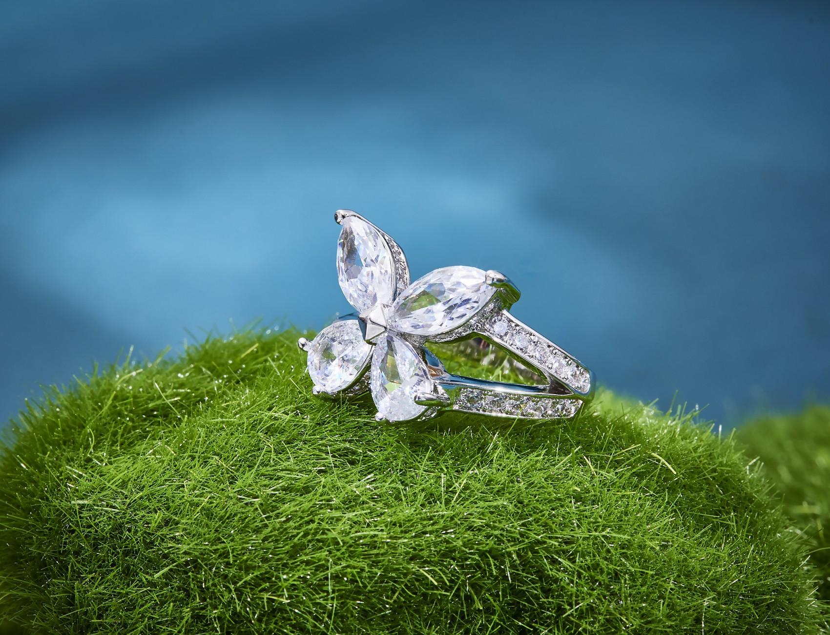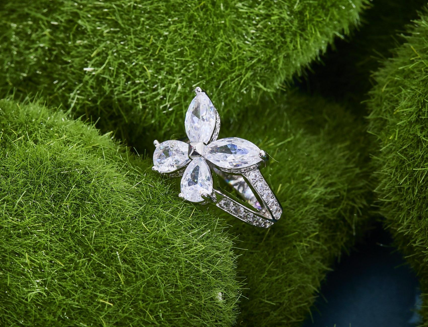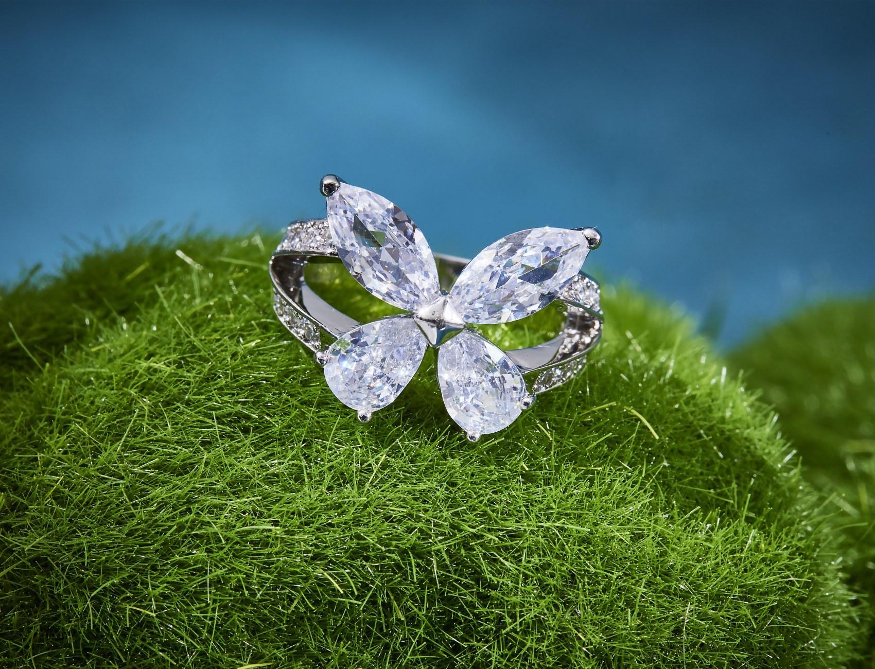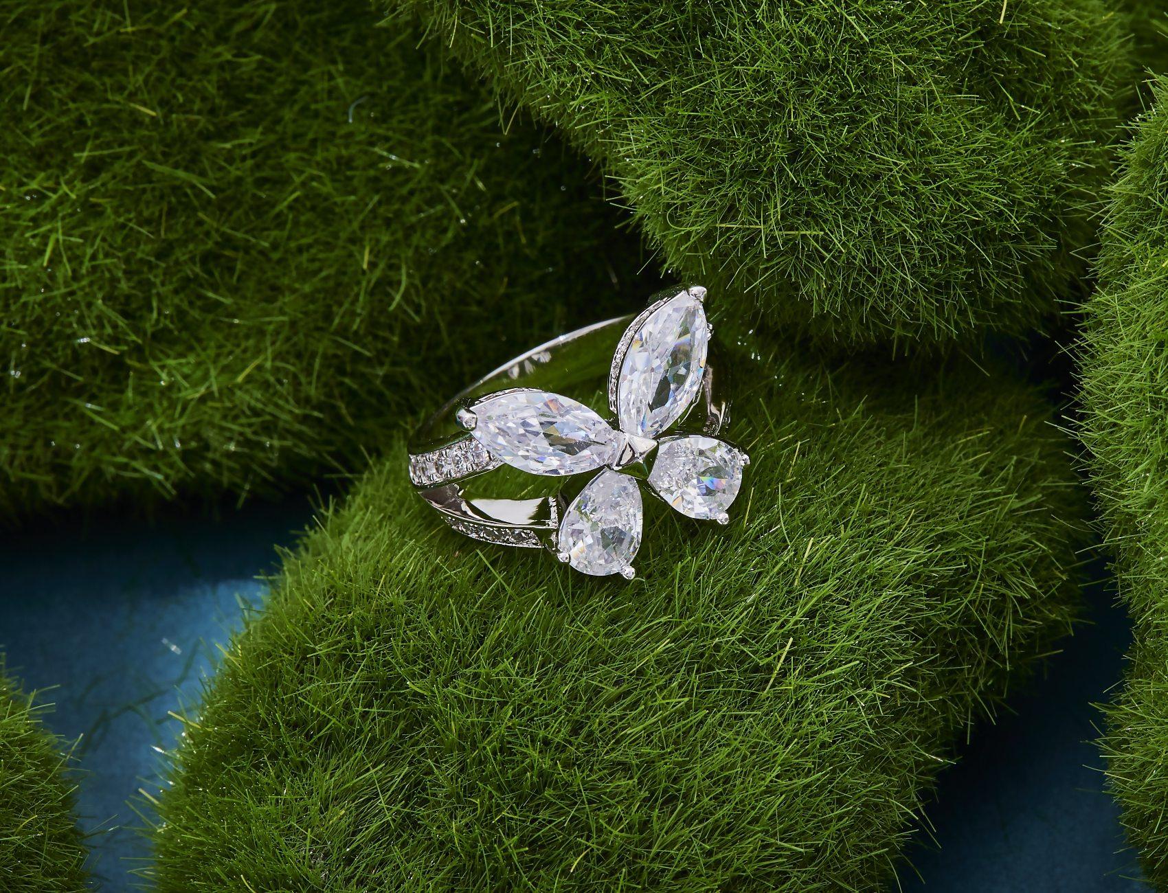 Anillo Marquesa Gota de Agua Forma de Mariposa Oro Blanco Plata 925 Lujo Accesible Personalizado Estilo Diamante Flash Estilo Ins Venta Directa de Fábrica