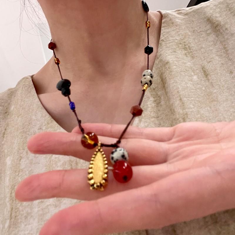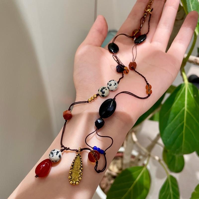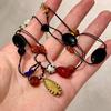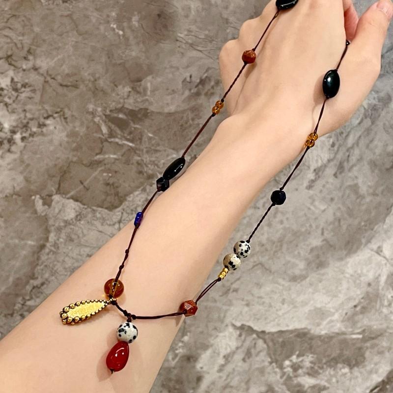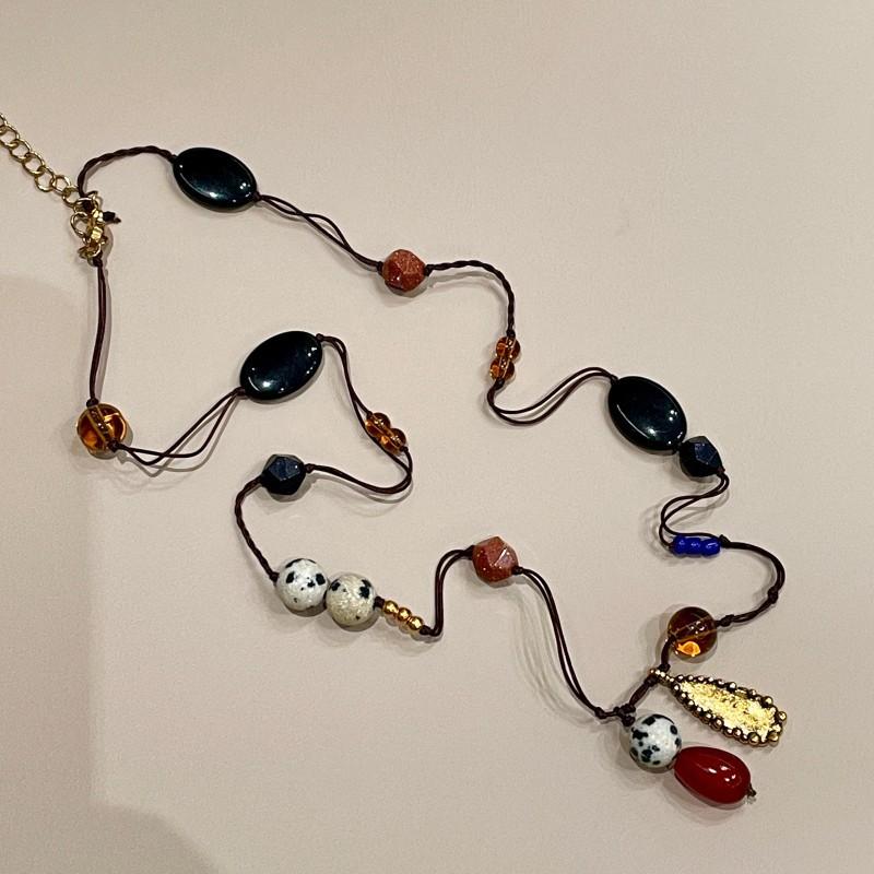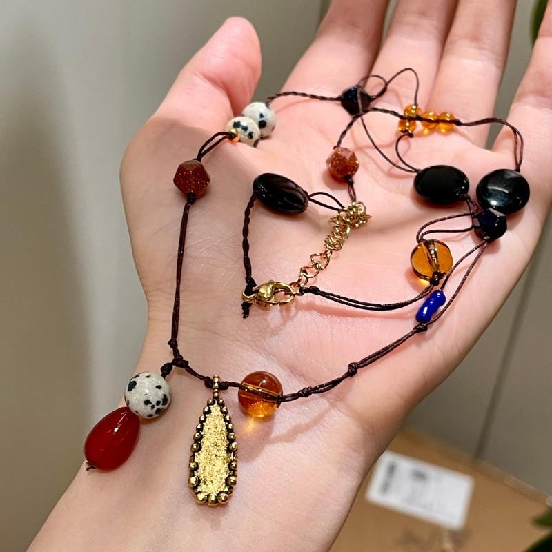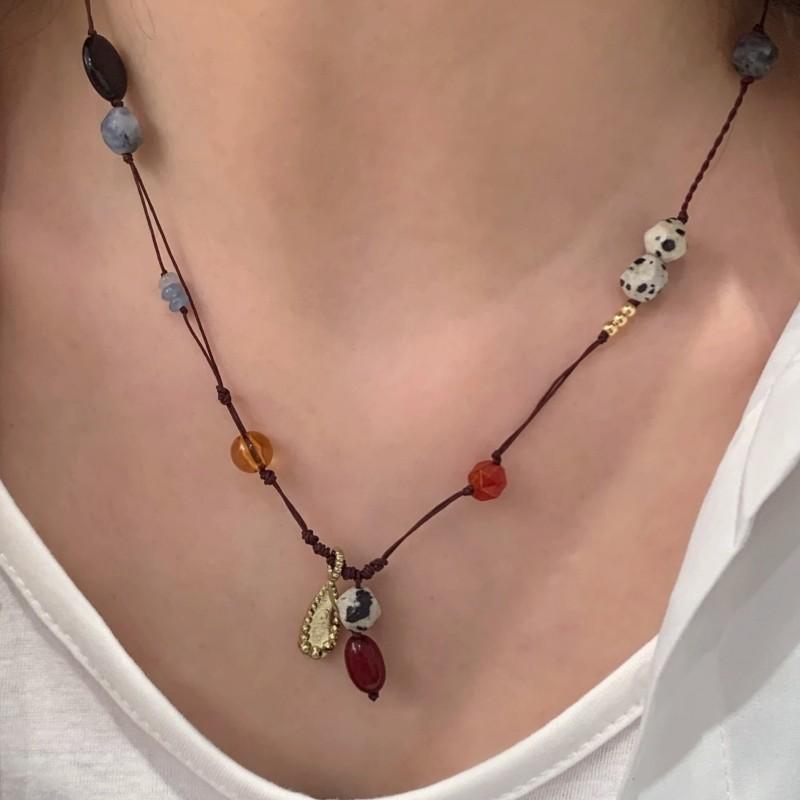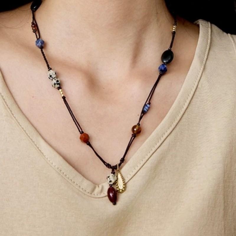 Colorida Cadena de Clavícula con Cuentas de Piedra Natural, Hecha a Mano, Cuerda Tejida, Collar de Gota de Agua, Cadena para Suéter Retro, Accesorios de Estilo Étnico para Mujeres